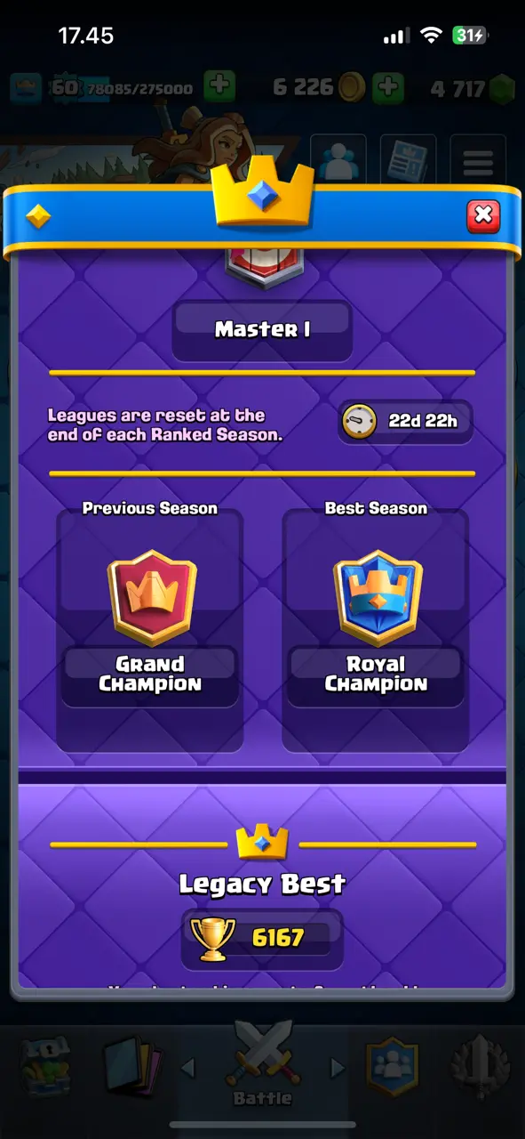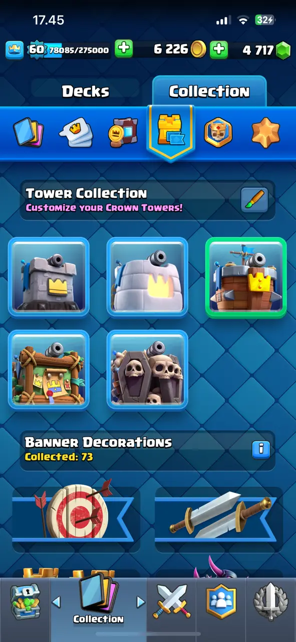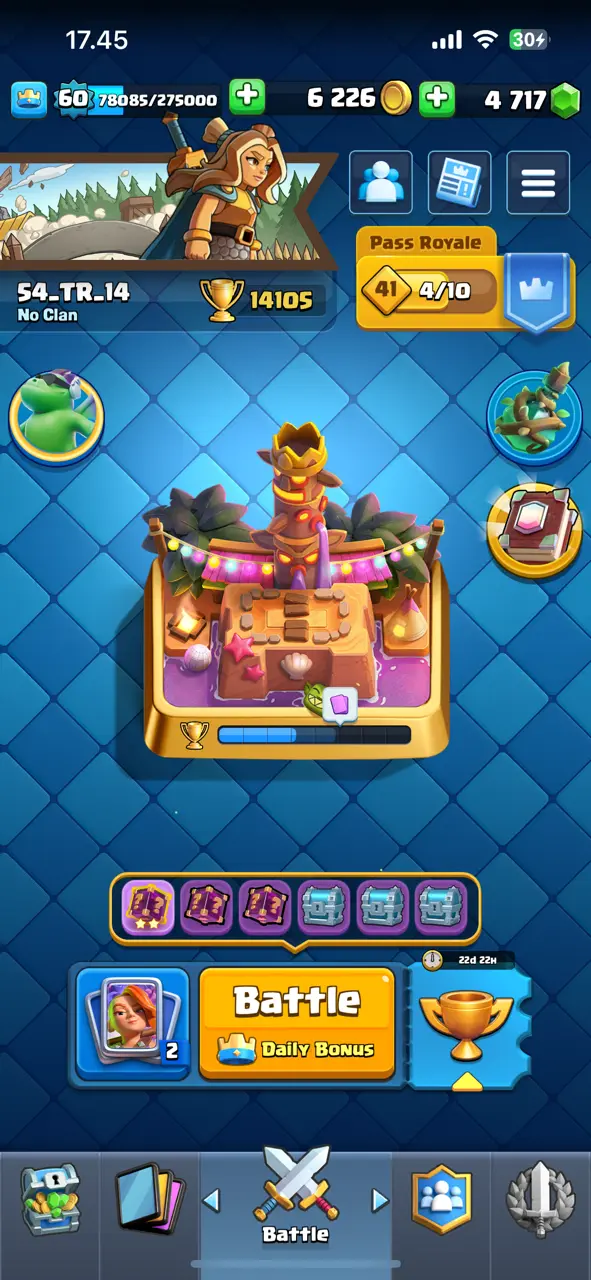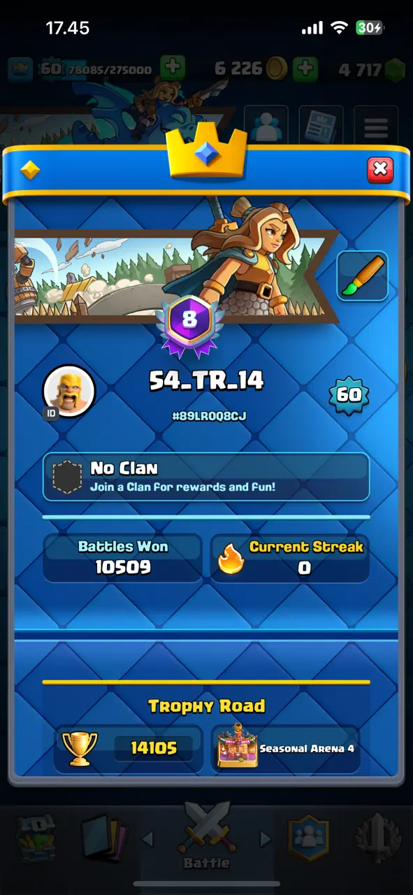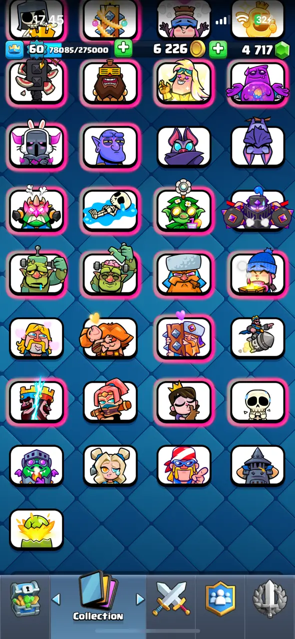 π₯ -AWESOME- π₯ CR Lv.60 π₯ 8 Years Played π₯ Change Name ON π₯ Seasonal Arena 4 π₯ 14105 Trophies π₯ KT 15 π₯ 12 Evo Cards π₯ 61 Max Cards & 25 Elite π₯ 69 Emotes π₯ 5 Tower Skins π₯ Full Acces & Guaranteed π₯ [F2287] π₯