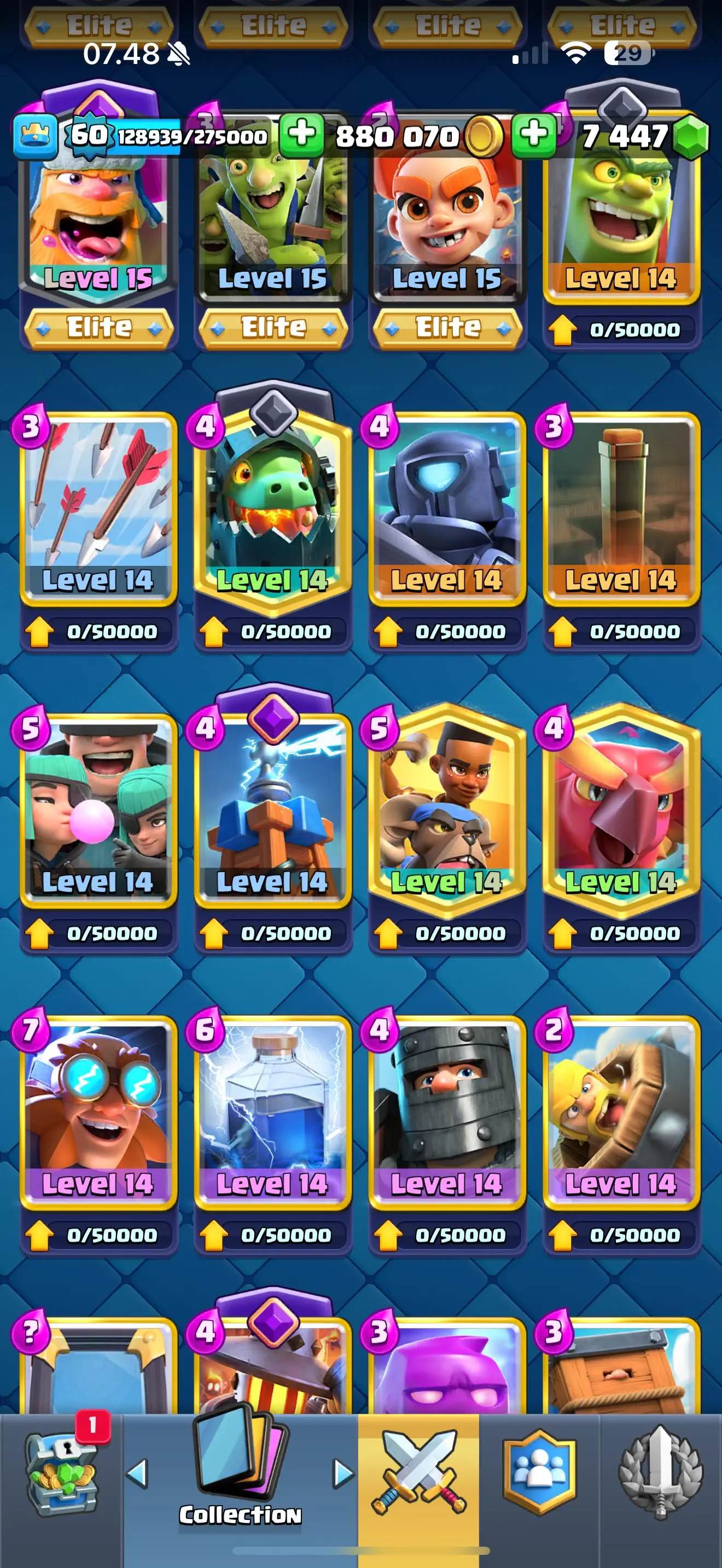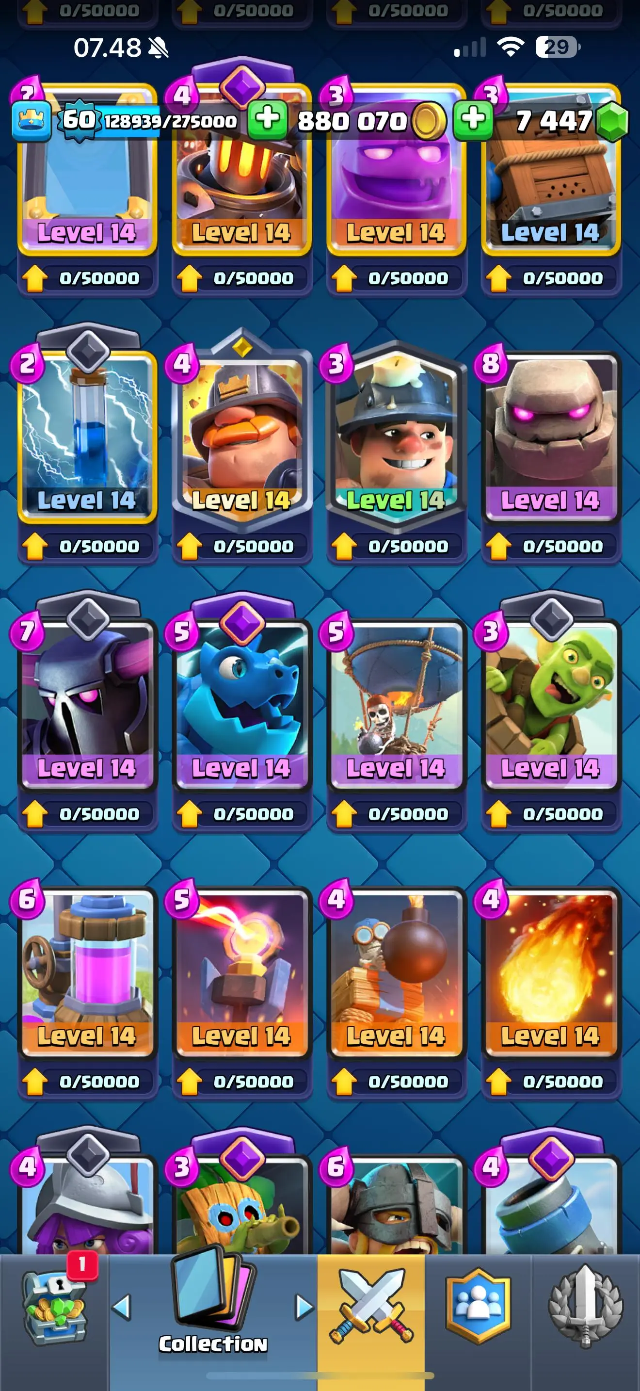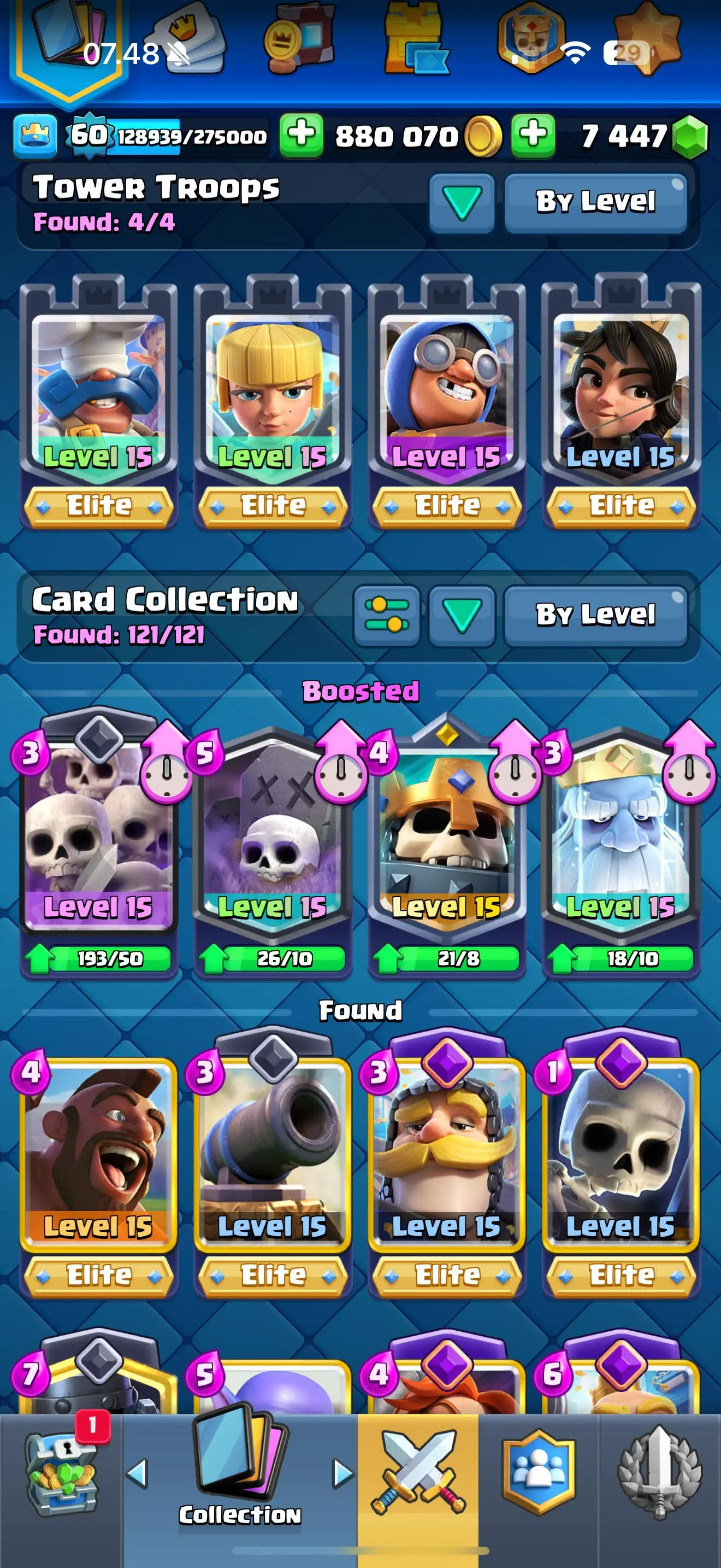 Best deal🔥KT 15 ready to battle☠️16 evolution cards🔥23 elite🔥62 max cards🔥all elite tower troops✅128 emotes💎7K GEMS
