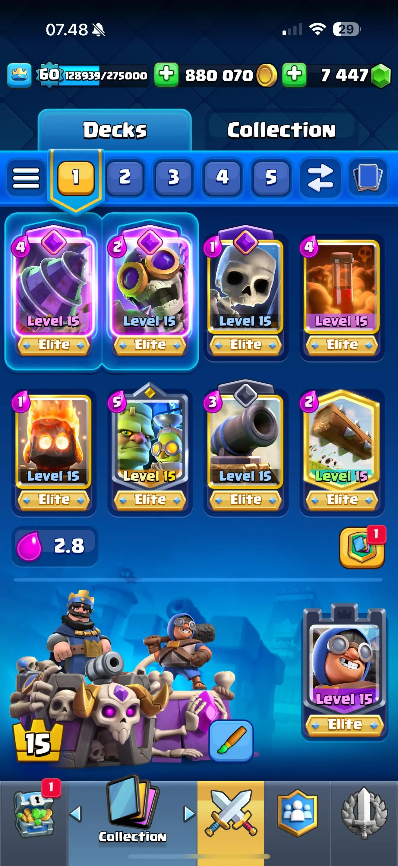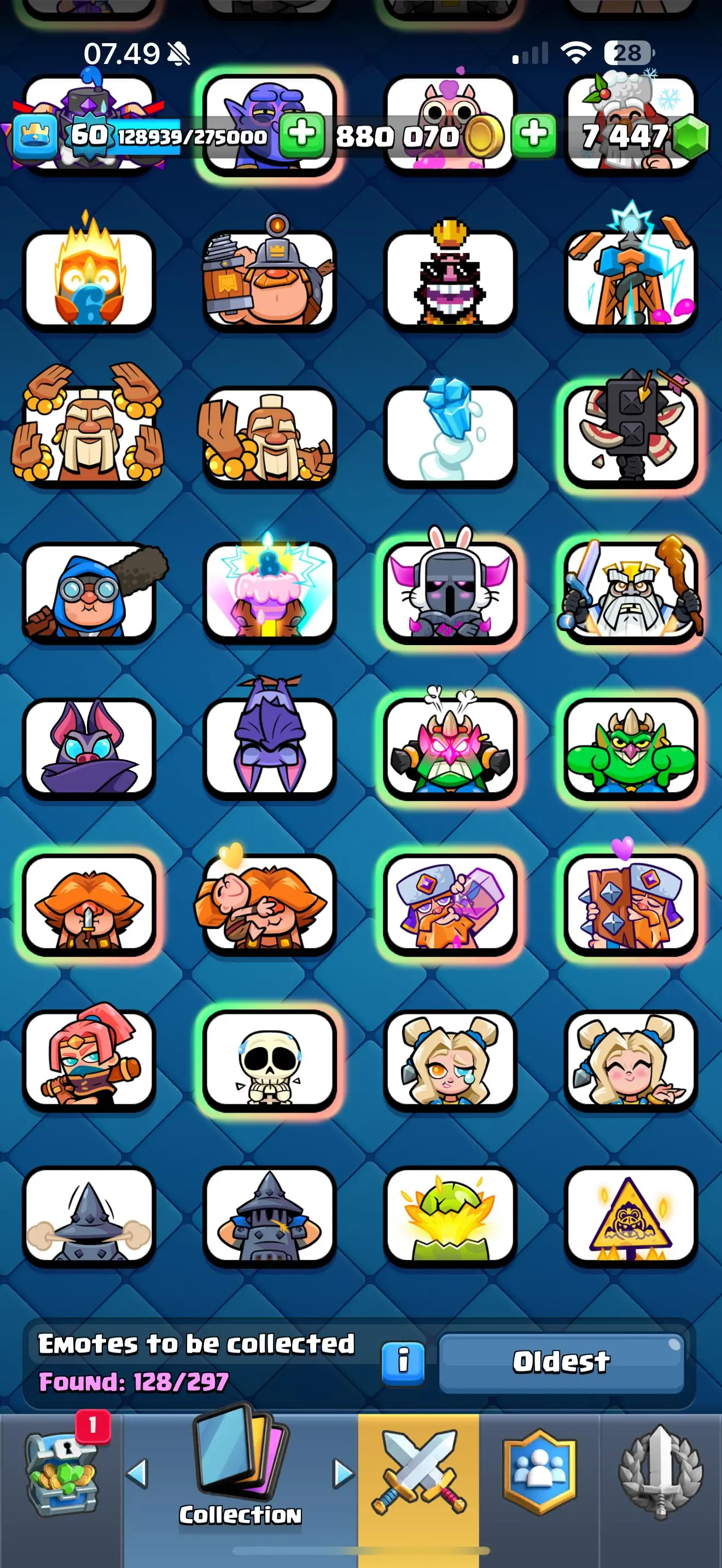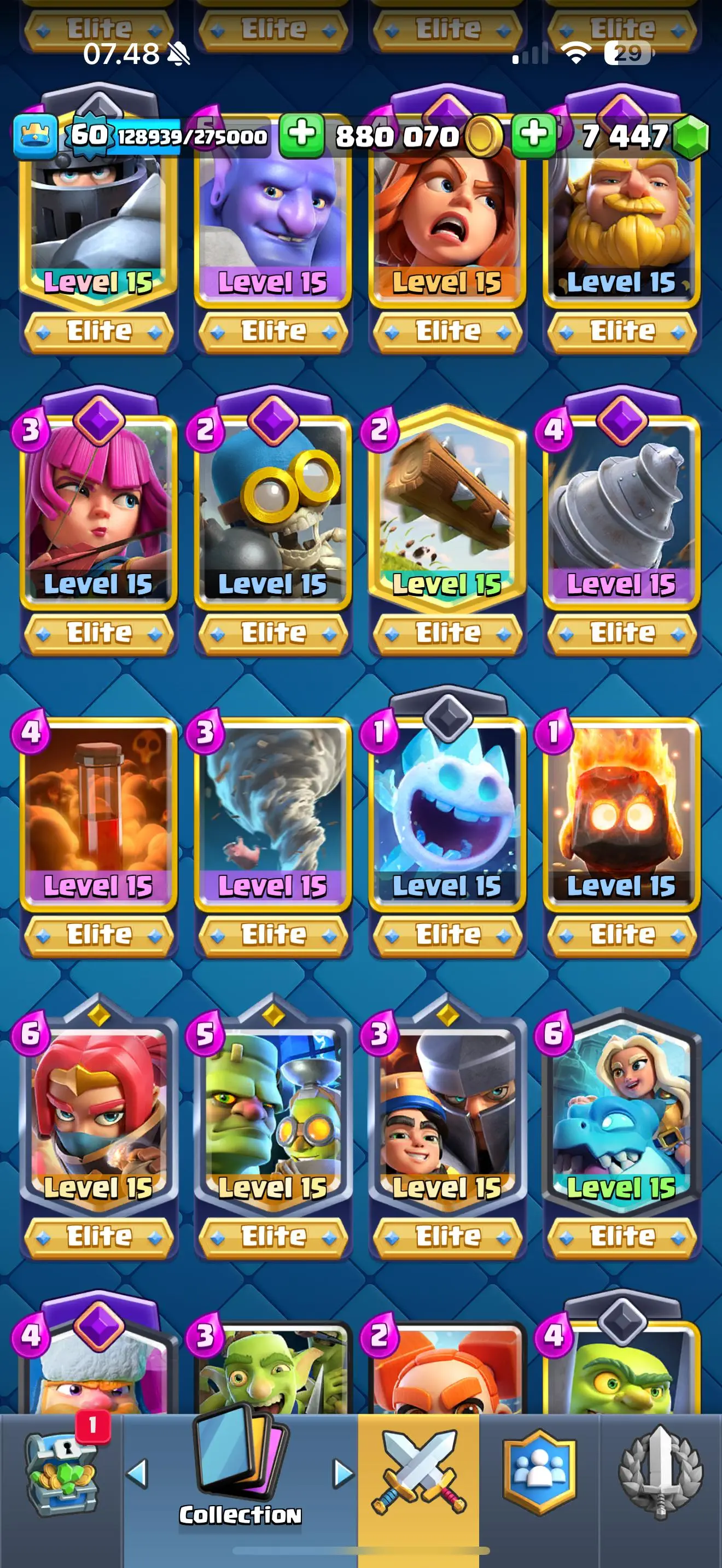 Best deal🔥KT 15 ready to battle☠️16 evolution cards🔥23 elite🔥62 max cards🔥all elite tower troops✅128 emotes💎7K GEMS
