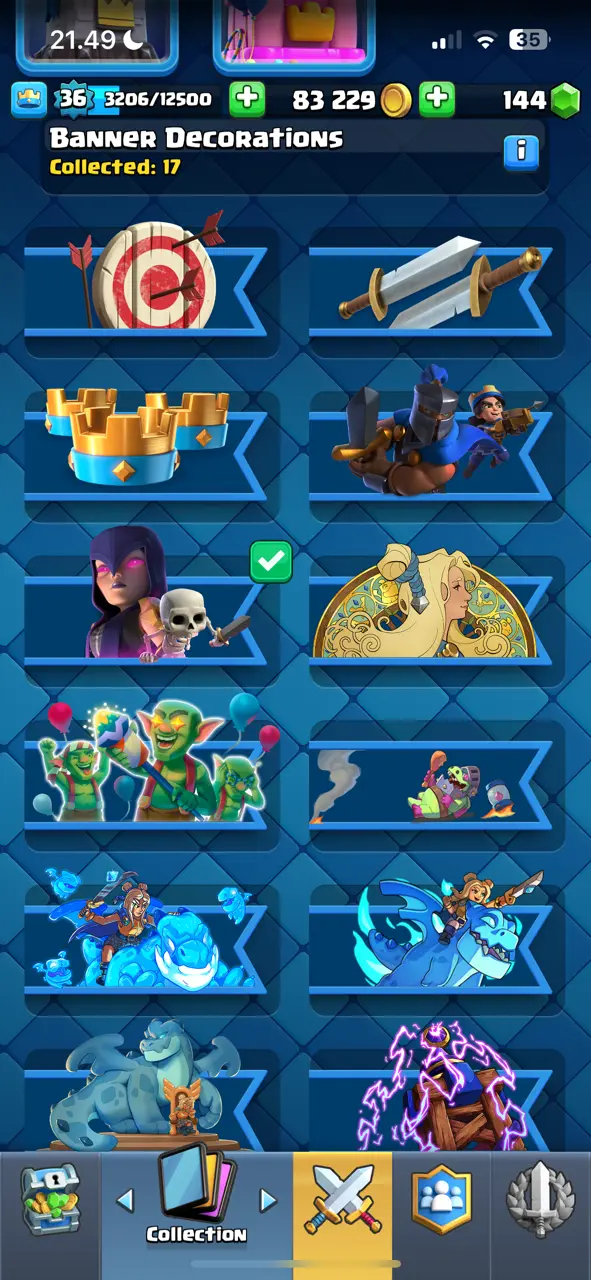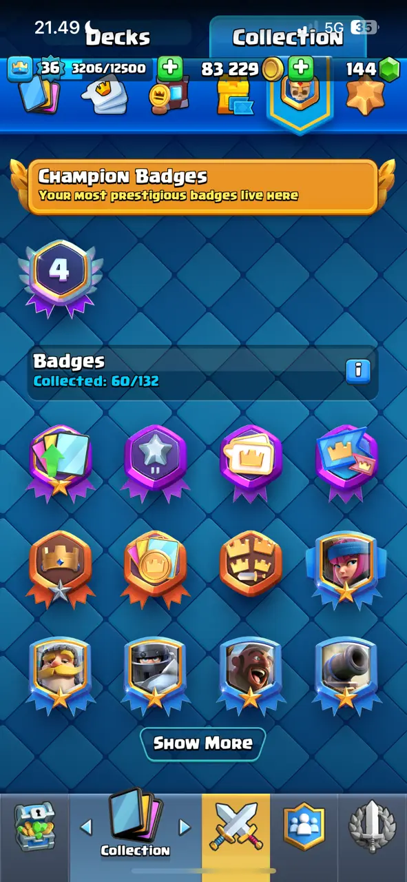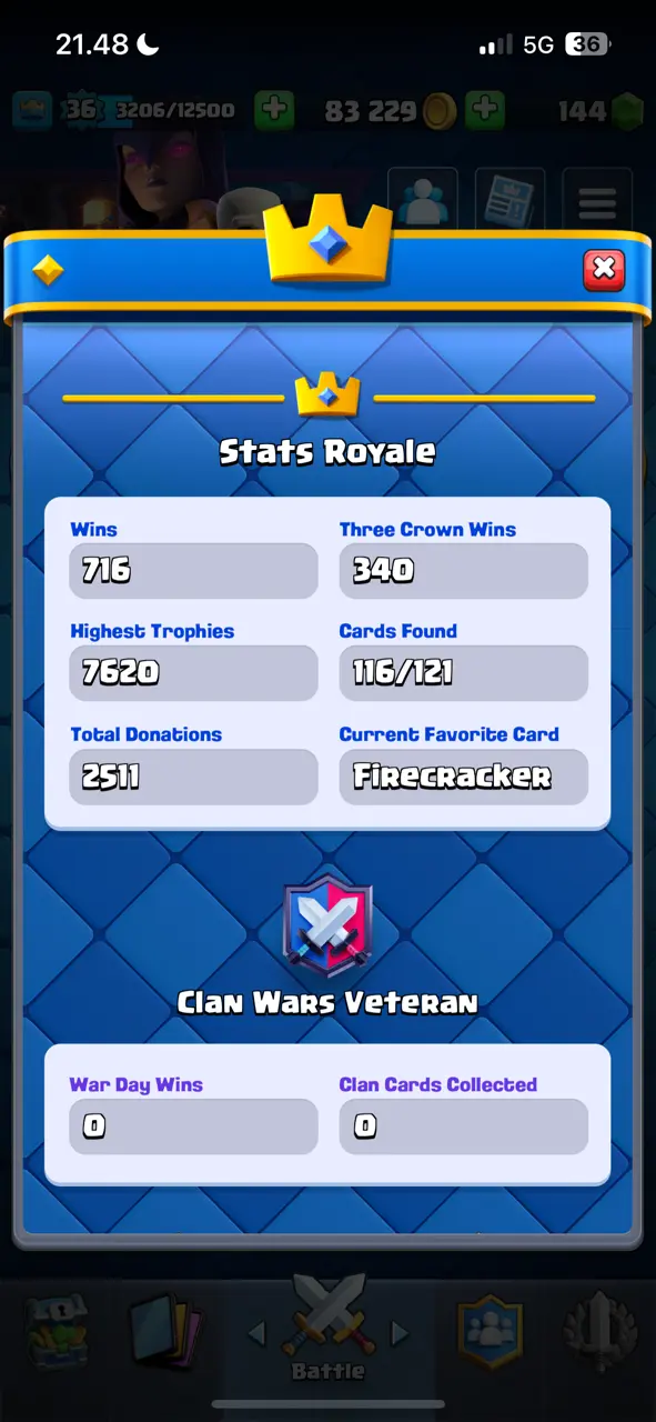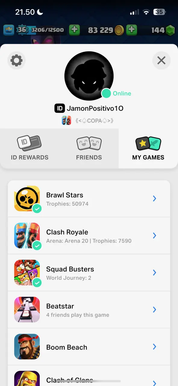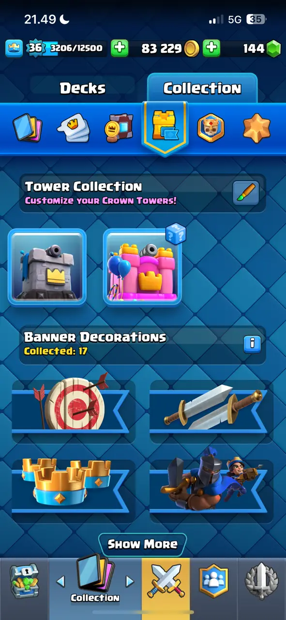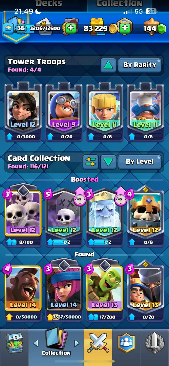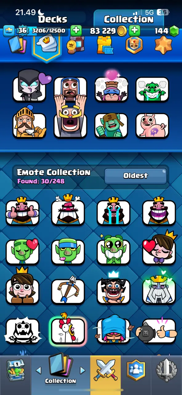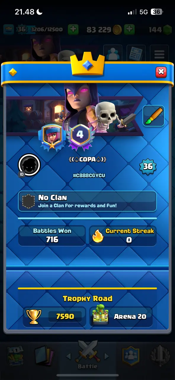 π₯ Combo CR+BS 79 Max π₯ CR Lv.36 π₯ Arena 20 π₯ 7590 Trophies π₯ KT 12 π₯ 6 Evo Card π₯ 2 Max Cards π₯ 30 Emotes π₯ 2 Tower Skins π₯ [F2601] π₯