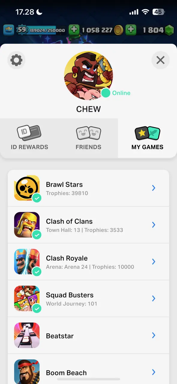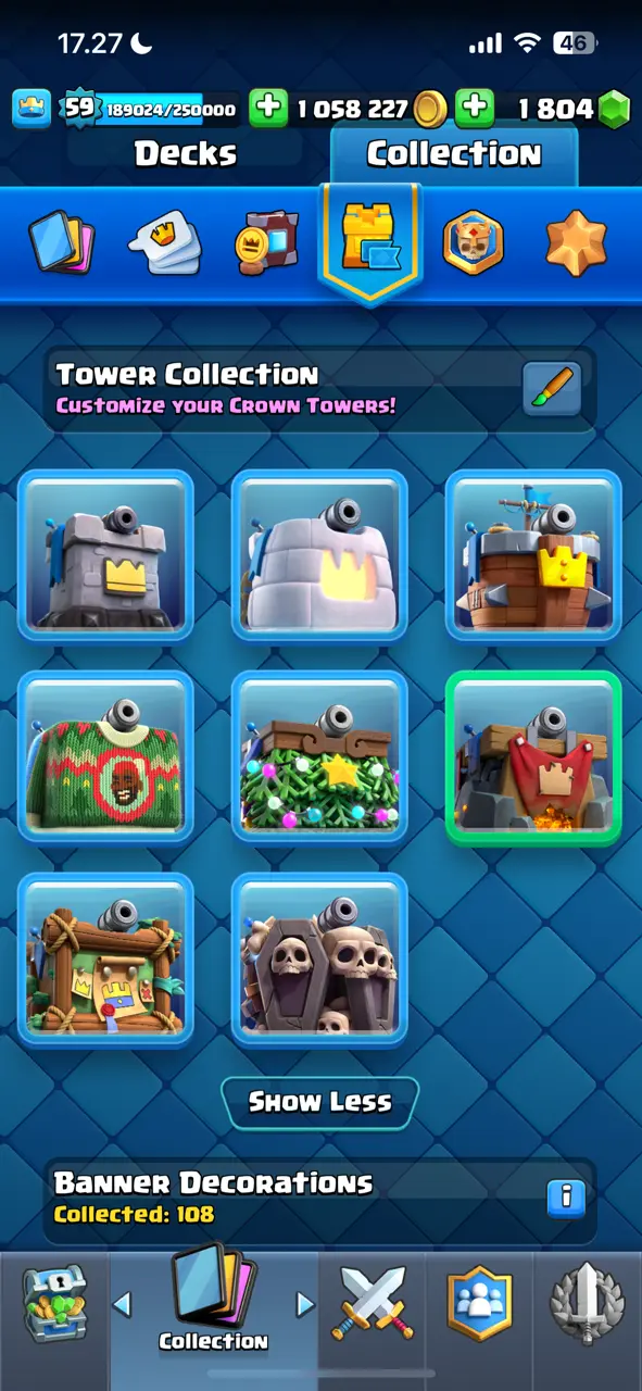 π₯ -COMBO CR+COC TH 13 MAX+BS 19 MAX- π₯ CR Lv.59 π₯ 8 Years Played π₯ Change Name ON π₯ Seasonal Arena 3 π₯ 12600 Trophies π₯ KT 15 π₯ 13 Evo Card π₯ 55 Max Cards & 19 Elite π₯ 109 Emotes π₯ 8 Tower Skins π₯ [F2467] π₯