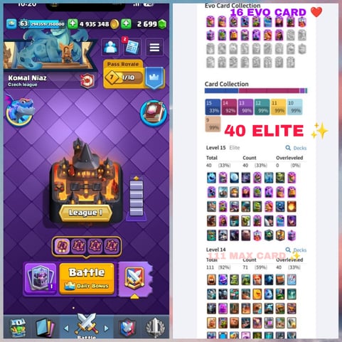 🔥 CR 68EXP 🔥 20 EVOLUTION 🔥 45 ELITE 🔥 117 MAX 🔥.152 EMOTE 🔥 CHEAPEST IN MARKET 🔥