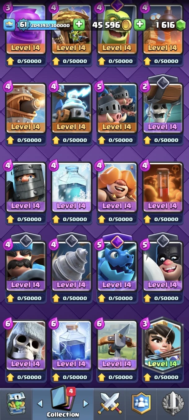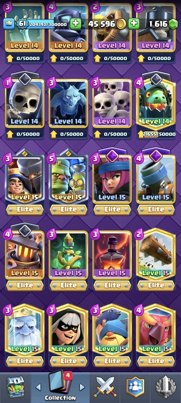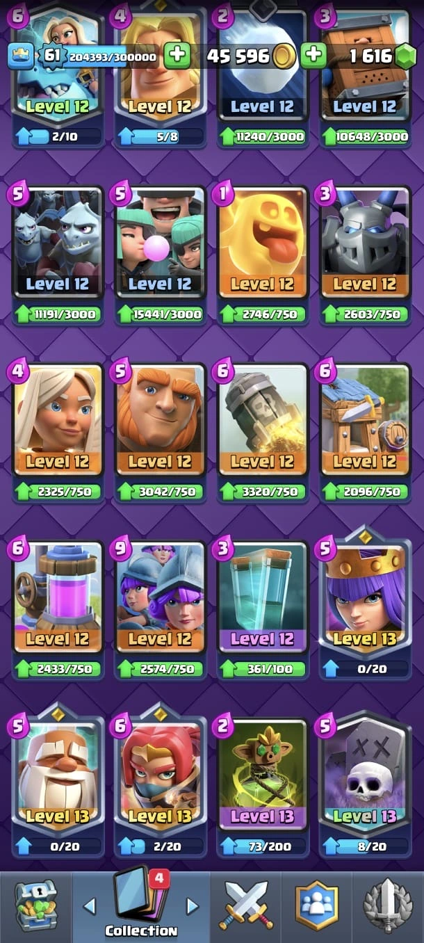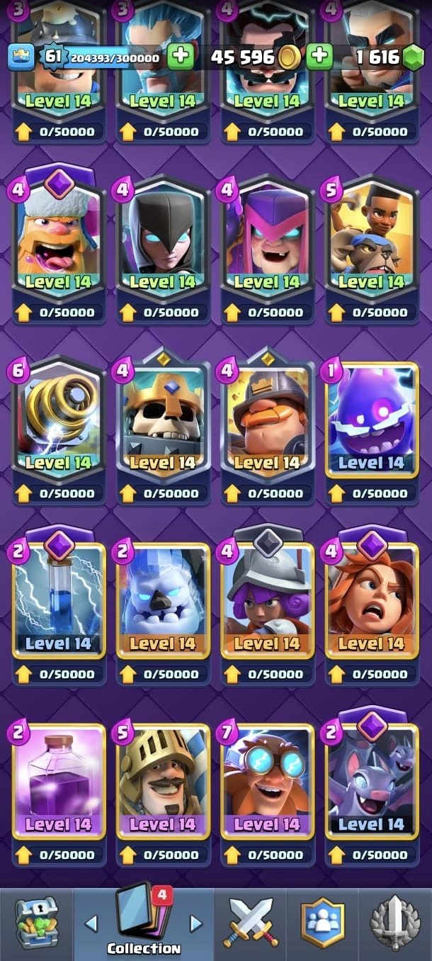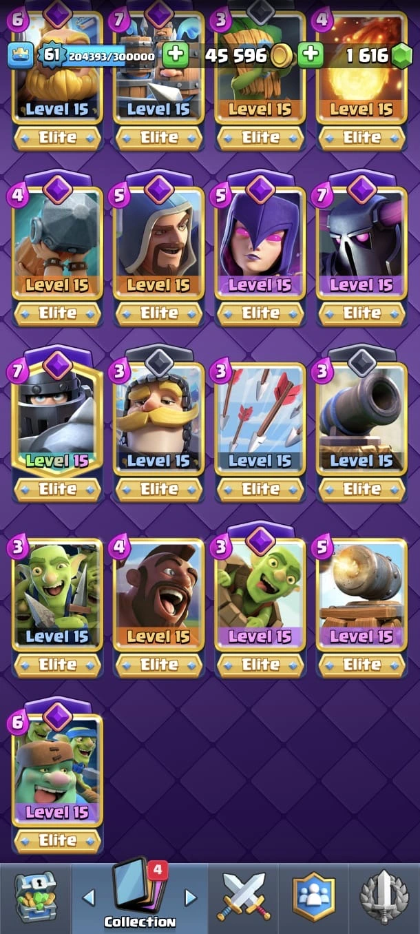 CR LV 61 🔥 Max Cards 95 🔥 Elite 30 🔥 Evo 20 🔥 Emote 121 🔥 Trophy 15060 🔥 Change name free 🔥