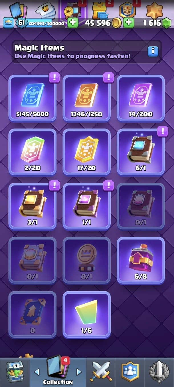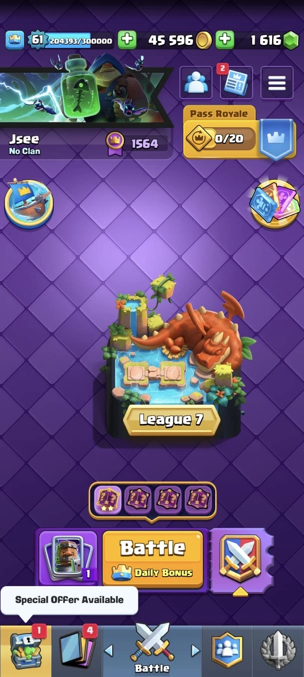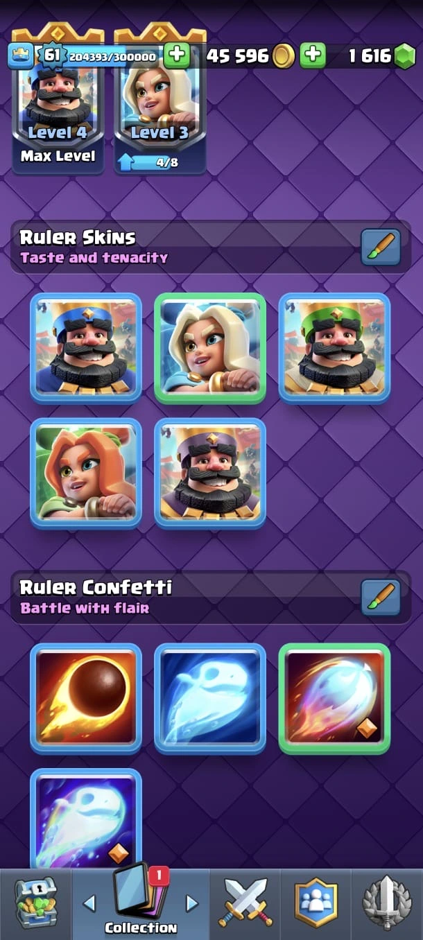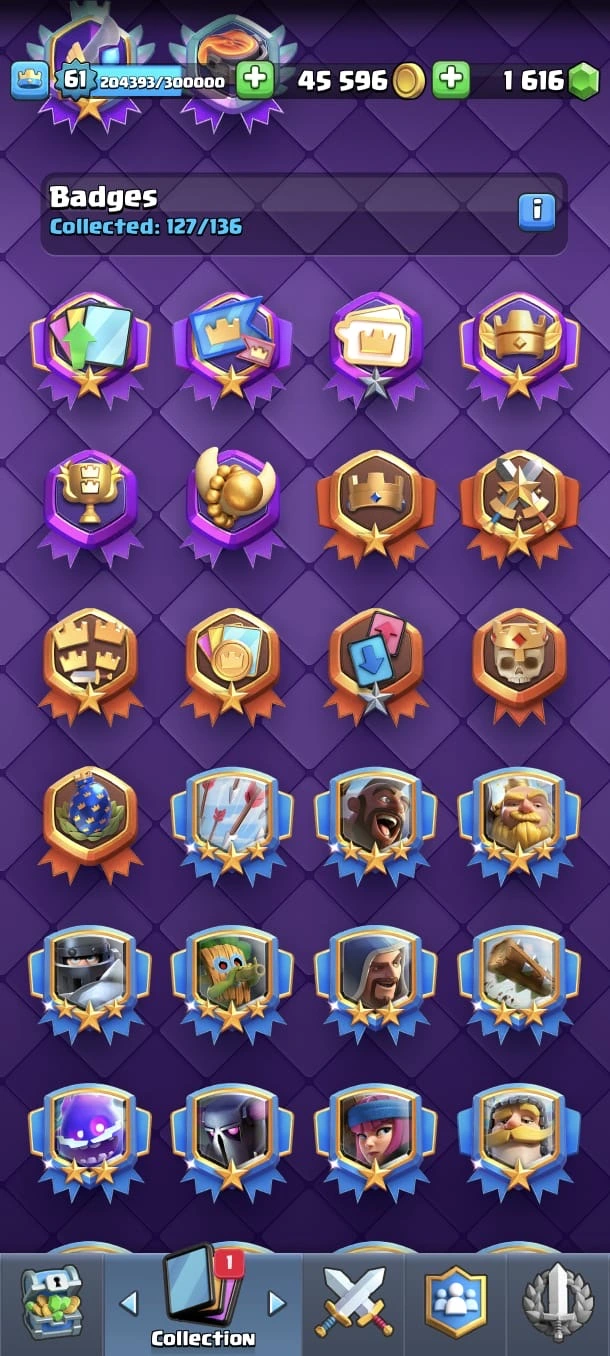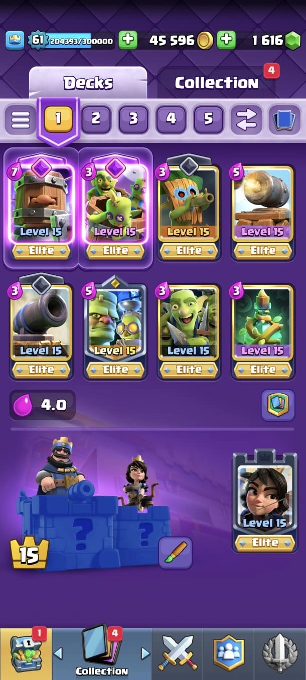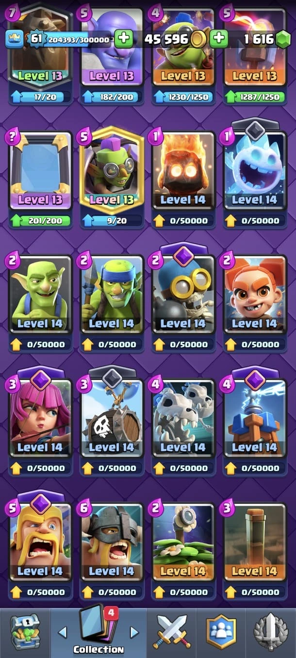 CR LV 61 🔥 Max Cards 95 🔥 Elite 30 🔥 Evo 20 🔥 Emote 121 🔥 Trophy 15060 🔥 Change name free 🔥