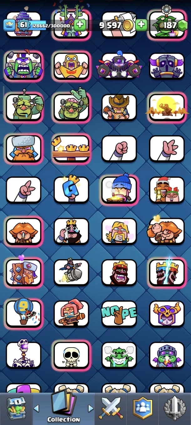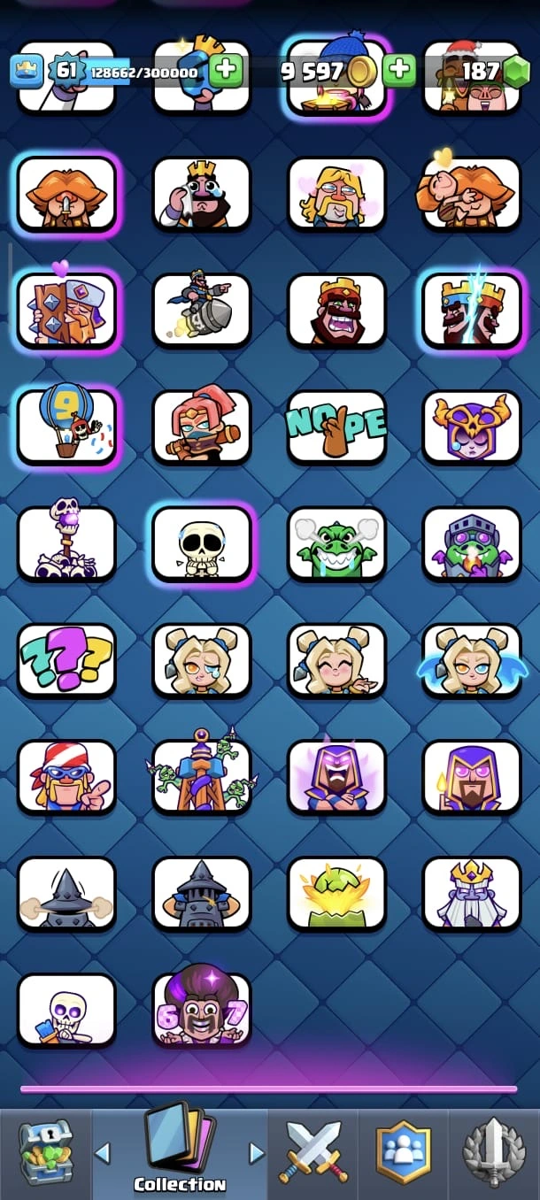 CR LV 61 🔥 Super Evo 32 🔥 Max Cards 91 🔥 Elite 28 🔥 Emote 190 🔥 Trophy 10800 🔥 Skins Towers 19 🔥 Change name free 🔥 Cheap & Safe account🔥