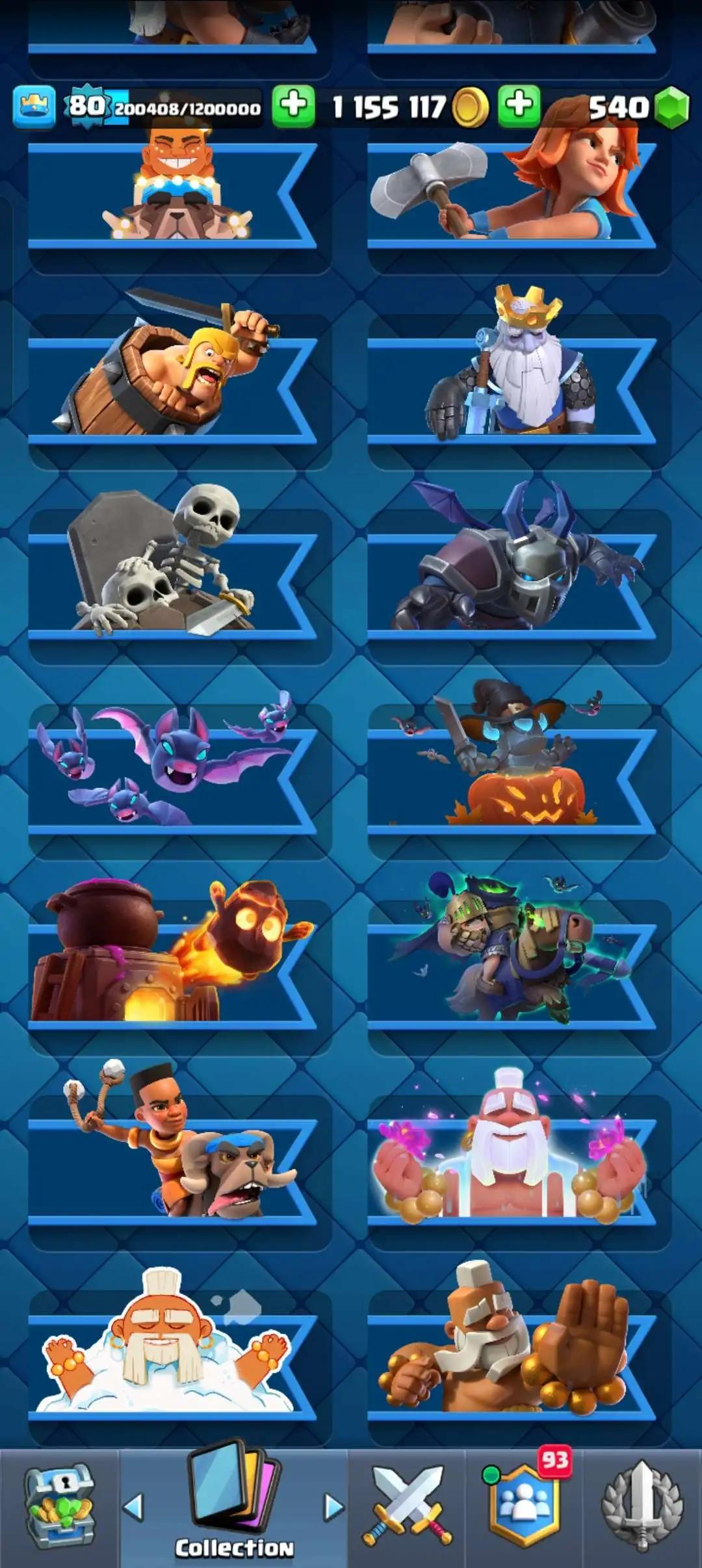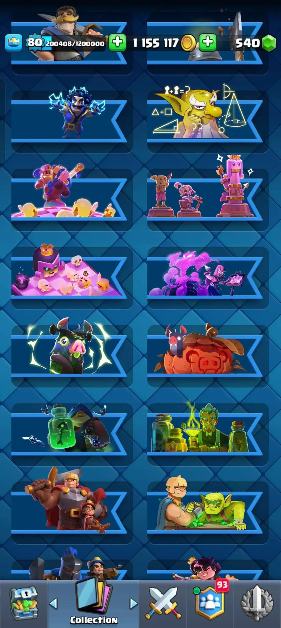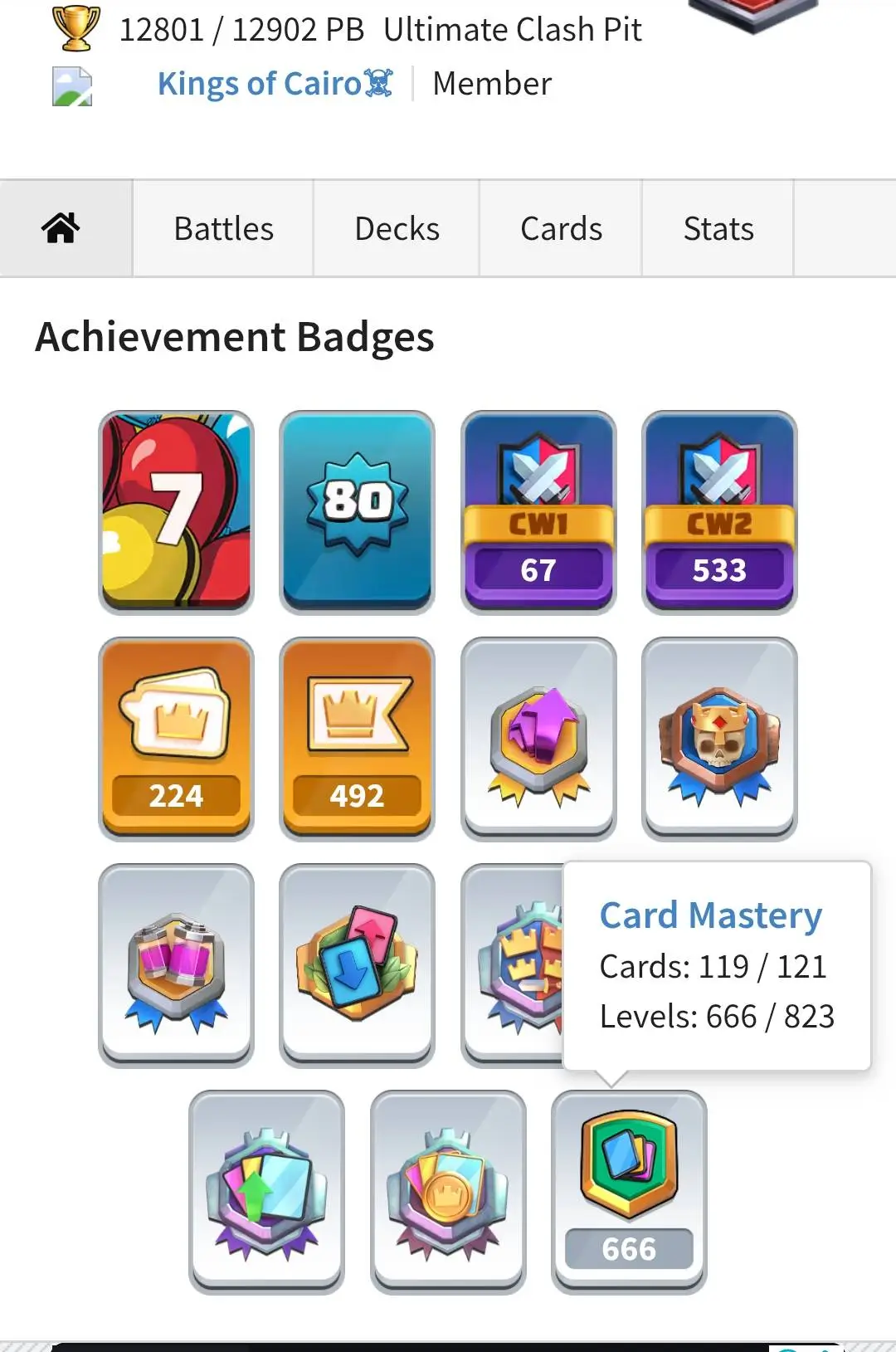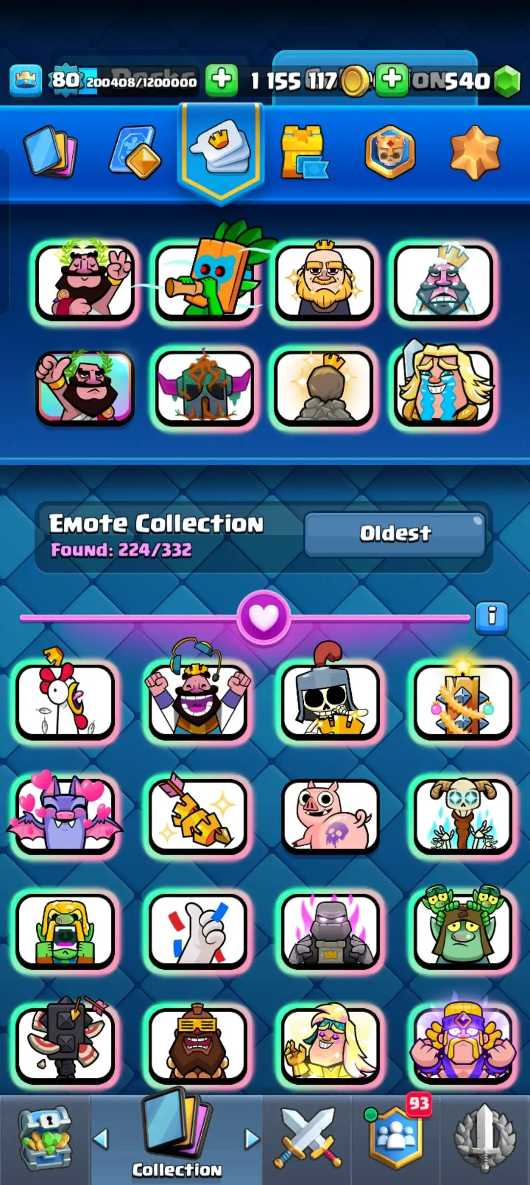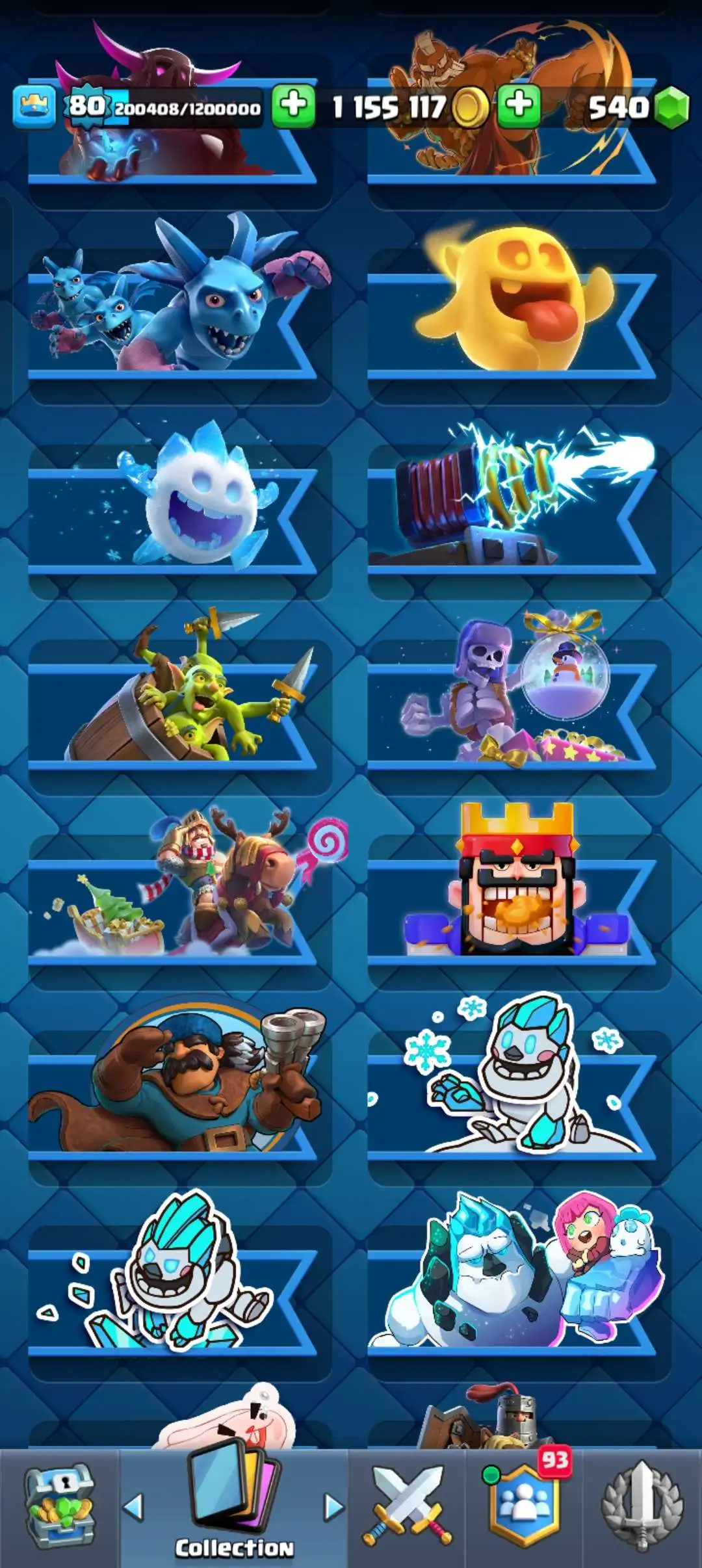 CR Lvl 80 . 6 Old seasons ✨ 12350 Trophy . Player ID CHANGEABLE 🏆 KT 16 ✨ 4 Hero ✨ 28 Evo Cards ✨ 40 max cards ✨ 75 Cards lvl 15 ✨ 224 Emotes ✨21 tower skins