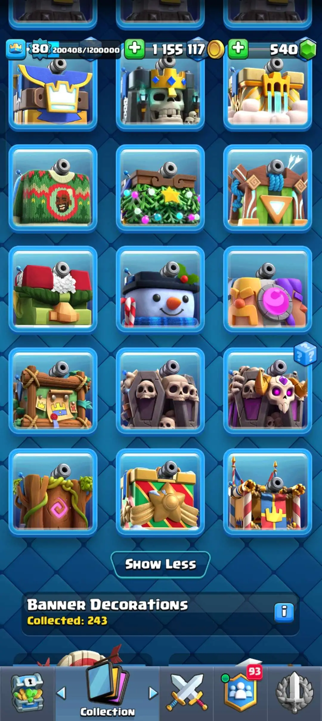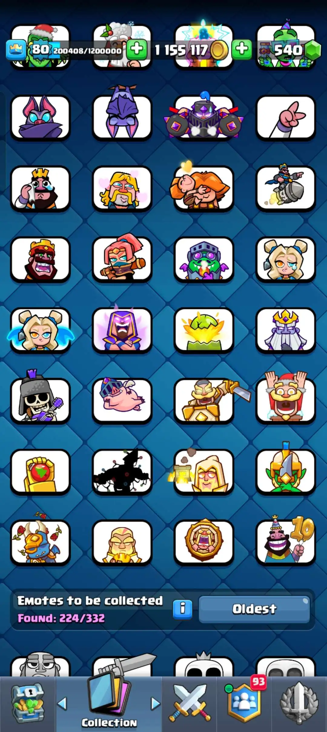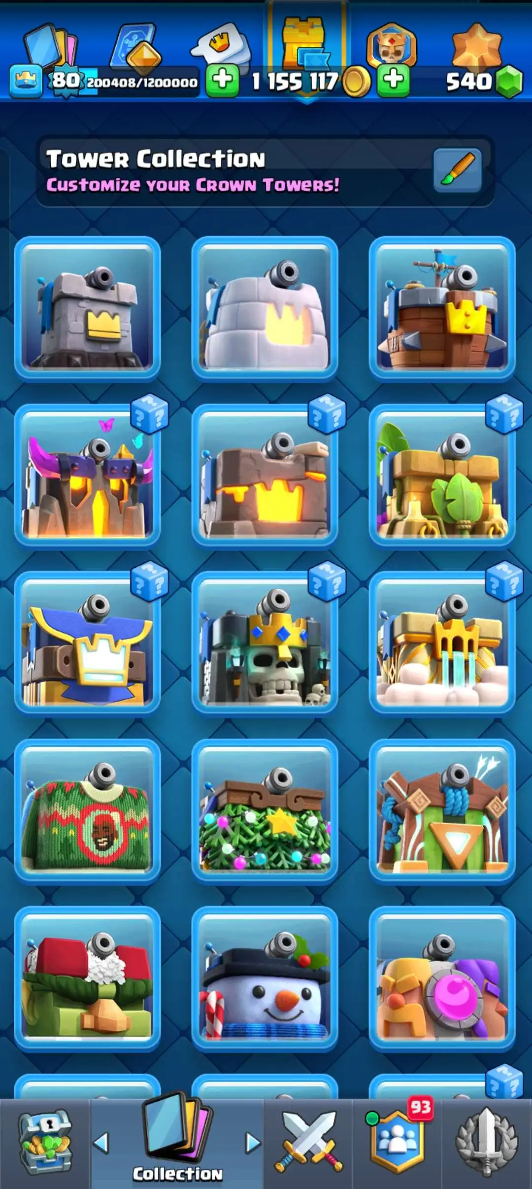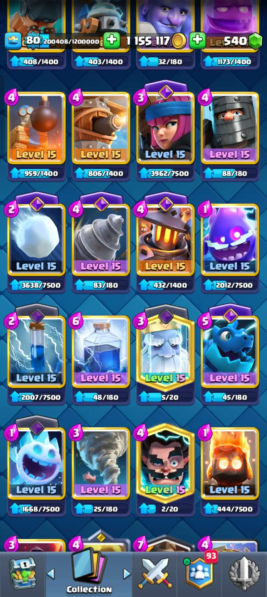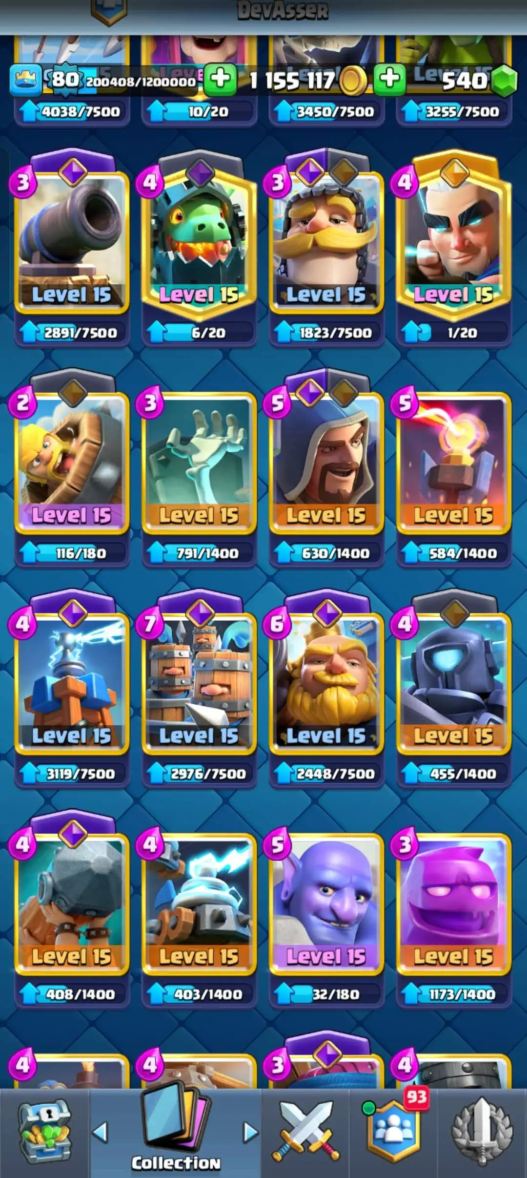 CR Lvl 80 . 6 Old seasons ✨ 12350 Trophy . Player ID CHANGEABLE 🏆 KT 16 ✨ 4 Hero ✨ 28 Evo Cards ✨ 40 max cards ✨ 75 Cards lvl 15 ✨ 224 Emotes ✨21 tower skins