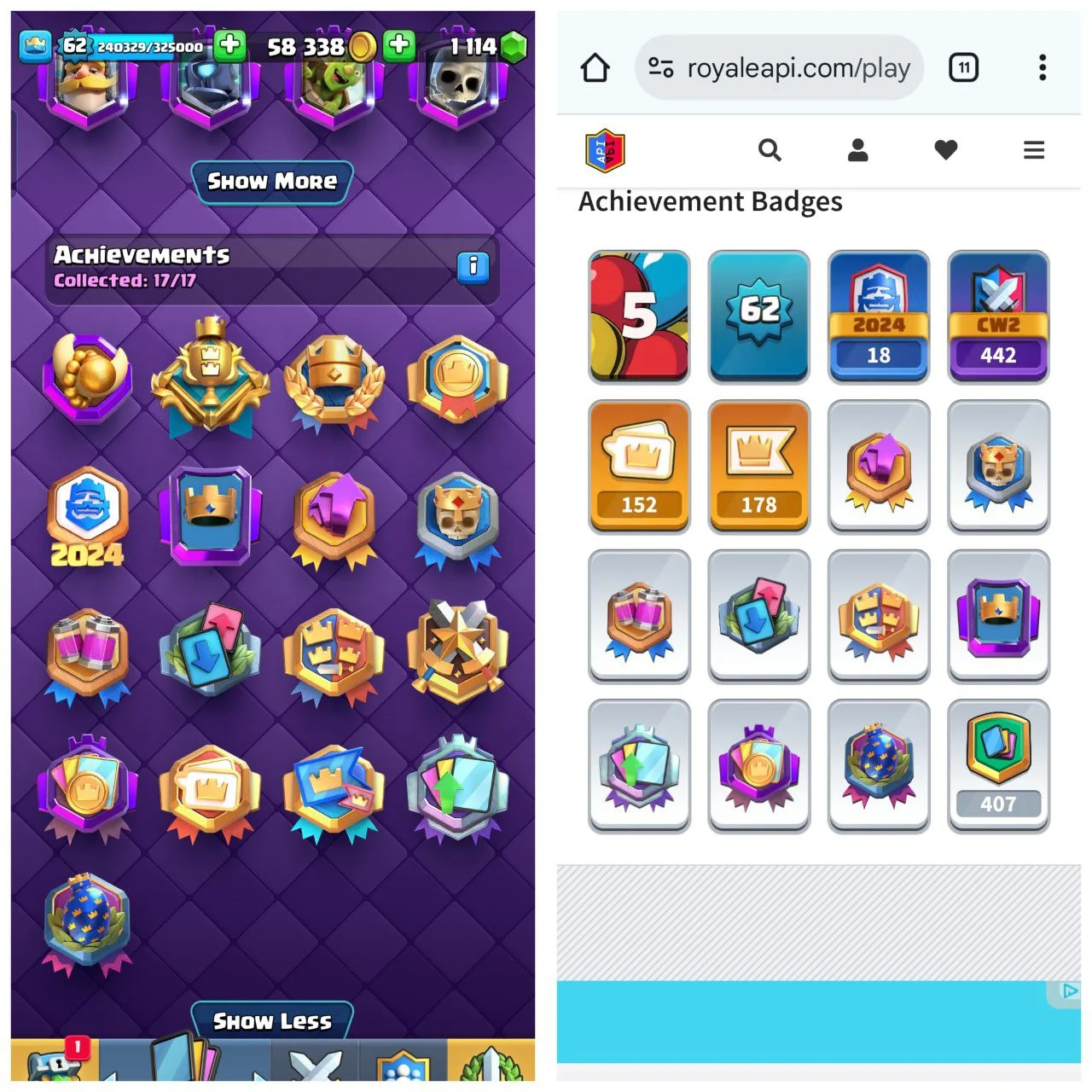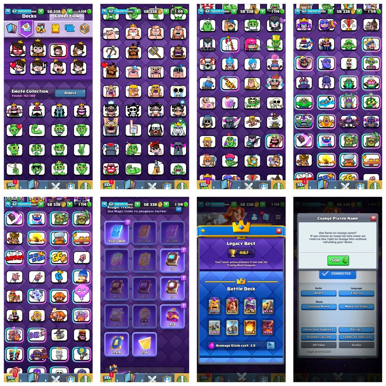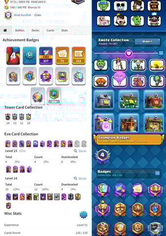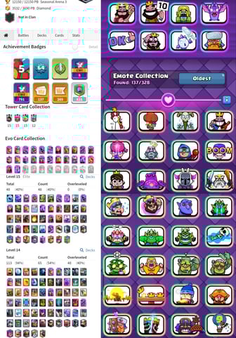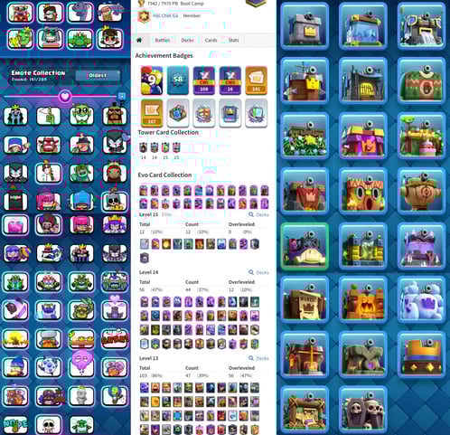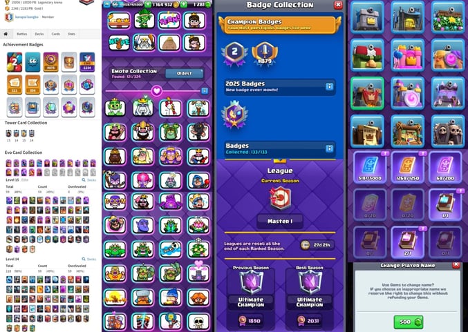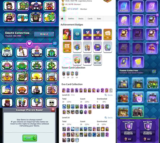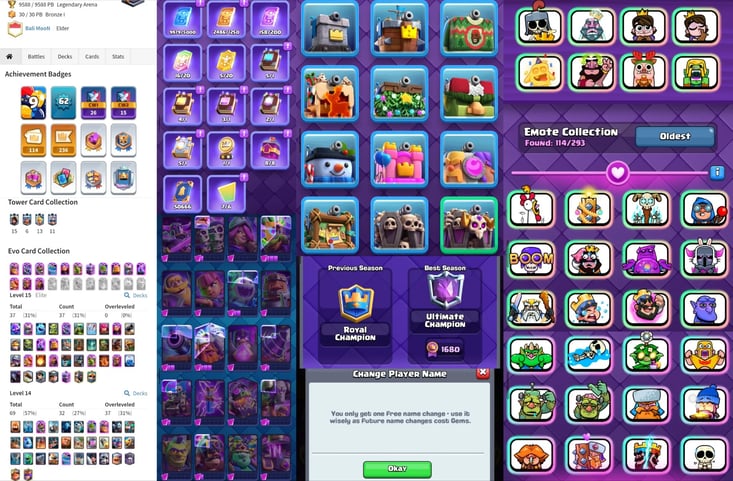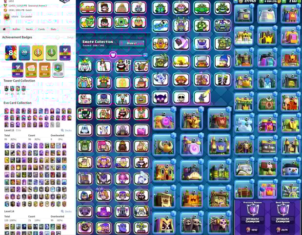 CRL Badge [Ultimate Champ] Level 62 {29 Evolation} 100 Card Max+36 Elite ⚡ 18 Tower Skins ⚡ 152 Old Emotes [Best id]【171】