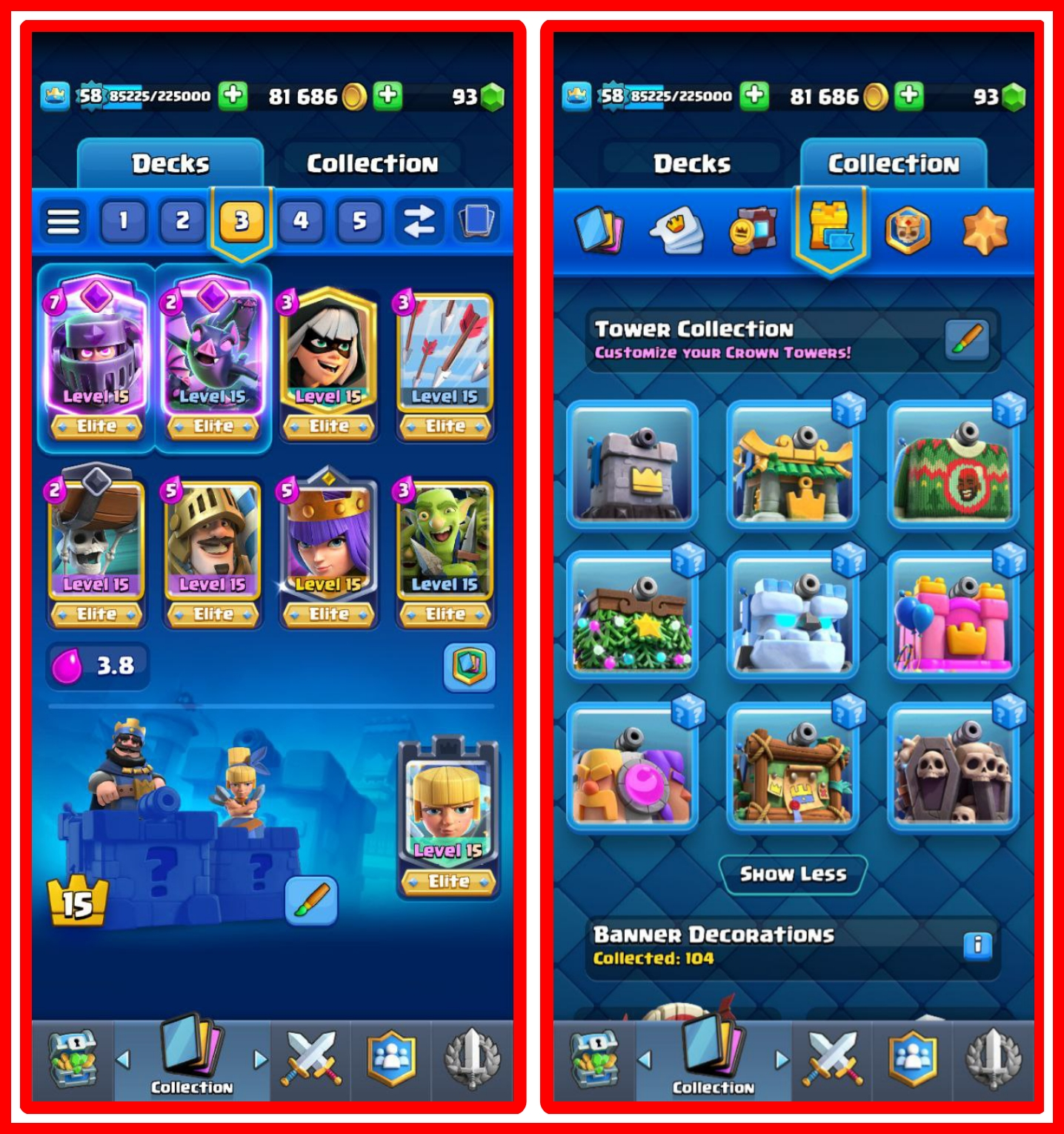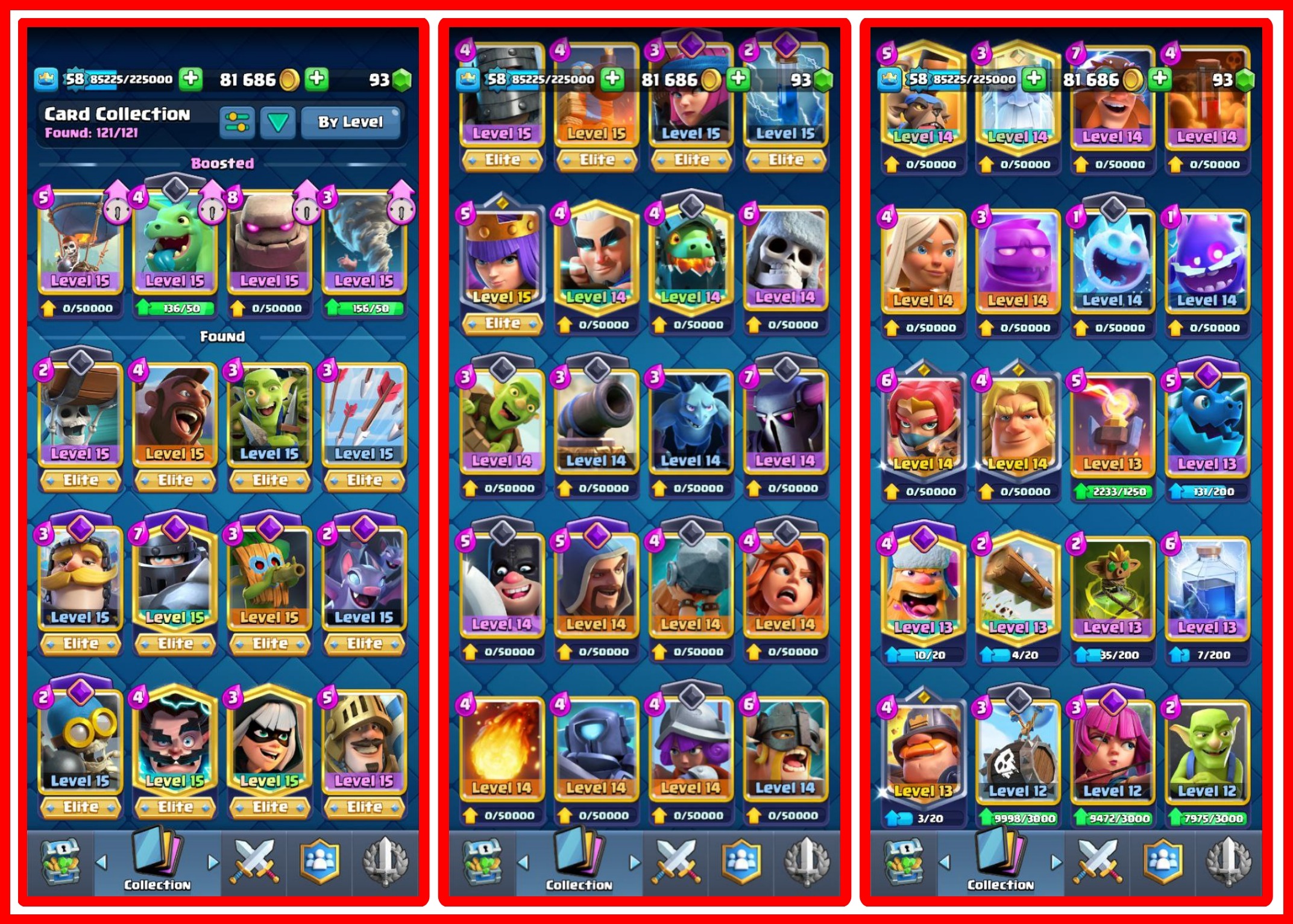 👑EMPEROR KING 🔱 ARENA 25🏆KT 15 🏅LVL [58] 🧮CARDS [121]🏆 144 RARE EMOTES 🛢️ ELITE CARDS [17]💫 MAX CARDS [55]🏆 TROPHIES 12610🔷 EVO[13]✨ SKINS 09✨ 10000% SAFE🔷 CHEAPEST IN MARKET