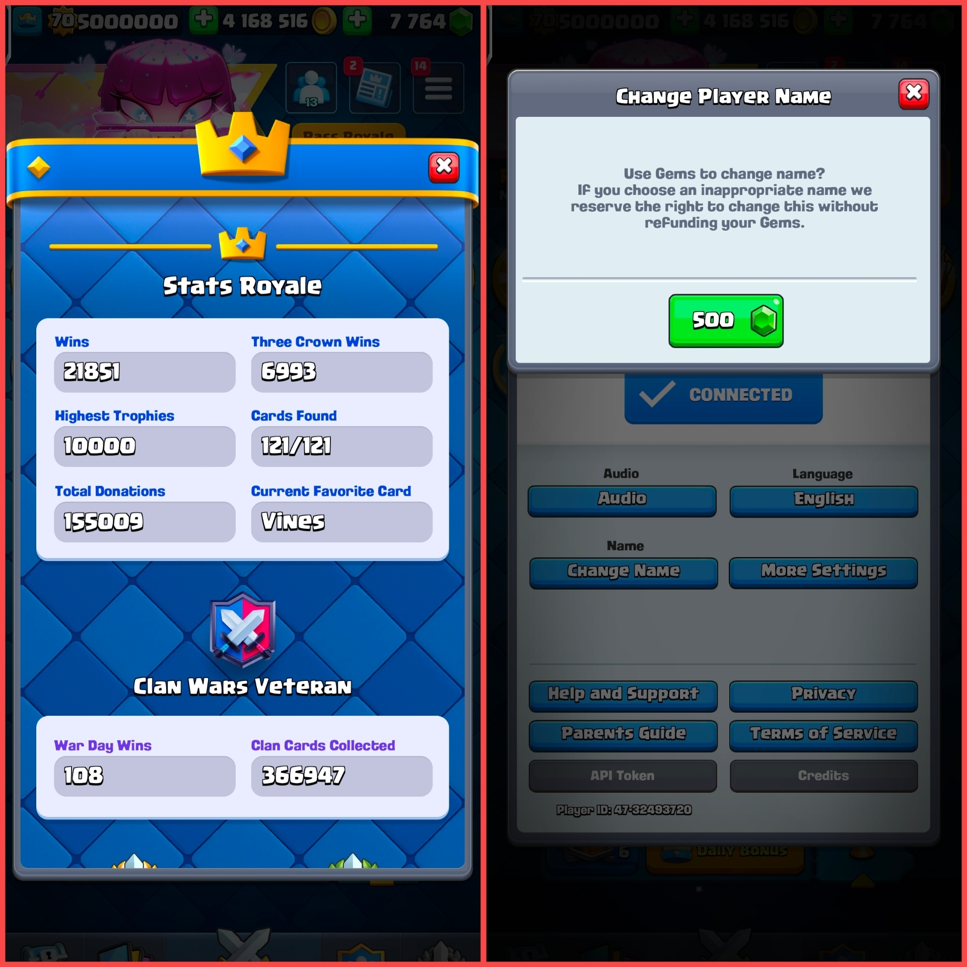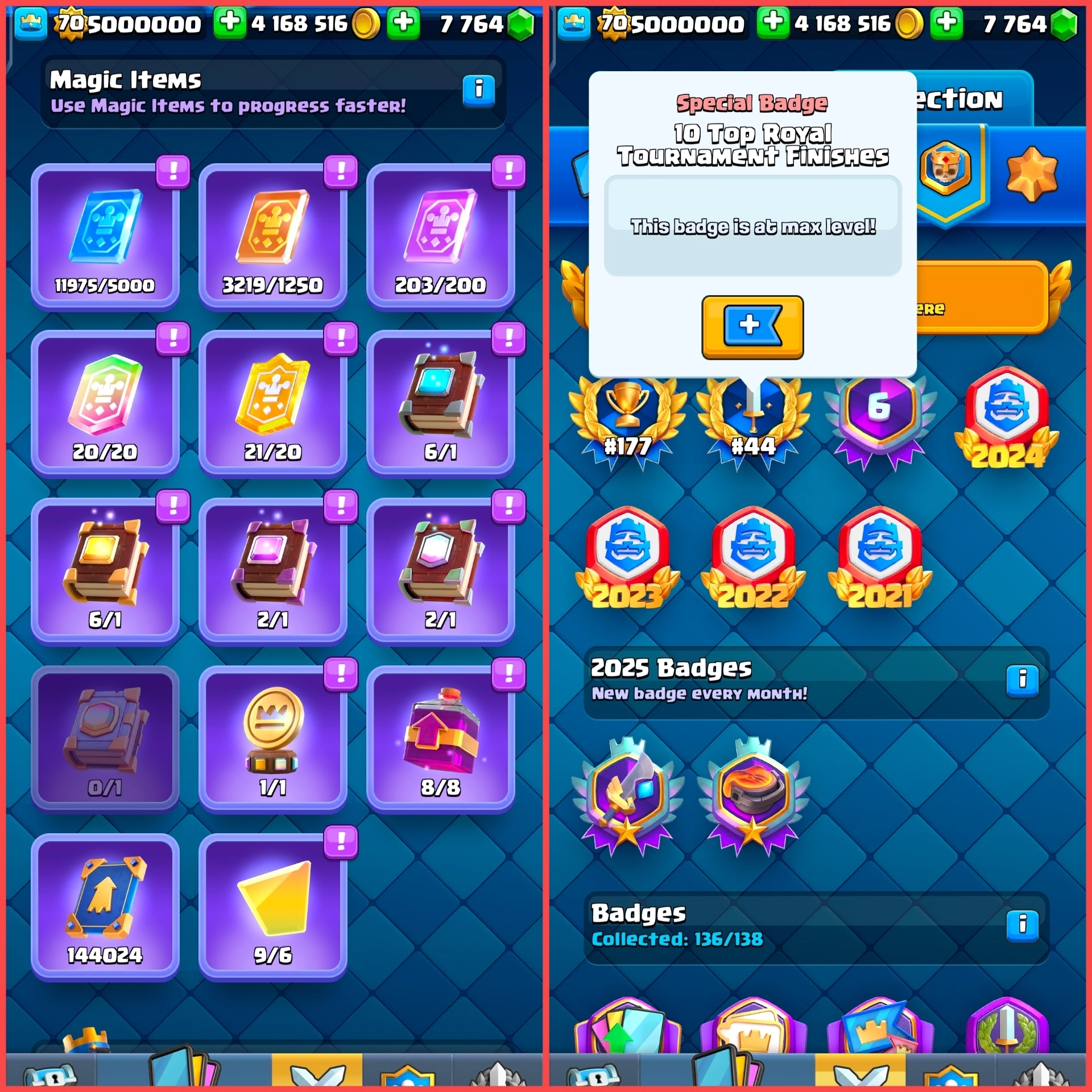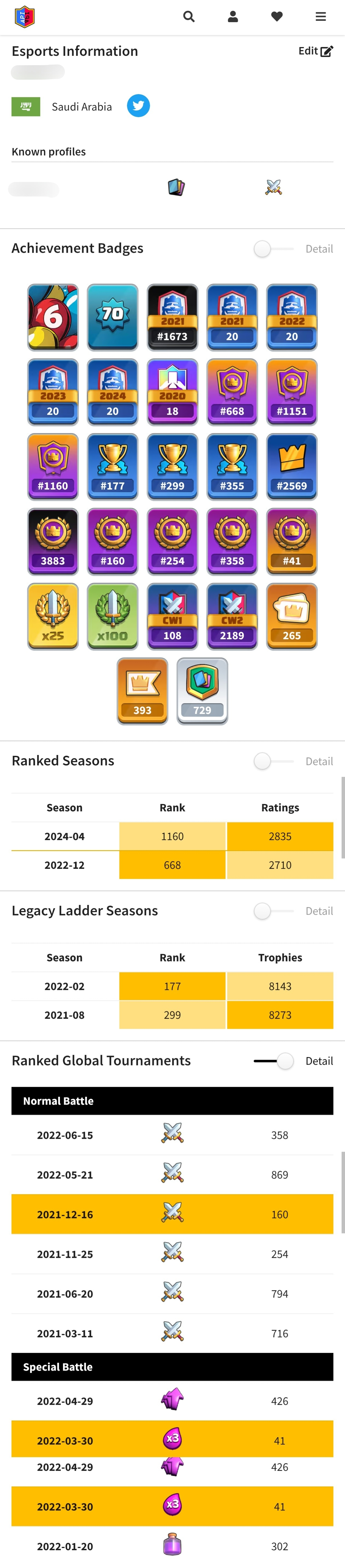 eSports Profile, 10x World Rank: Best 44 {4x CRL Badges + Global Tournament GT Emote + Both 20-20 RAREST Emotes} ALL 36 Evos, 110 Cards Level 15 CH404