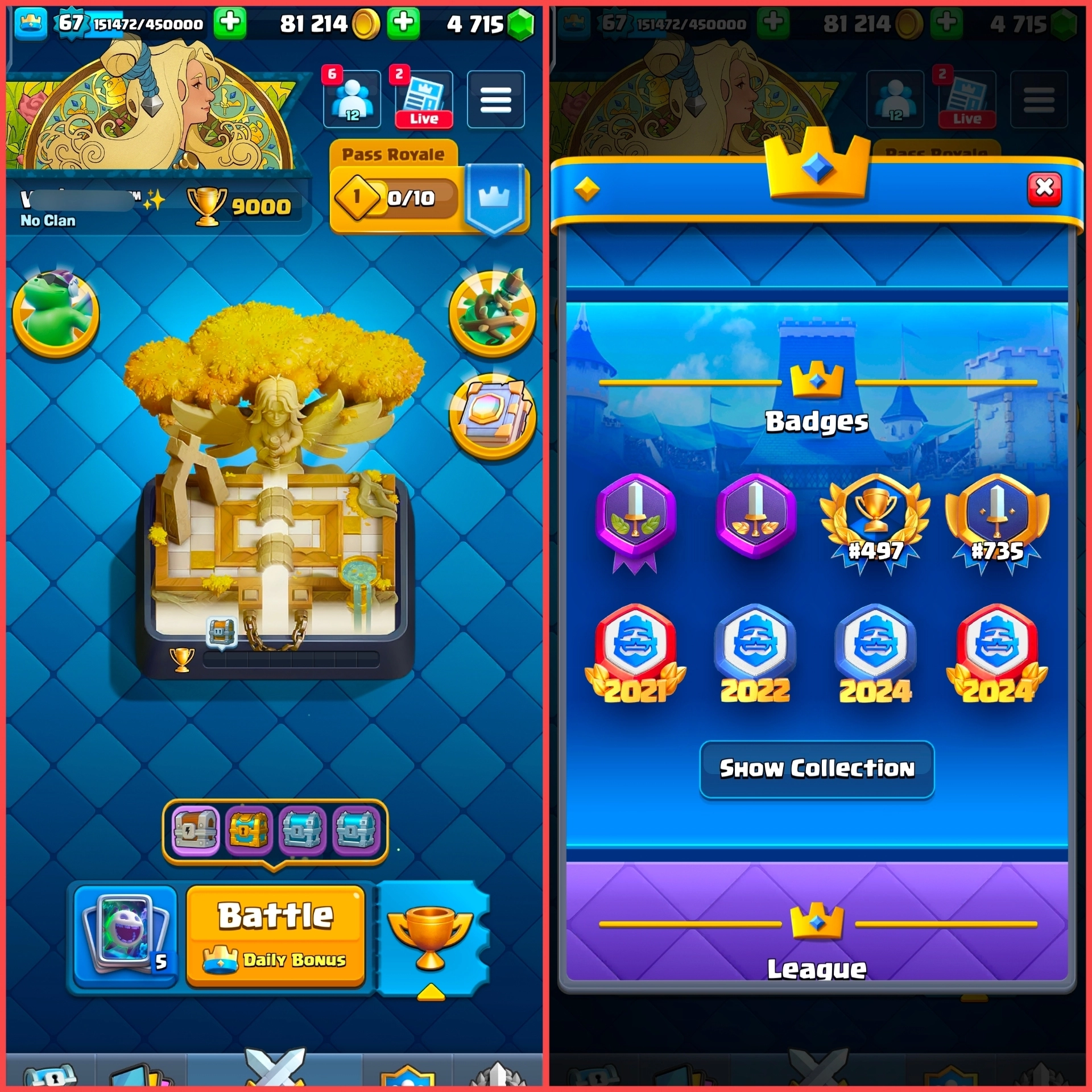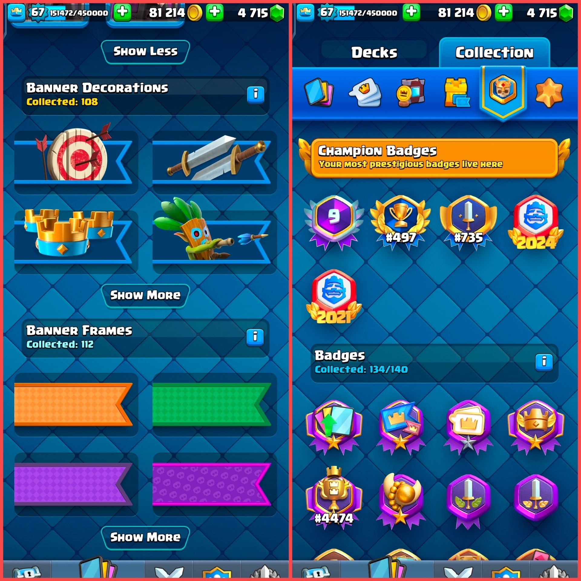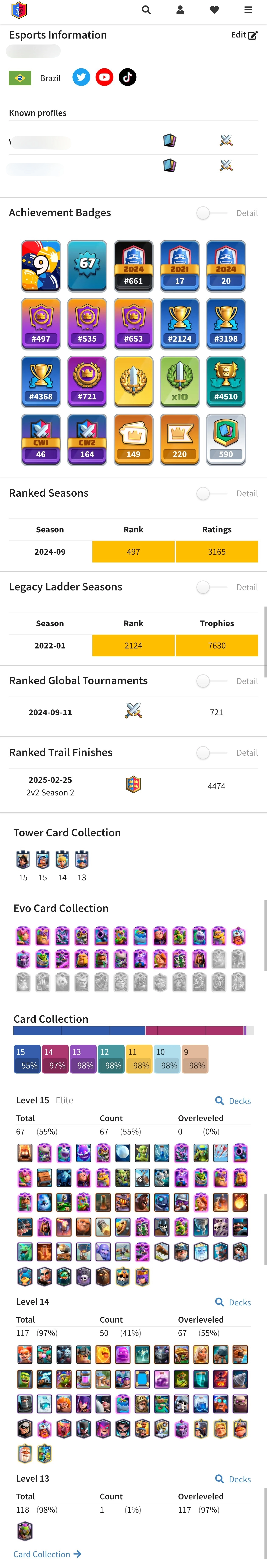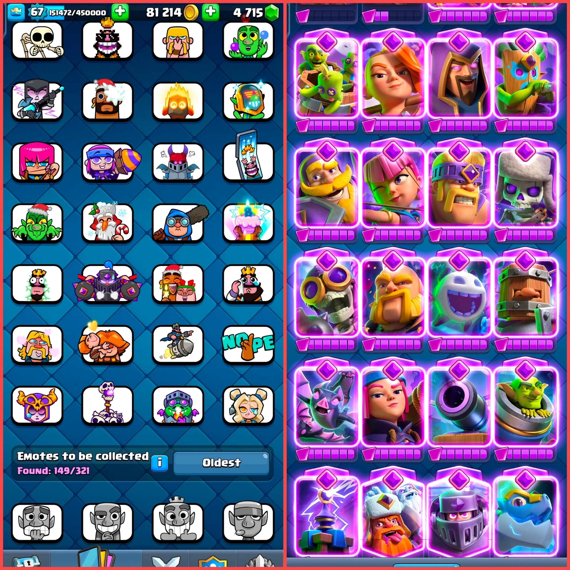*eSports Profile* 2x CRL Prestige Badges + 20 Win Emotes & Many More {22 Evolution, 67 Level 15 & 50 Level 14} Level 67 : KT 15 | 4.7k Gems CH355