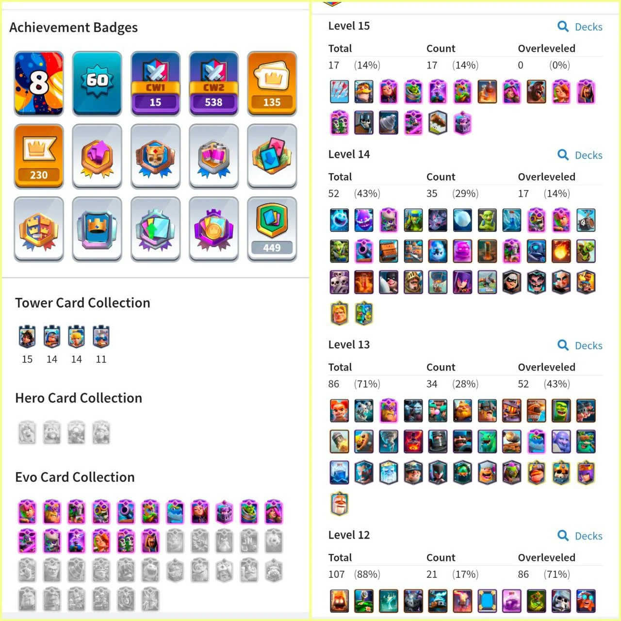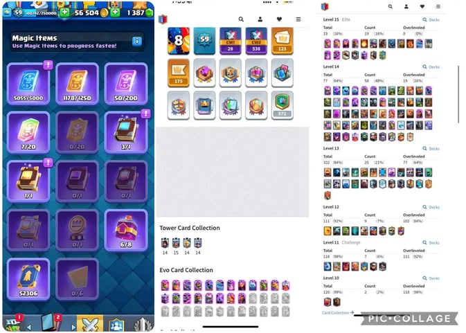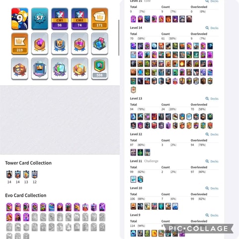 ⚡FLASH-SALE⚡17x TOP EVOLUTION🔥KT 15 (60XP)⚡18x LEVEL 15 (Elites)⚡35x LEVEL 14⚡34x LEVEL 13💎10303 GEMS⚡135 EMOTES😍7 SKINS⚡10122 TROPHY⚡NC FREE ⚡ STACKED ITEMS!