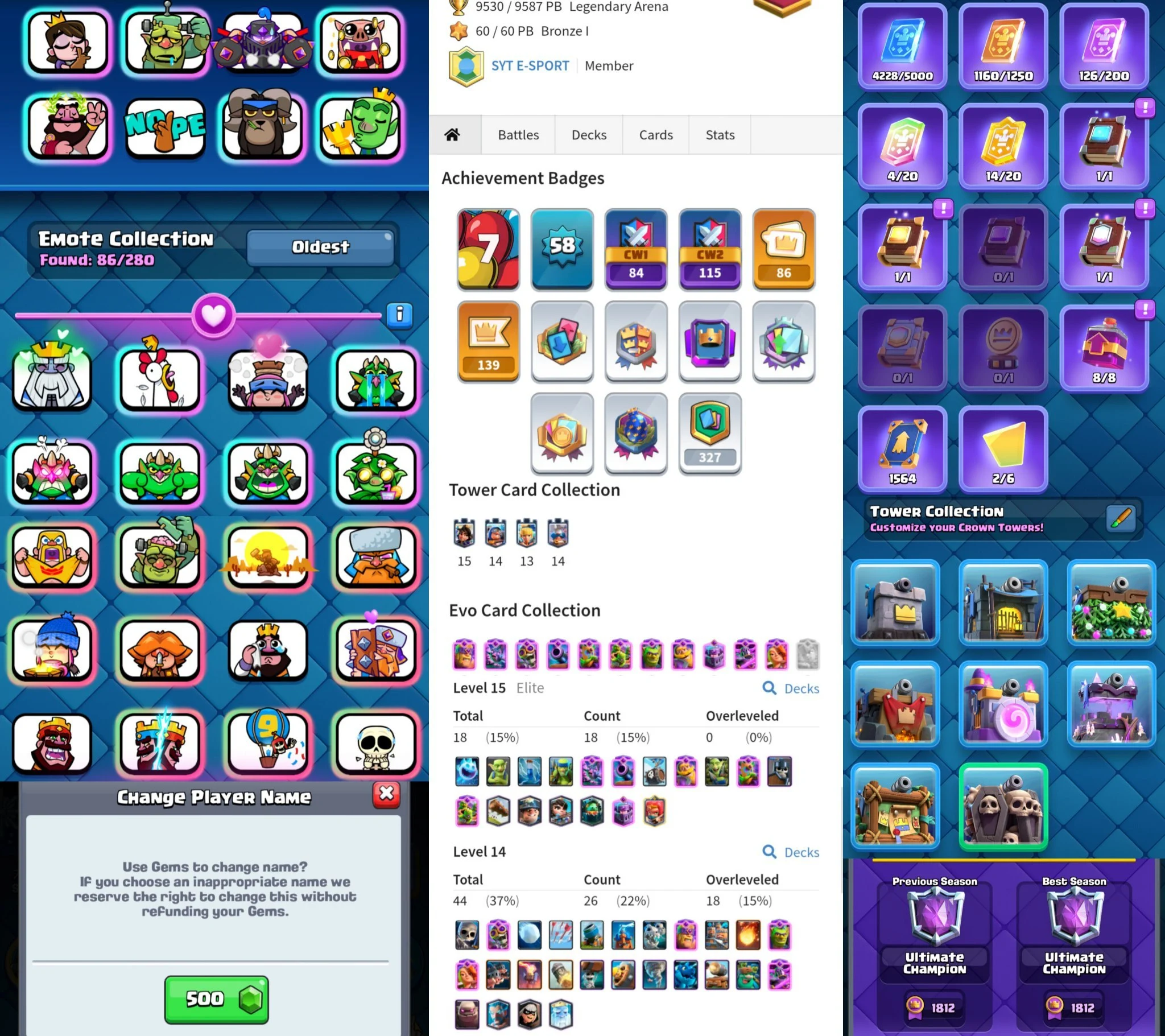Gobling Trophy ♨️ Ram Grass ♨️ Lny Piggy ♨️ 9530 Troohy ♨️ Kt-15 ♨️ 18 Elite max ♨️ 45 Max Card ♨️ 11 Evo Max+ 2 Evo Shard ♨️ Rare Emotes ♨️Loaded Magic Items ♨️ 16 ♨️