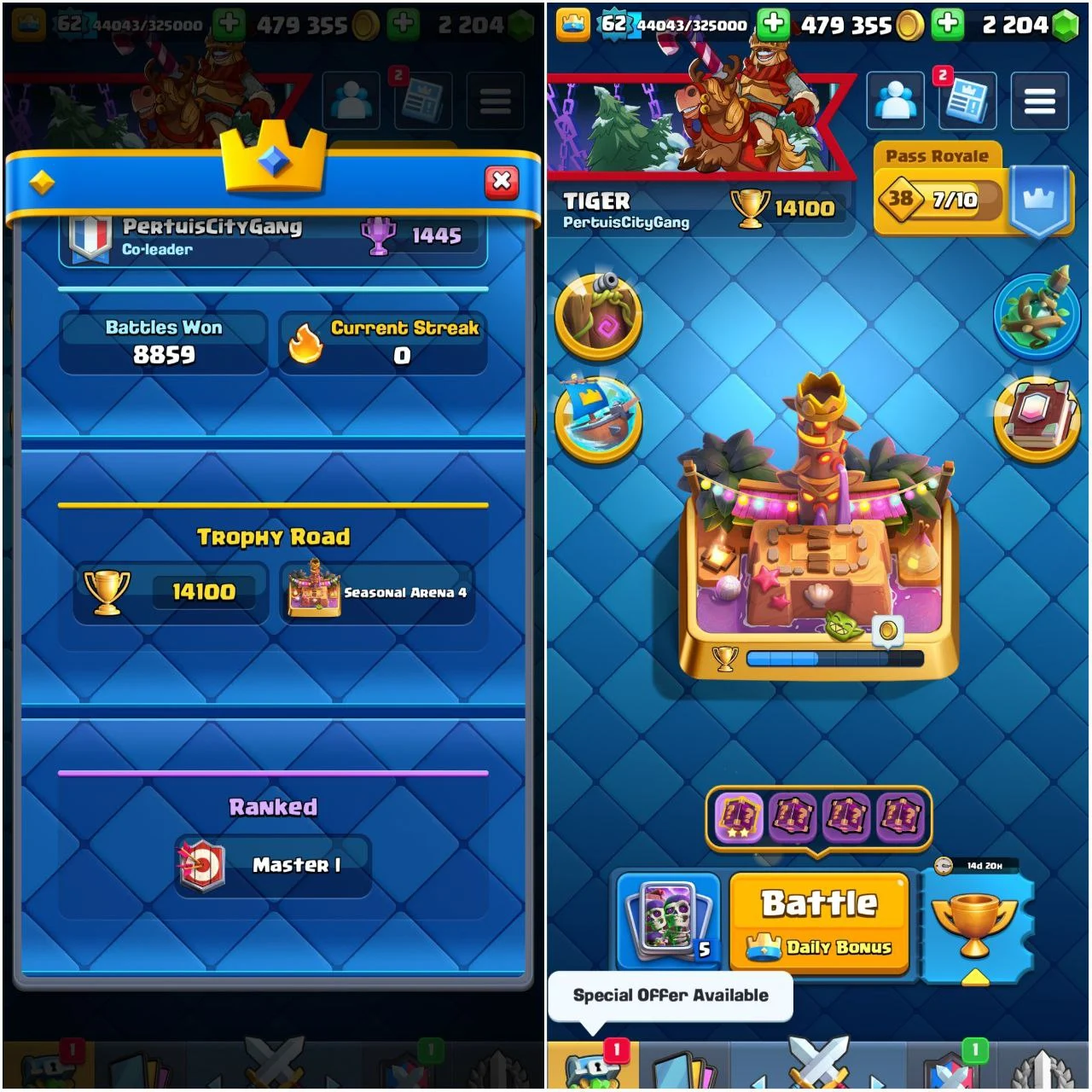 #JS LEVEL 62 | 14100 TROPHIES | SEASONAL ARENA LEVEL 4 | KT LEVEL 15 | 108 MAX CARDS(30 ELITE CARDS) | 16 EVO CARDS | 113 OG EMOTES | 11 TOWER SKINS | FREE RENAME | CHEAP PRICE