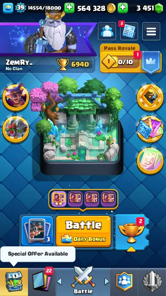 👑 King Tower 13 🏆 6940 Trophies ⚔️ Level 39 💎 Gems: 3451 🧬 Evolutions: 7 🔒 Recovery Codes