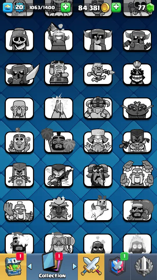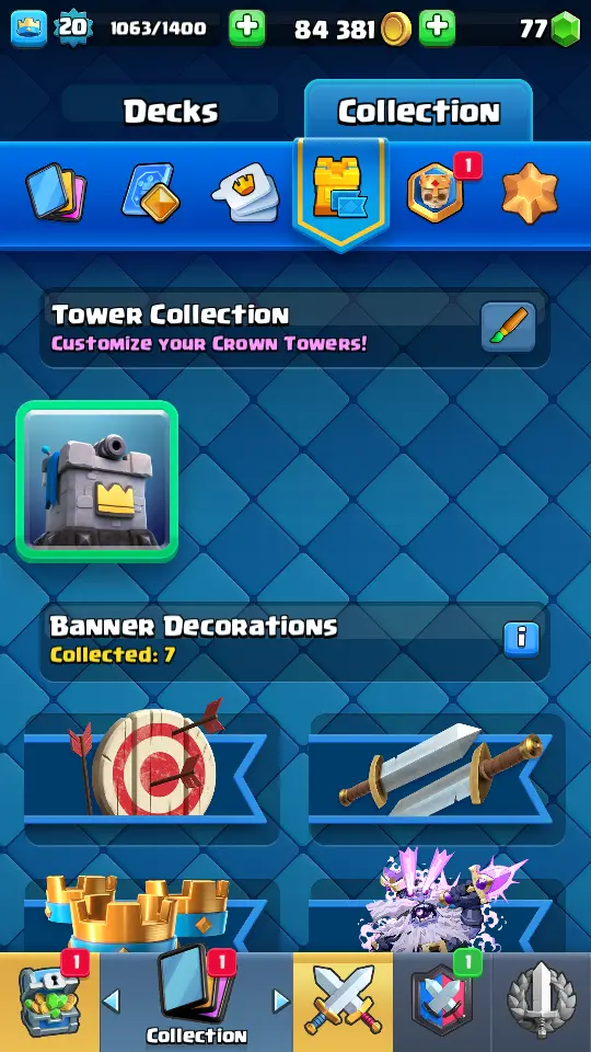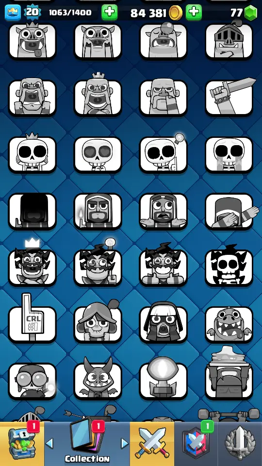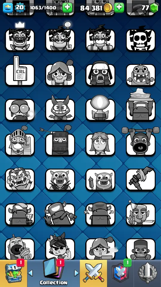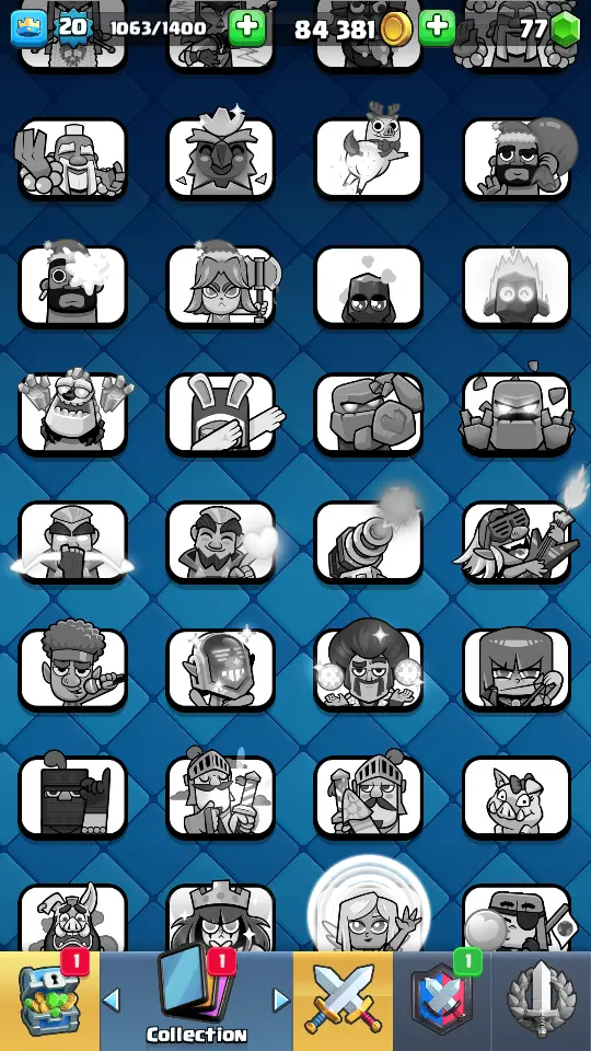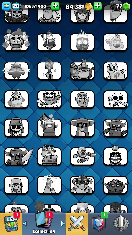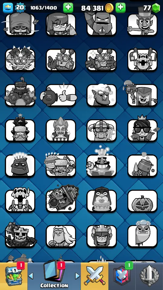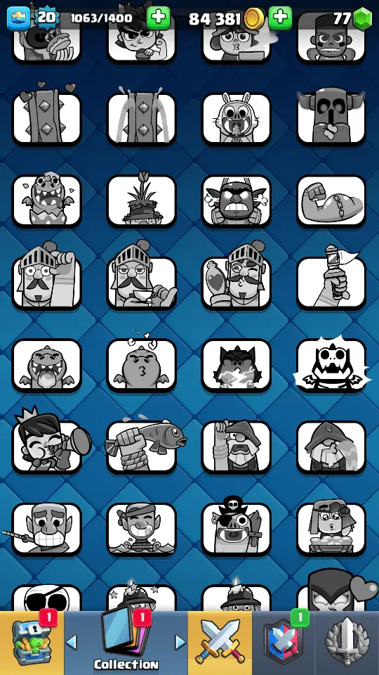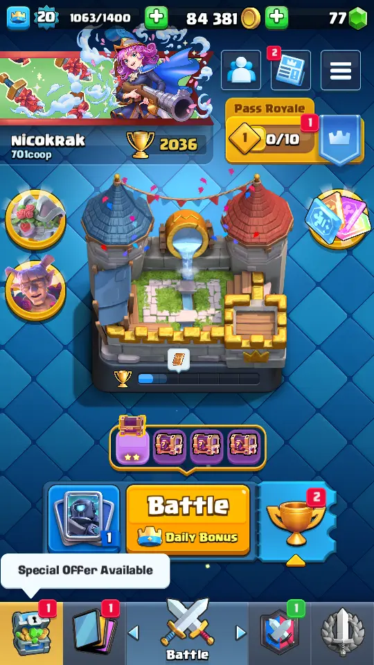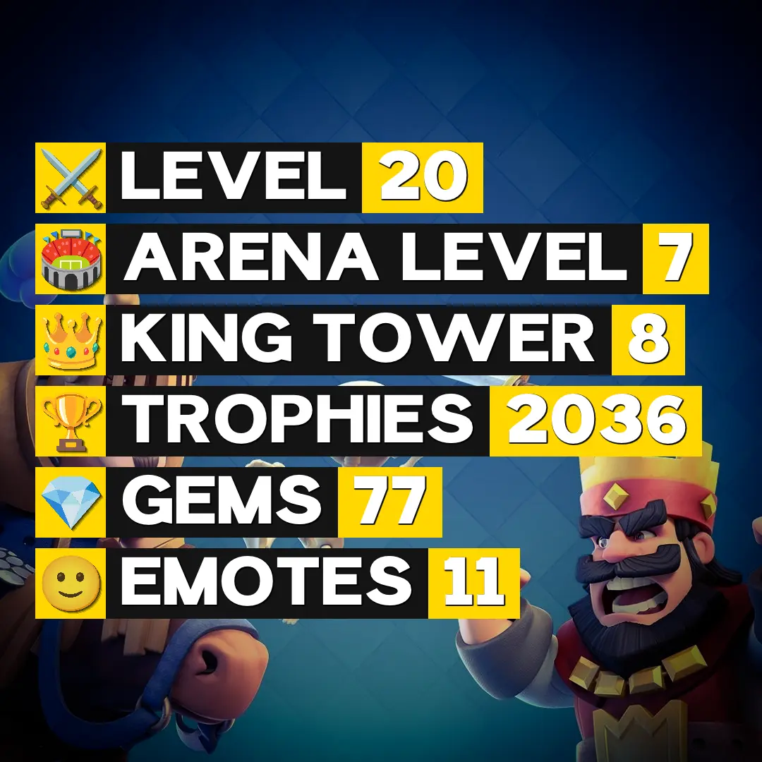 👑 King Tower 8 🏆 2036 Trophies ⚔️ Level 20 💎 Gems: 77 🧬 Evolutions: 0 🔒 Recovery Codes