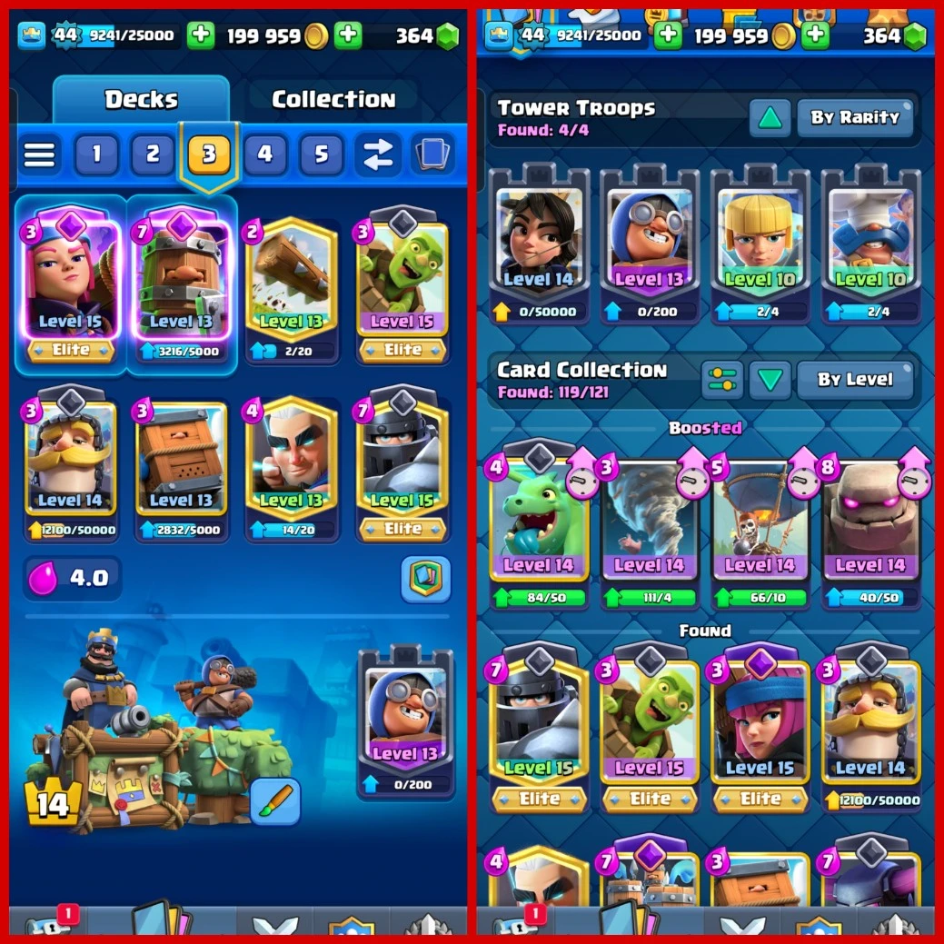 ☘️KT (14) ☘️ [4 MAX] ☘️44 XP💥6 EVO ✨1 LVL 14 CARDS ⸱ 3 ELITE ✨8500 TROPHY 🏆 ARENA 22 🔥 119 CARDS✨ 🔥 4 YEARS BADGE ✨38 RARE EMOTES ✨[360+ GEMS