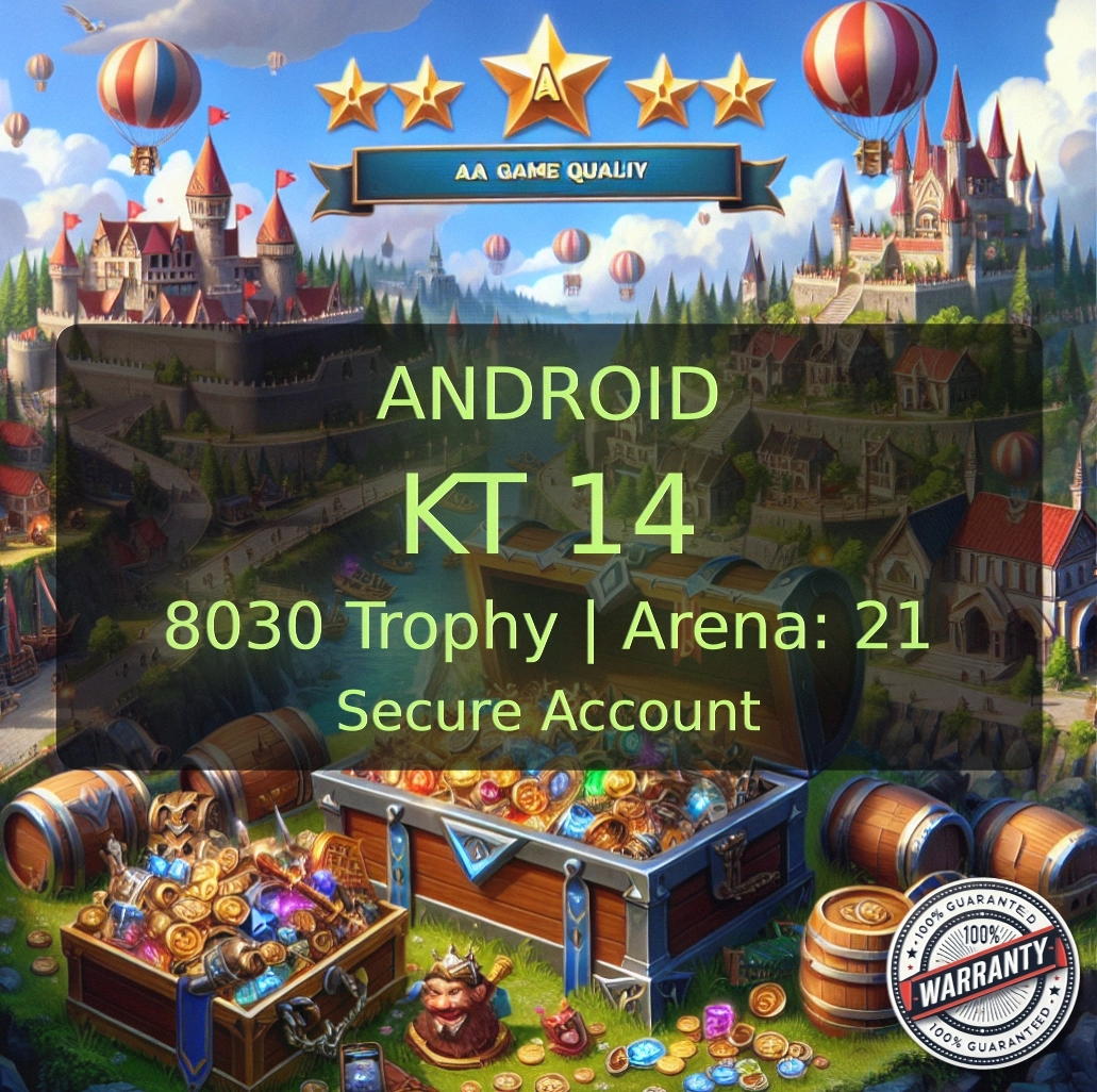 KT 14 LEVEL 52+Trophies:8030+8 Evolution+118 Cards+4 Cards (MAX) + 25 Cards (14LVL)+7 Tower Skins+42 Emotes+179K Gold+2108 Gems+IOS/ANDROID #ACC-164762