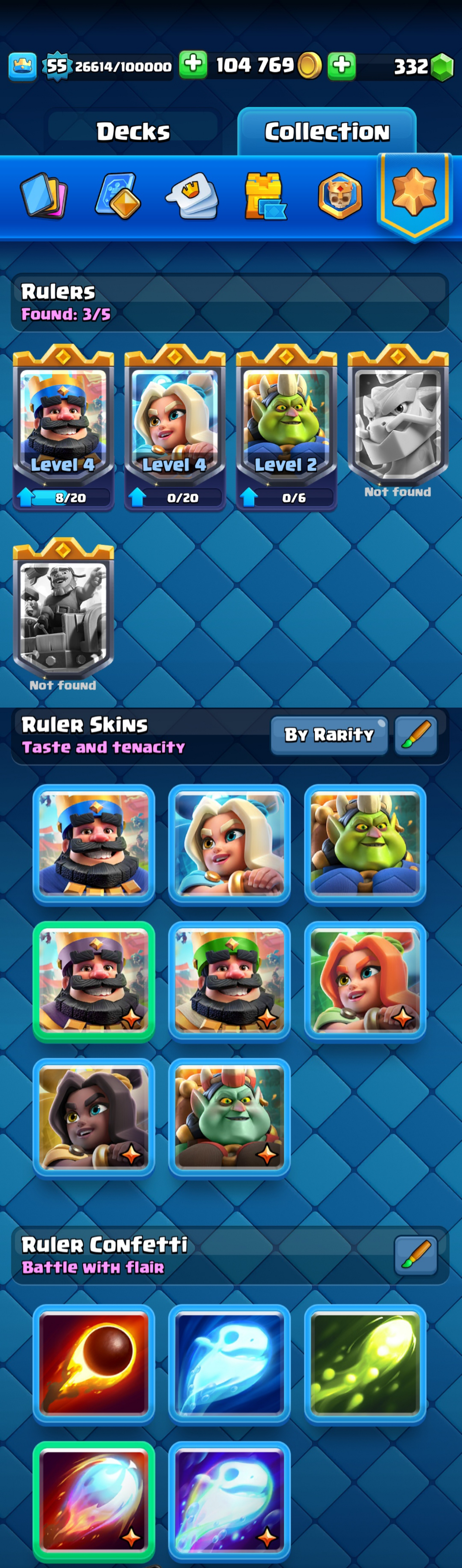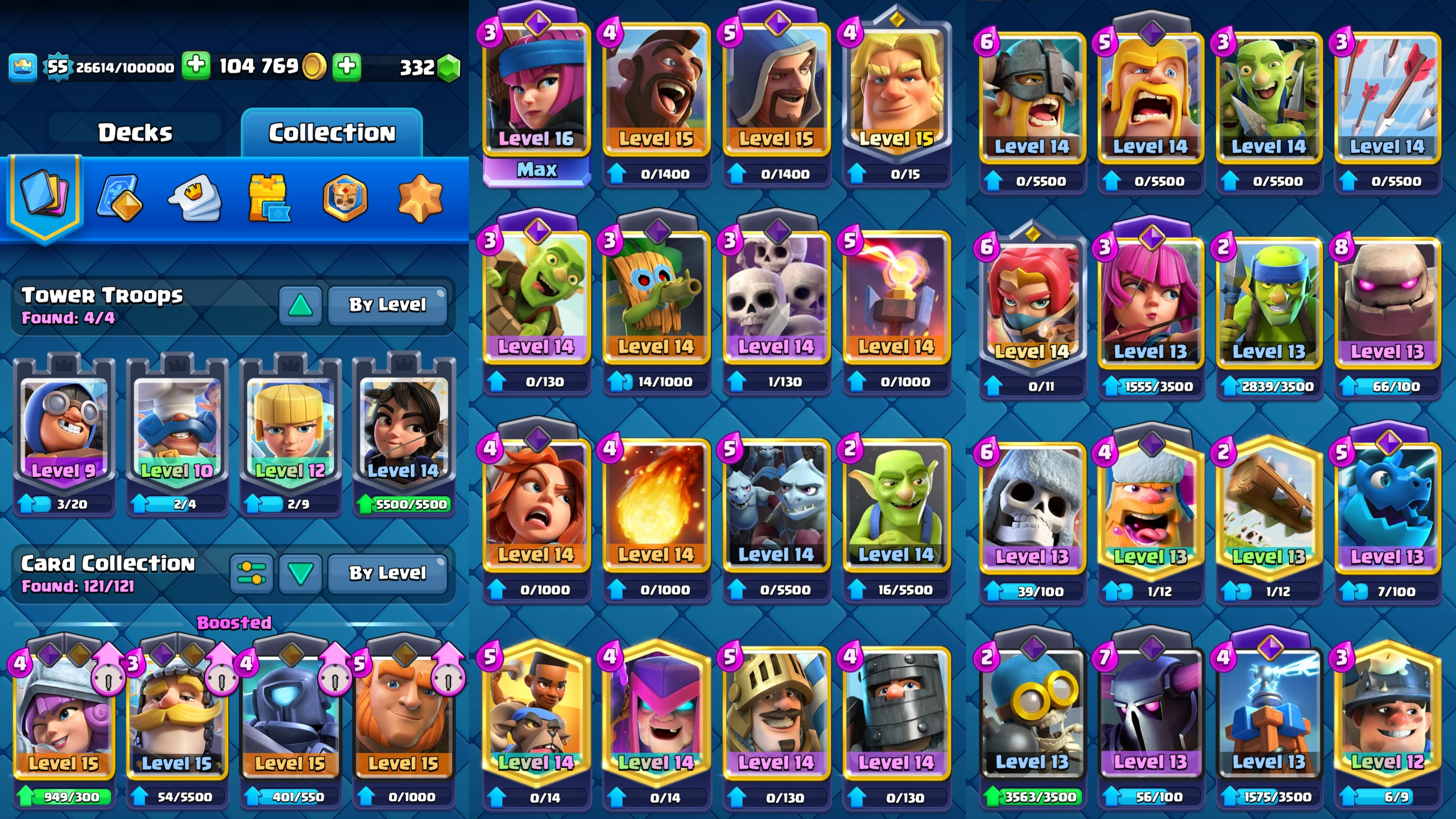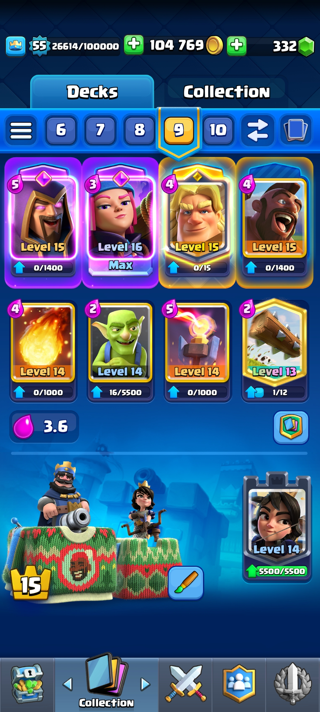 ⭐ KT 15 ⭐ 55 EXP ⭐ 7 Evolution ⭐ 1 Level 16 Card , 3 Level 15 Cards , 19 Level 14 Cards ⭐ Namechange Available ⭐ 3 Rulers & 7 Rulers skins ⭐ All cards