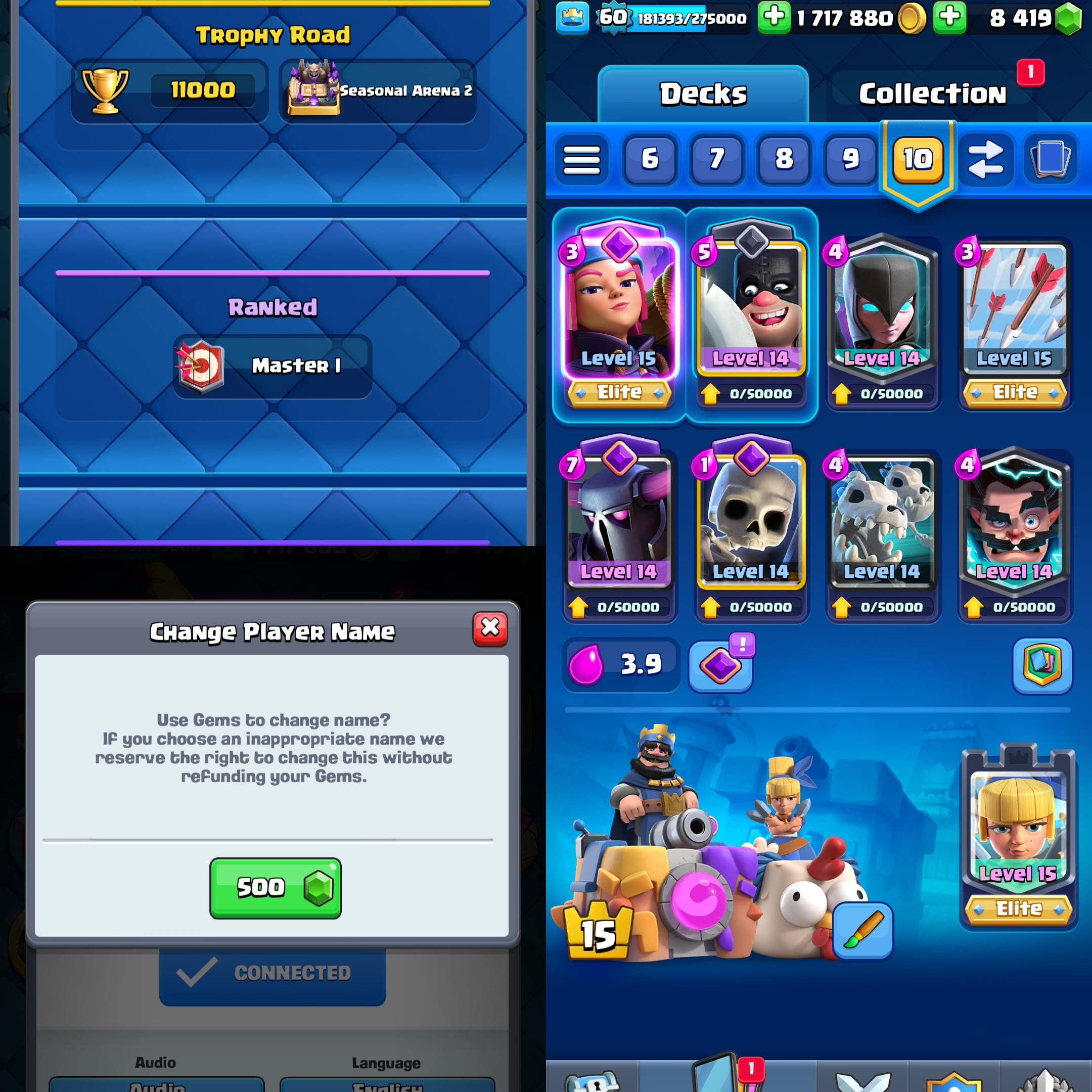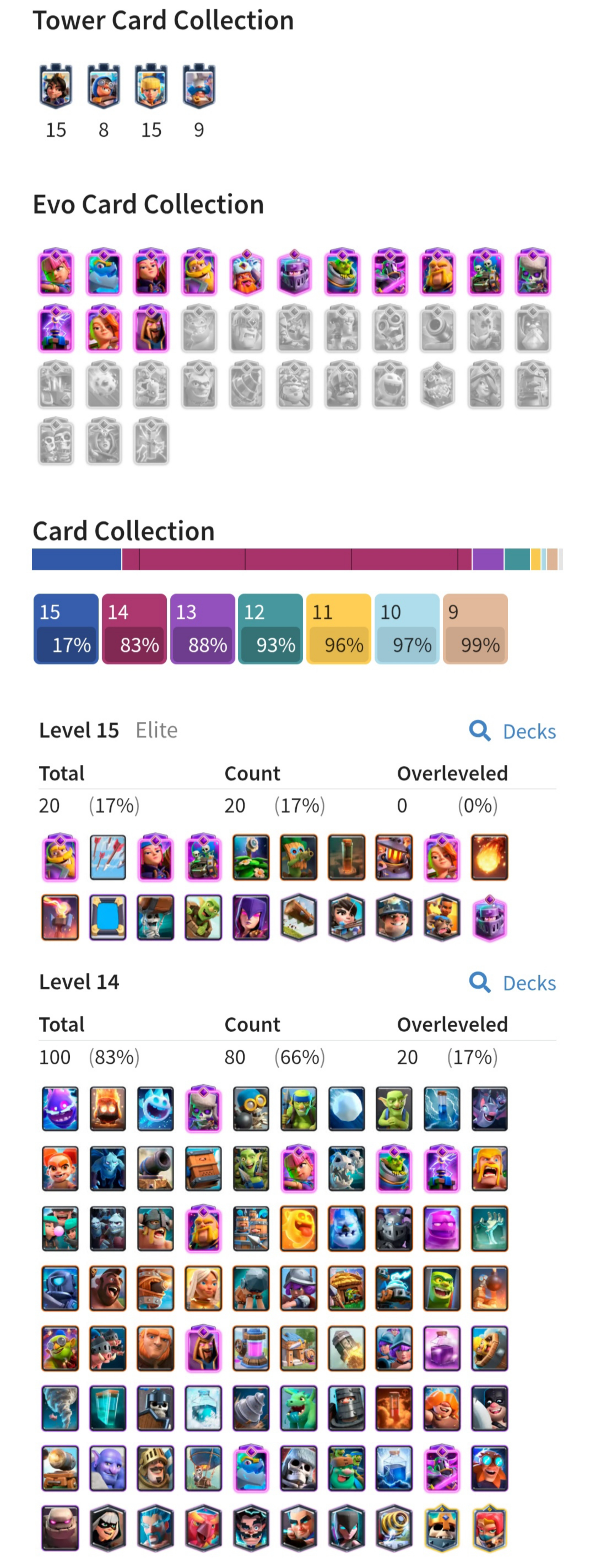 ⭐ KT 15 ⭐ 60 EXP ⭐ 8.4K GEMS ⭐ 14 EVOLUTION ⭐ 20 ELITE CARDS ⭐ 100 MAX CARDS ⭐ 11K Trophy ⭐ 8.4K Gems ⭐ All Cards ⭐ 123 Emotes