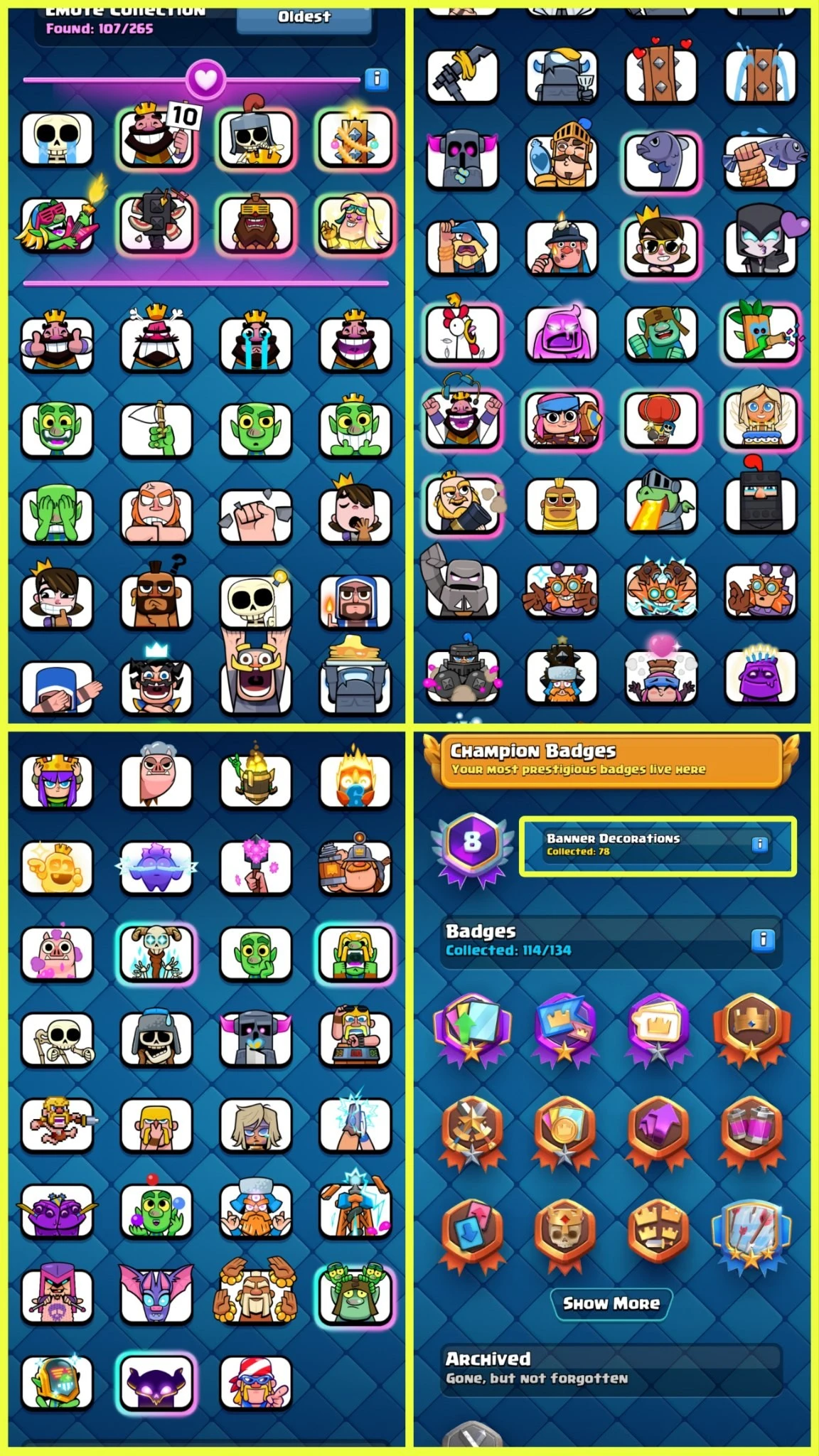 KT-15 💥 9200+ CUP 🏆 5400+ 💎 ARENA 23 💥06 LEVEL 15 CARD♦️57 LEVEL 14 CARD 💥 NAME CHANGE 500 💎 107 EMOTES 💥 8 YEAR BADGES ❤️🔥 INSTANT DELEVERY ⏩