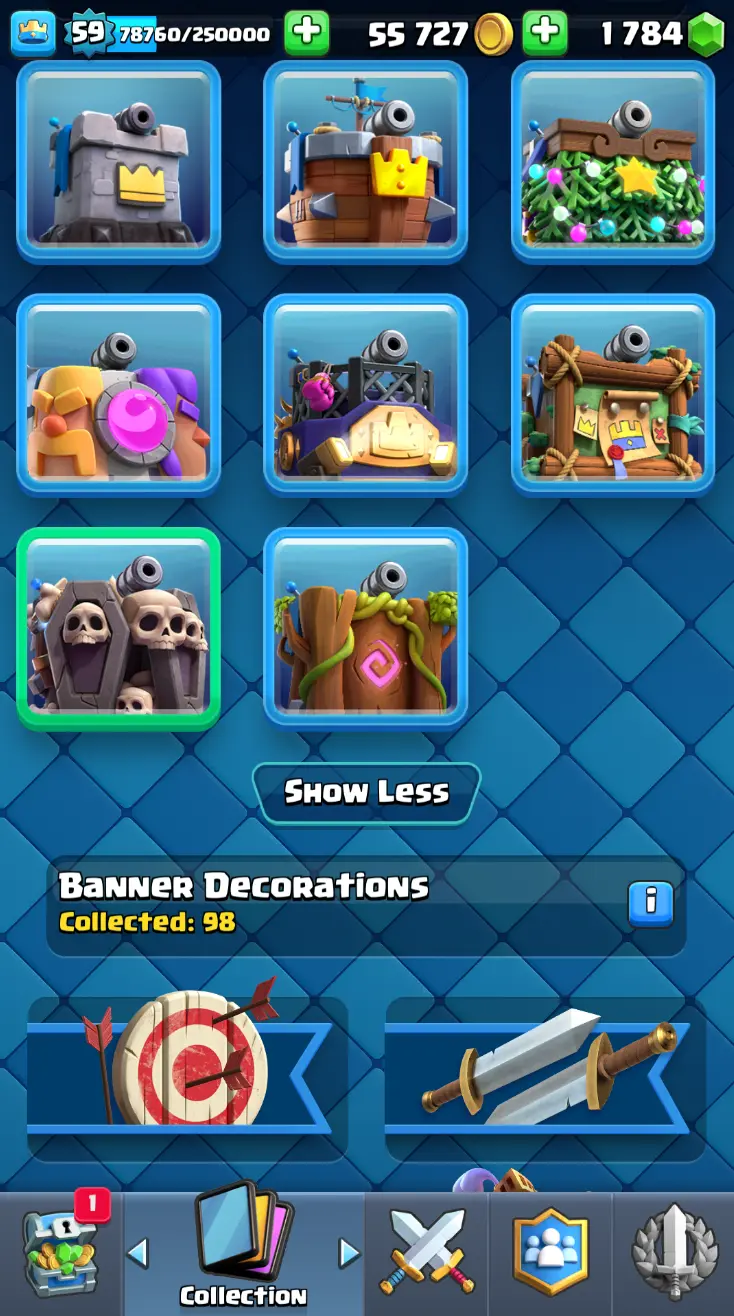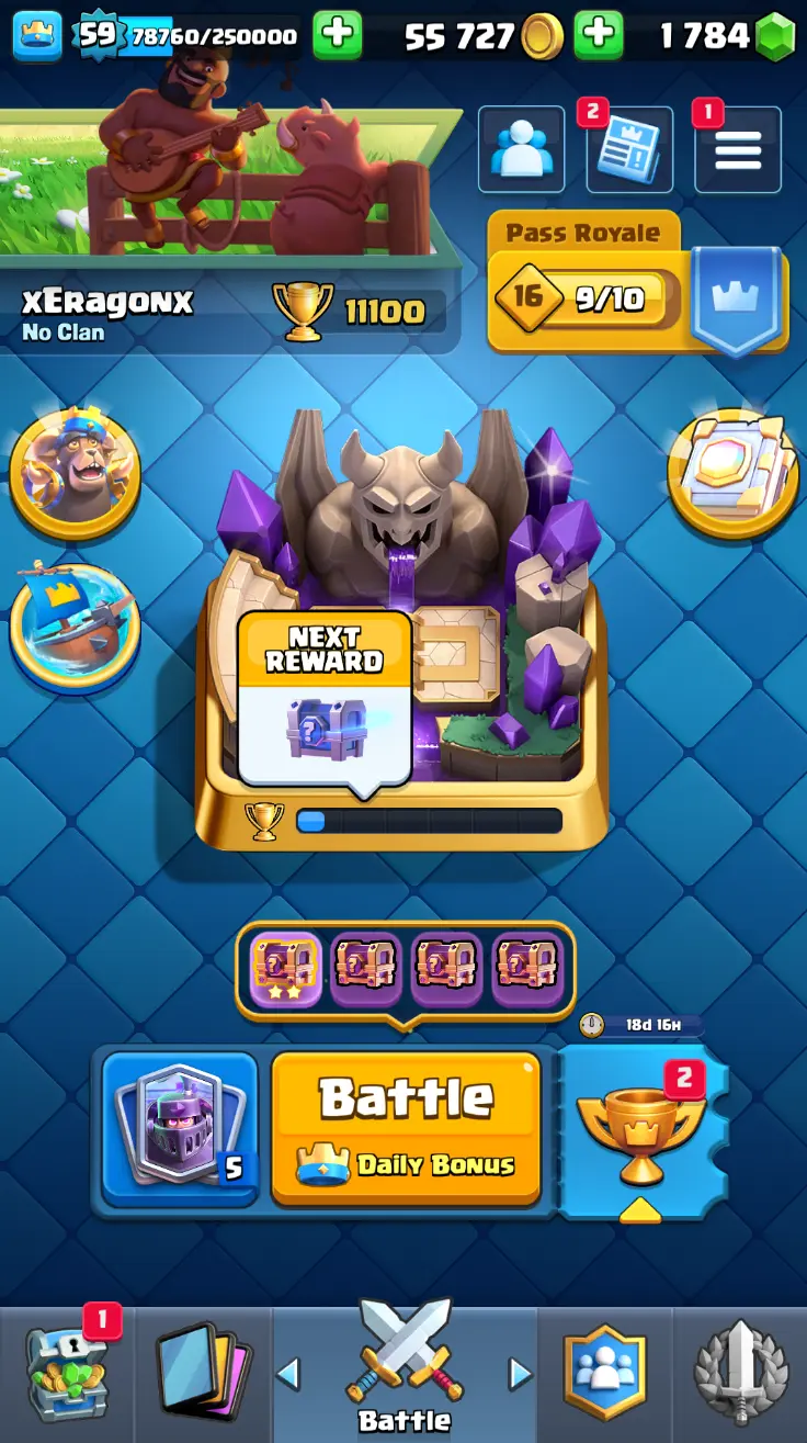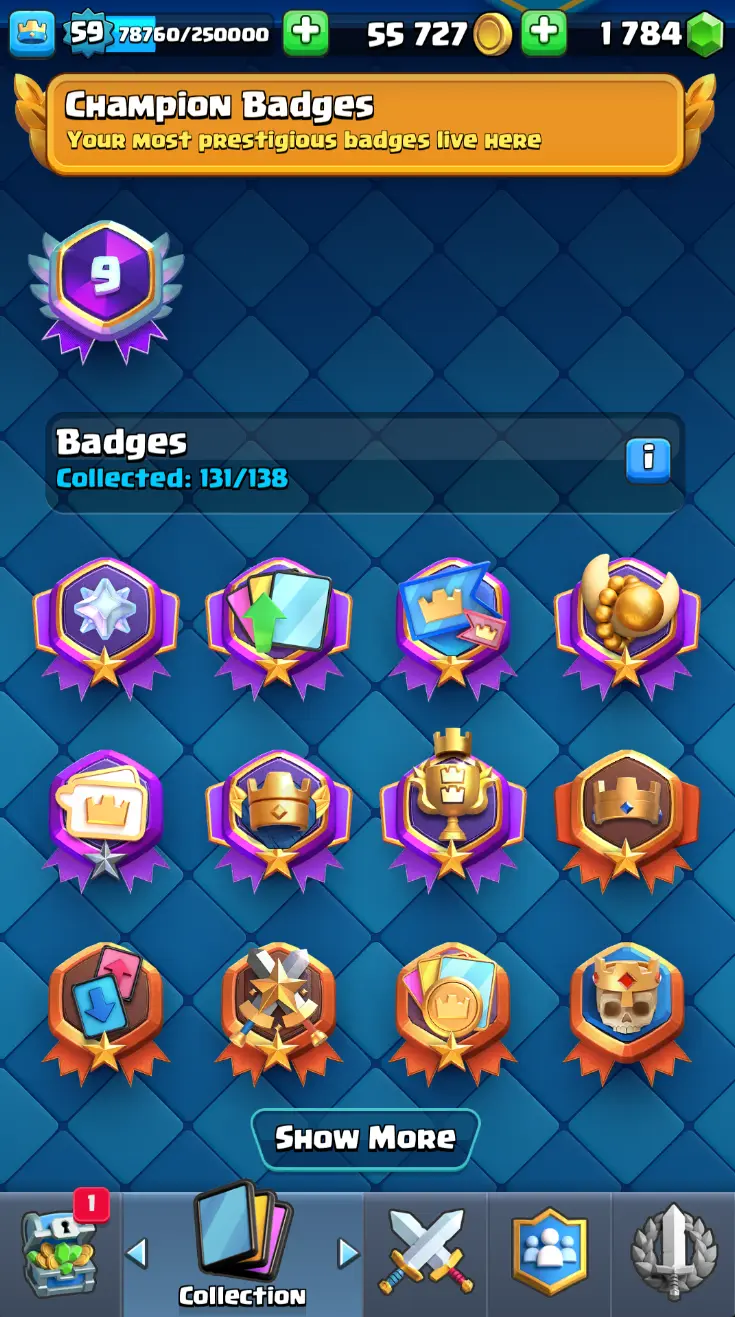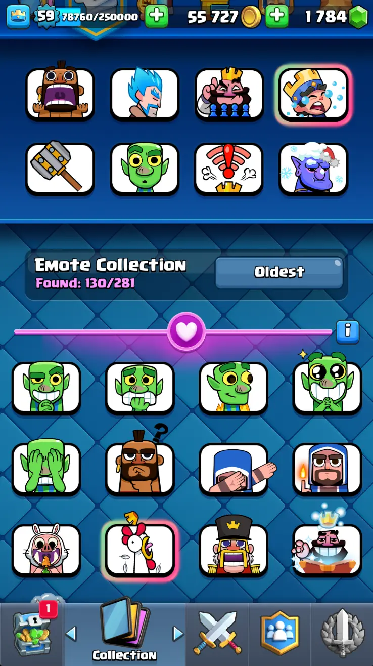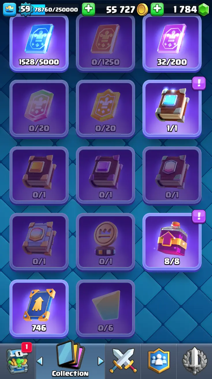 ◀️ KT 15 ▶️ LEVEL 59 🤩 11000 TROPHIES 🏆 18 ELITE CARD 🙀 62 MAX CARD 😎 16 EVO ☠️ 130 EMOTE 😍 7 SKIN 👽 121 CARDS 💳 55k GOLD 💰 1784 GEMS 💎 RL150
