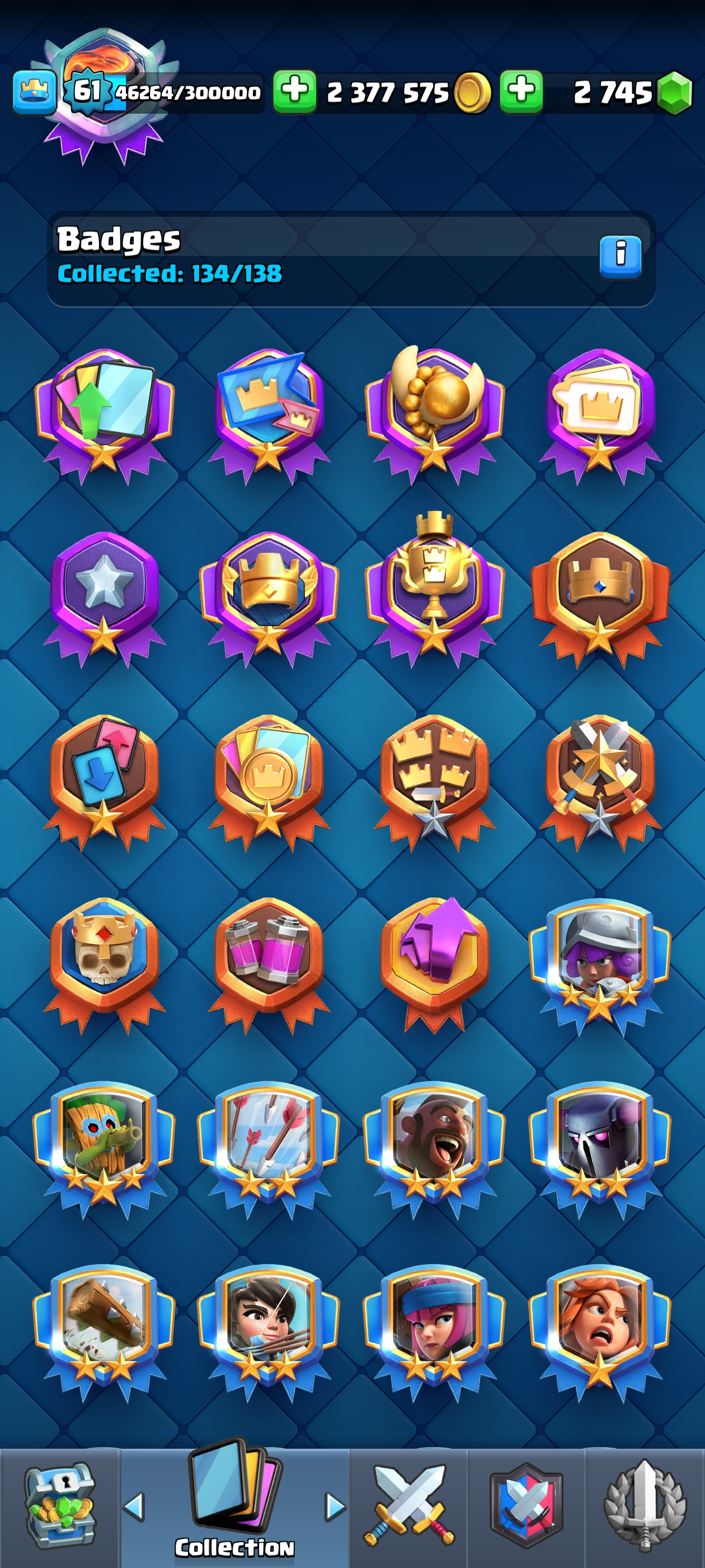 ⚡ Legendary CR Account 👑 | Fully Upgraded 💥 King Tower 15🥇Level 61🎗️2.3 Million Gold♦️| Current 15000+ Trophies 🏆 | 83 Max, 24 Elite & 23 Evo Cards 🔥 | Rare Emotes 😎 & Banners 🎌 59725 Elite Wild Card ✨Name Change Gems Available🔺YACR100