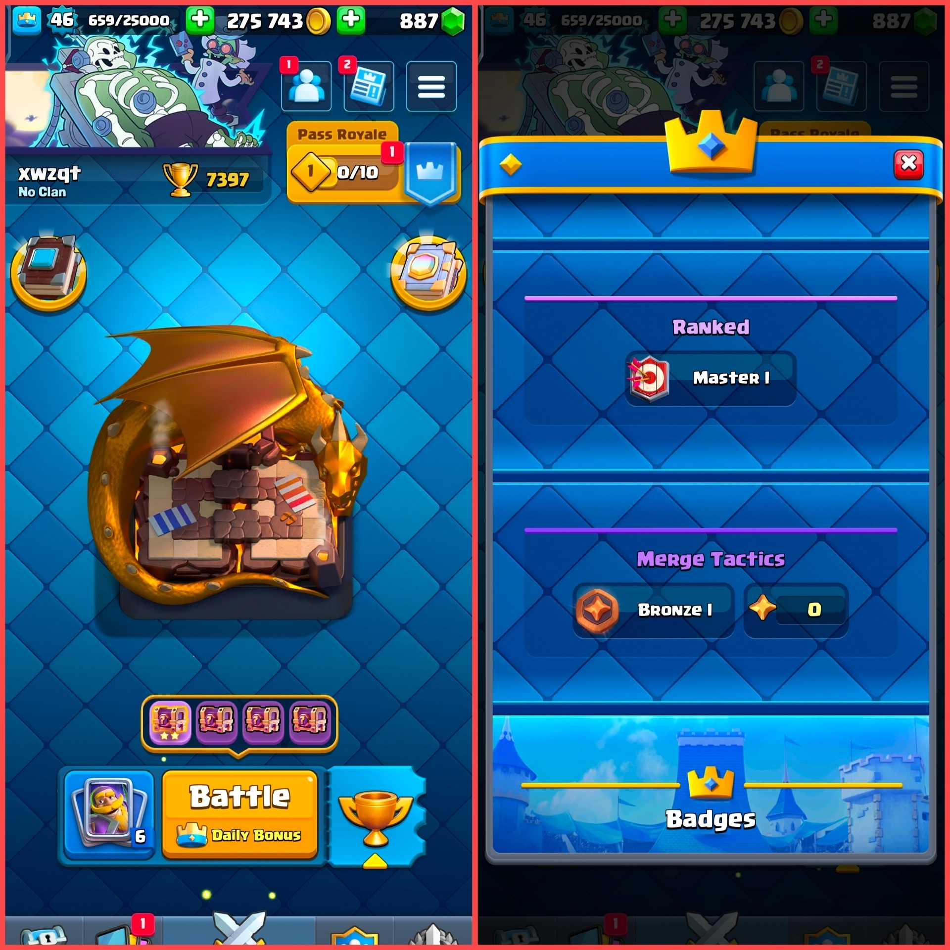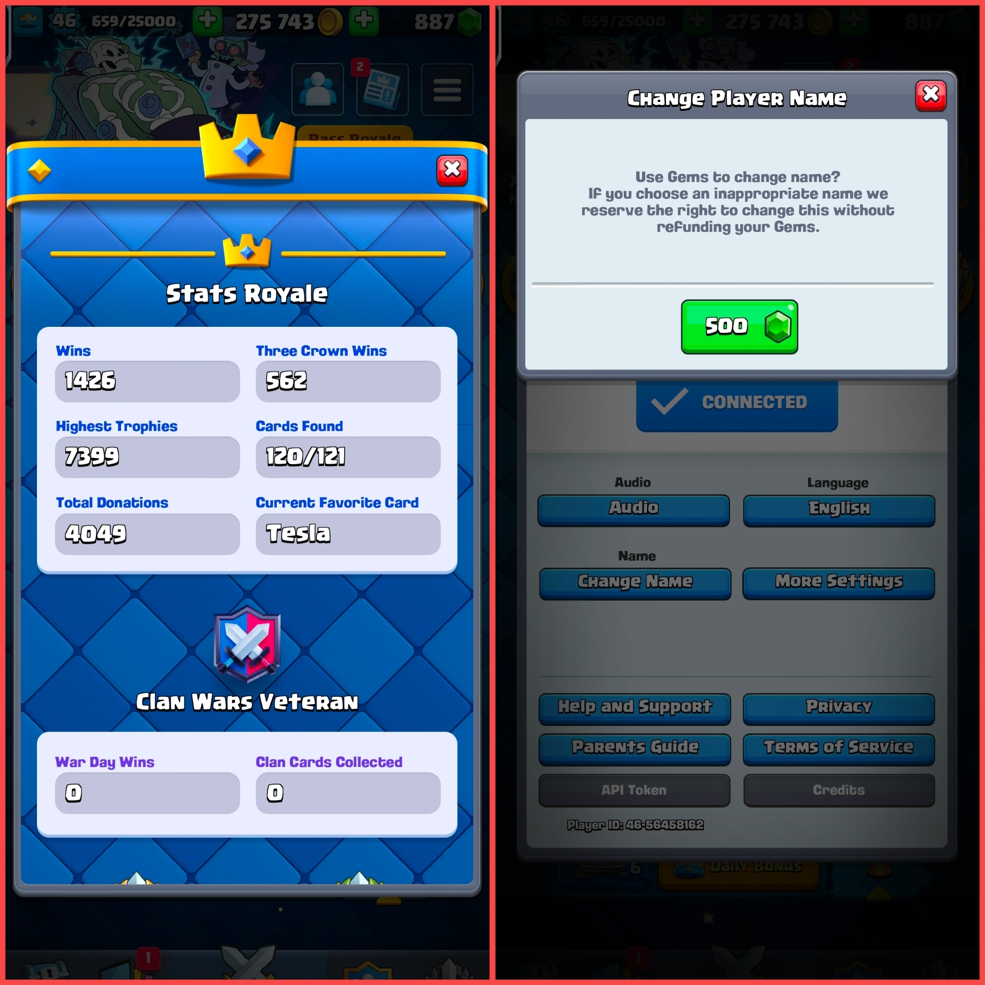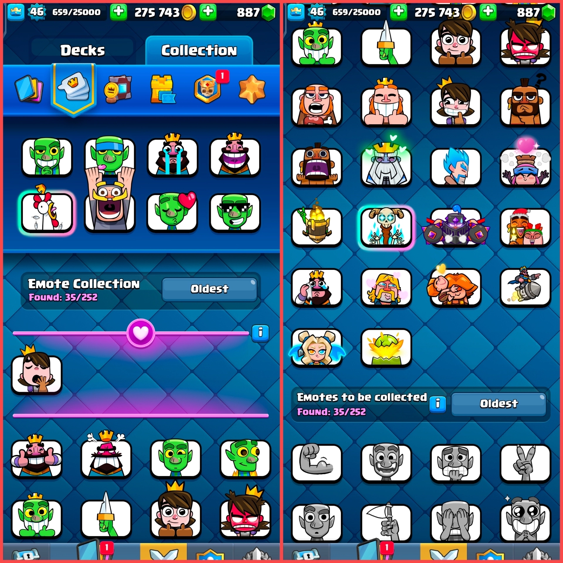 Level 46, 275k Gold & 7.3k Trophies | NC Avbl, 120 ALL Cards | 9 Evos Unlock | 6 Cards Level 14, 2 Level 15, 24 Lvl-12, 33 Lvl-11 & 46 Lvl-10 | CH437