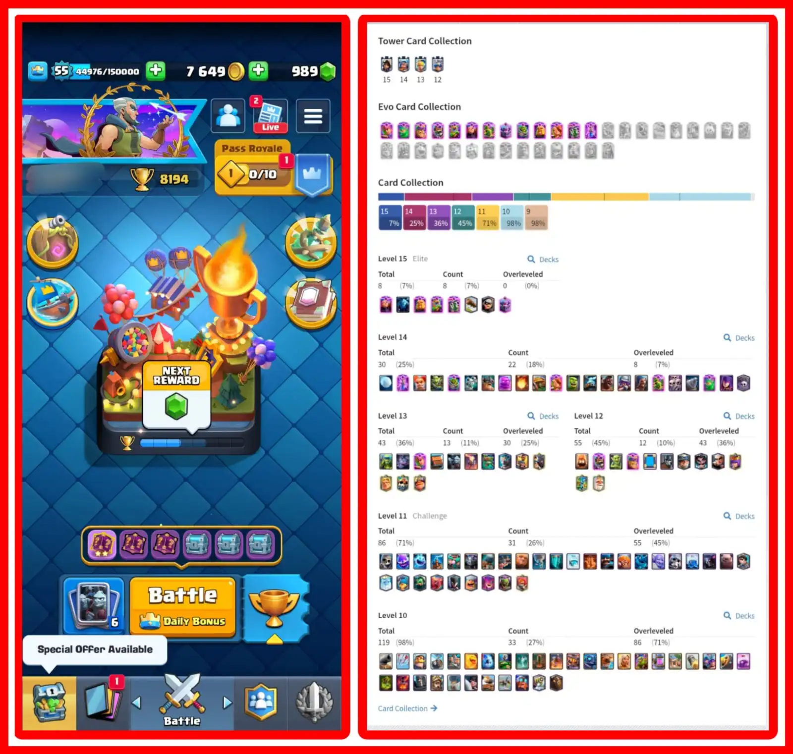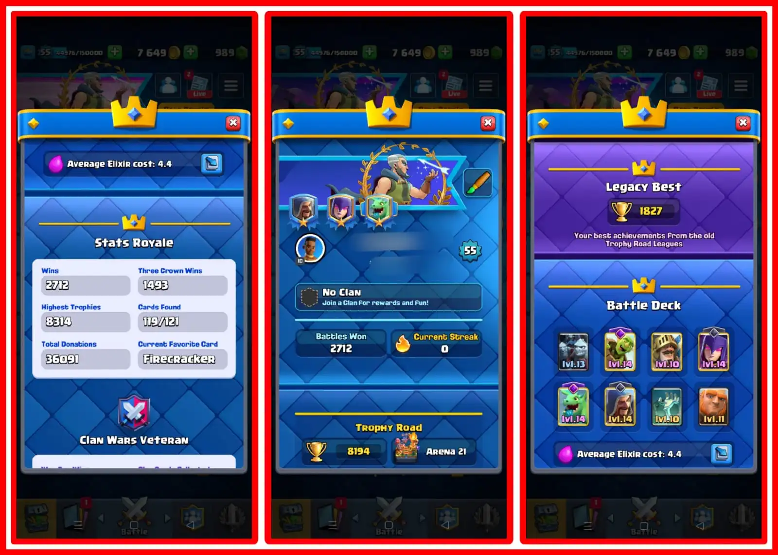 LEVEL 55 🚀😍 8194 TROPHIES 🏆 ARENA LEVEL 21 ❤ KT LEVEL 15 ☠ 13 EVOLUTION CARDS 🤩 8 ELITE CARDS 😍 30 MAX CARDS ☠🎁 NAME CHANGE 500 GEMS 💎☠ CHEAP PRICE 💸 INSTANT DELIVERY ☑💯 ANDROID & IOS ☑ #mn