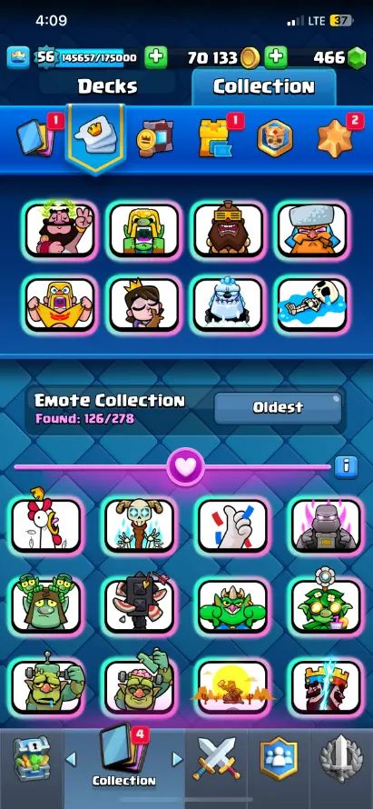 Level 56 ⚡️ Kt 15 ⚡️ 10 cards elite ⚡️ 18 cards level 14 ⚡️ 9500 trophies ⚡️ 126 rare emote ⚡️ 8 tower skin ⚡️ Magical items full ⚡️ Very cheap price 👌