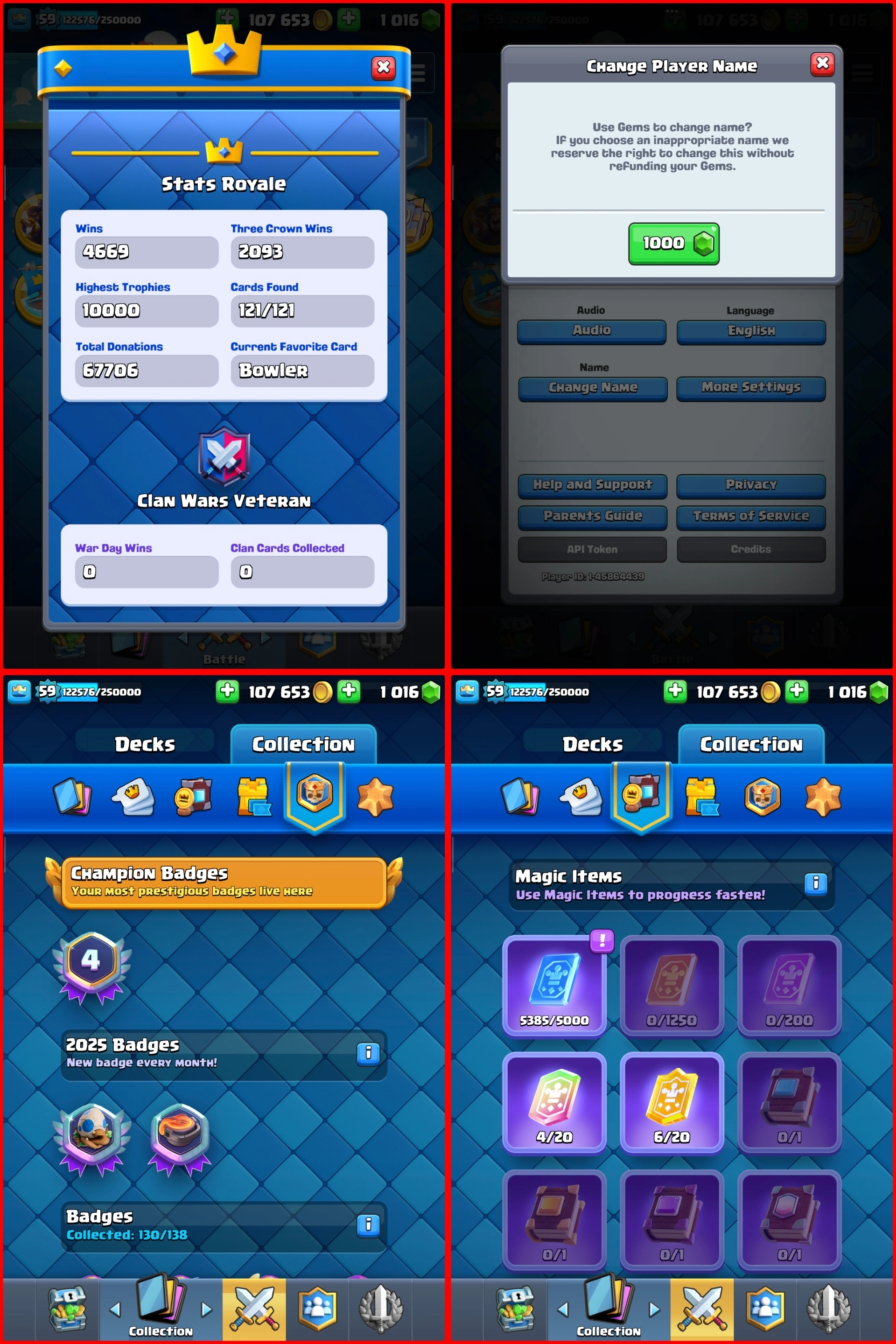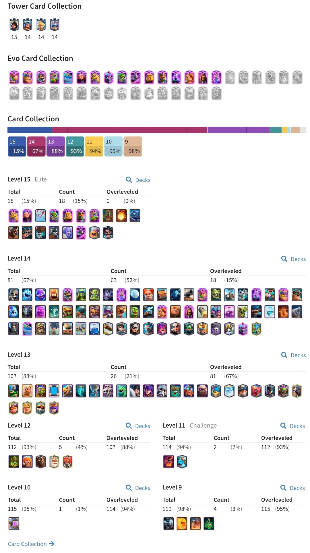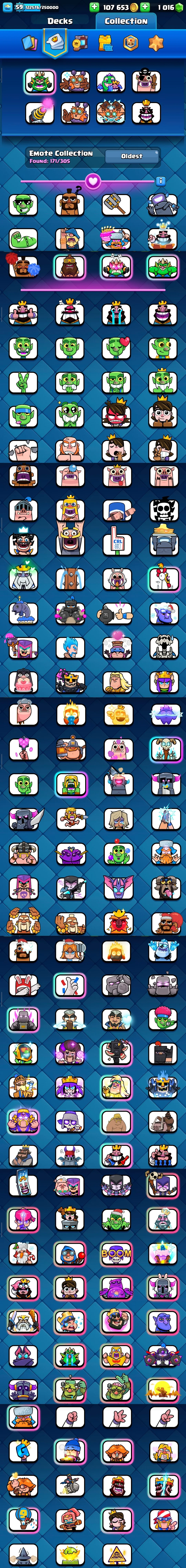 Level 59, 81 Cards Max | 121 ALL Cards & 12k Trophies | 16 Evolutions, 63 Cards Level 14 & 18 Level 15 | 171 Emotes, NC Avbl | Android-iOS RC10