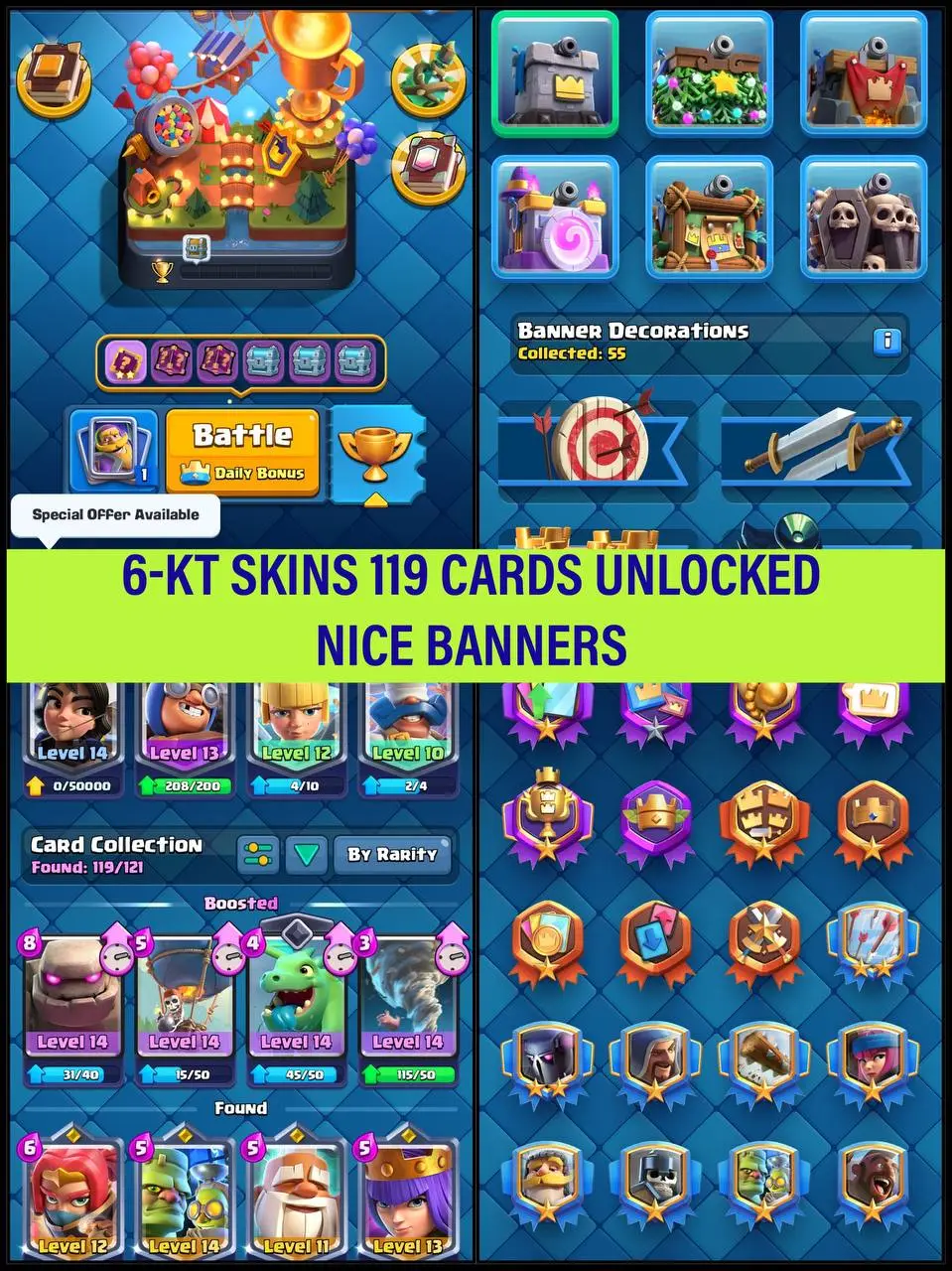 💥CHEAPEST💥👑LVL-48👑16 MAX CARD ⸱ 2 ELITES💥 9-EVO CARDS🍁8000-TROPHIES🏆KT-14💫ARENA-21🔥119 CARDS ❄️6 -KT SKINS💥69 EMOTES🫧CHEAP👀INSTANT DELIVERY🚀