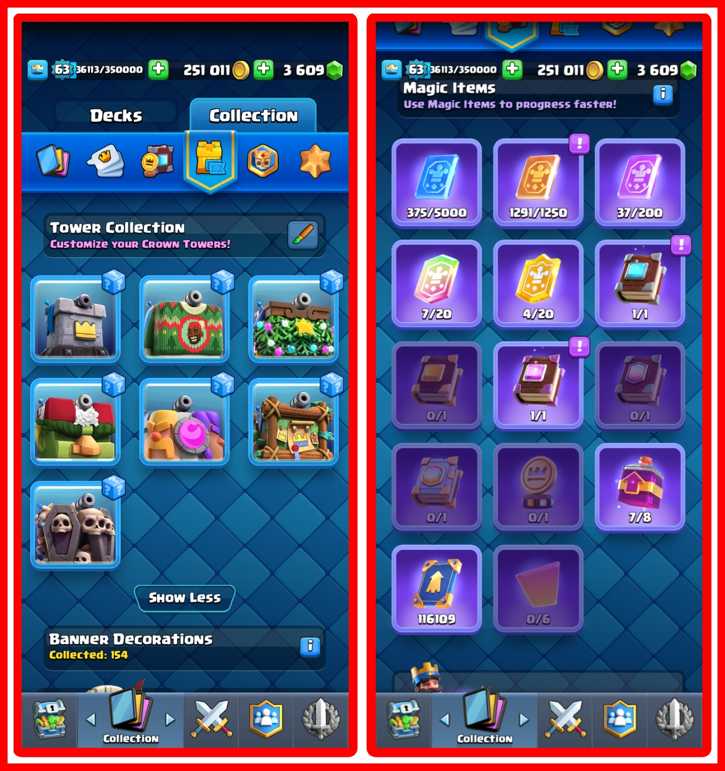 LVL 63 🏆 12K+ TROPHIES 🔥 37 ELITES + 110K ELITE CARDS [ 100 TOTAL MAX CARDS ] 👾 17 EVOS | 3.6K+ GEMS 😍 120+ PREMIUM EMOTES [ FULL SETS ] 🤝 SAFEST AND INSTANT DELIVERY! 🚚