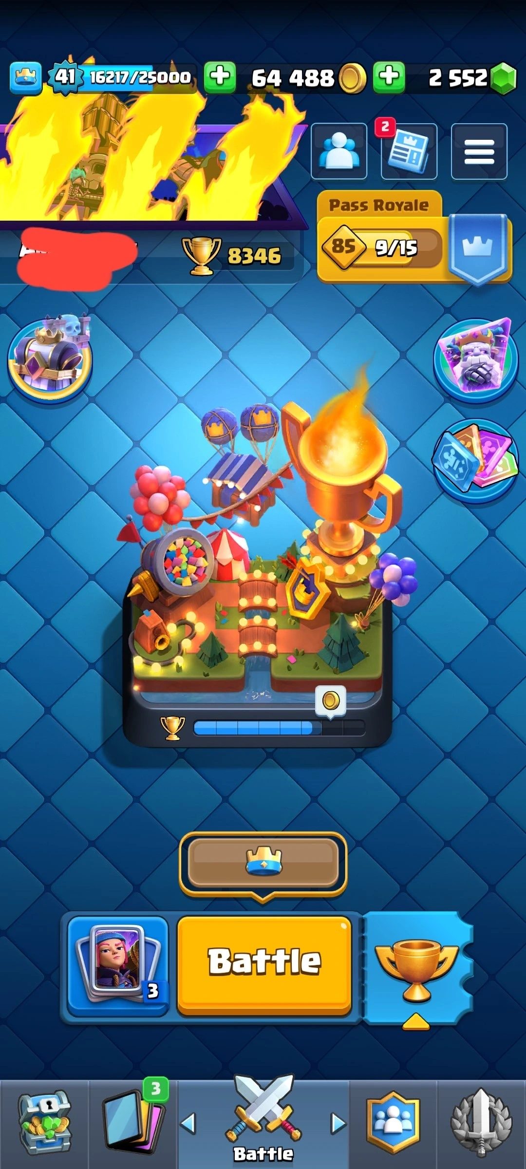 🔥 OP CHEAPEST ACCOUNT 🏆 8346 TROPHIES ⚡️ XP LEVEL 41 🏰 KING TOWER 13 💰 64K GOLD 💎 2552 GEMS 🃏 120 CARDS ⚡️ 9 MAXED 🎖 ARENA 21 💥 CLASH FEST ARENA 🚀 INSTANT DELIVERY