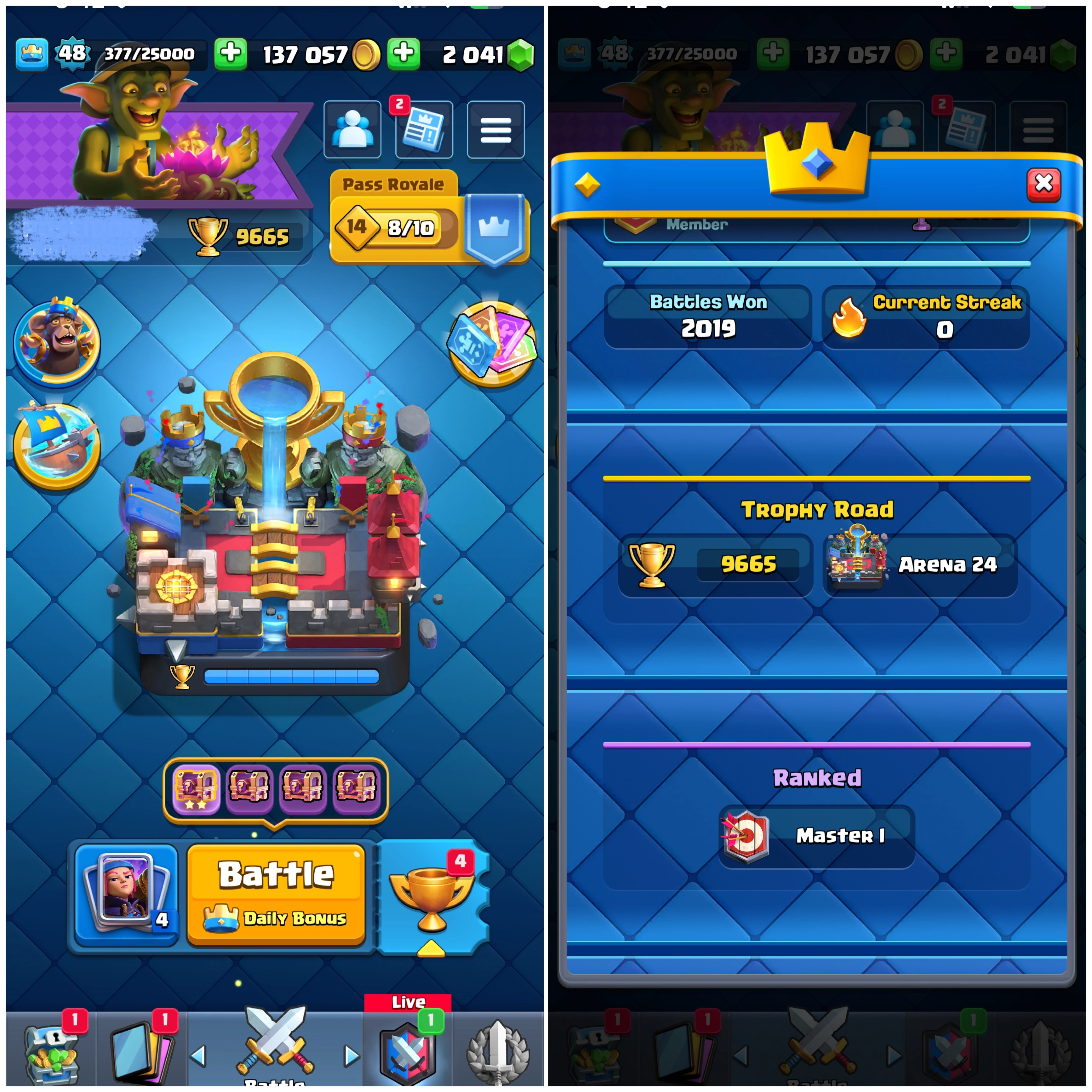 โก๏ธ Quick Deal ๐ 9665 Trophies ๐ | Level 48 ๐ฅ | King Tower 14 ๐ | Arena 24 โ๏ธ | Emote 48 ๐ Cards 121 ๐ฅ Instant Delivery ๐ Lifetime Access โ