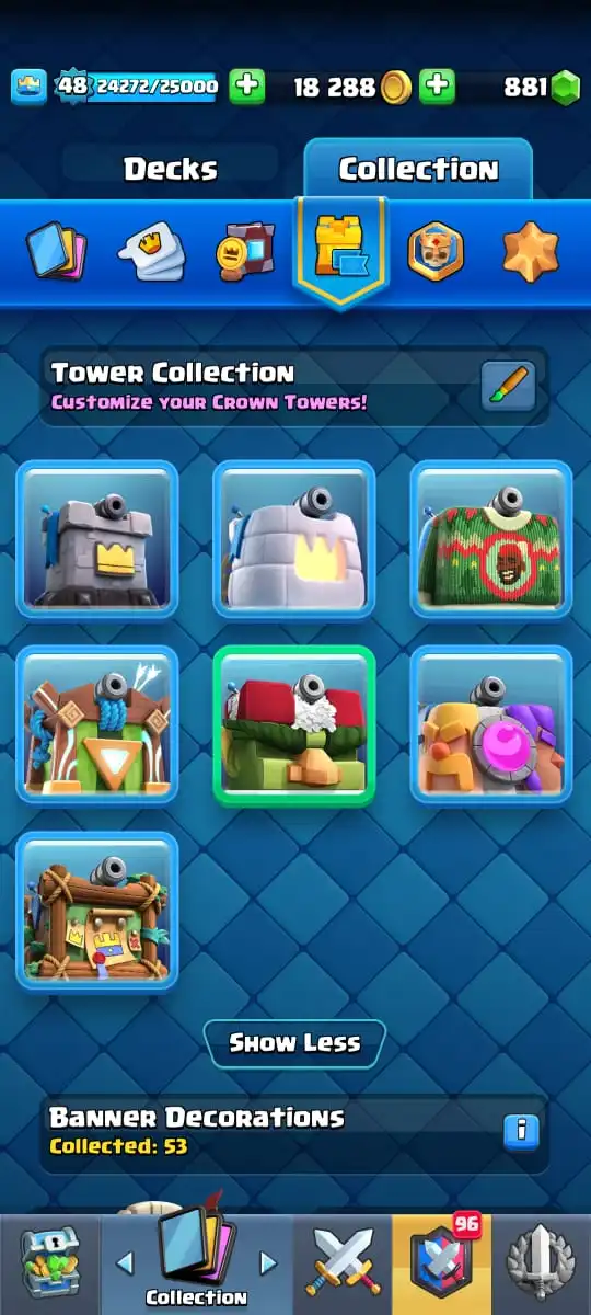 🔥RARE 9 YEAR OLD CR🔥 🏆9560 TROPHY | 💎13 MAX CARDS | 🤩43 EMOTES 🏰7 TOWER SKINS | ✨53 DECORATIONS | 🎨55 BANNERS 🏅97 BADGES | 👑KT 14 | 🏟️ARENA 24 | 🎯LEVEL 48 🎭VARIOUS EXCLUSIVE SKINS