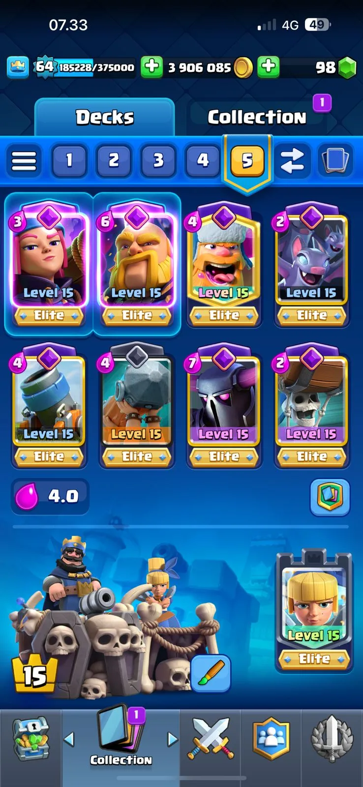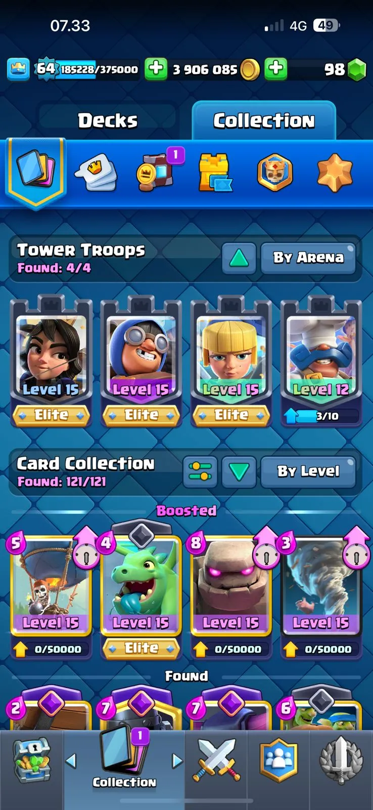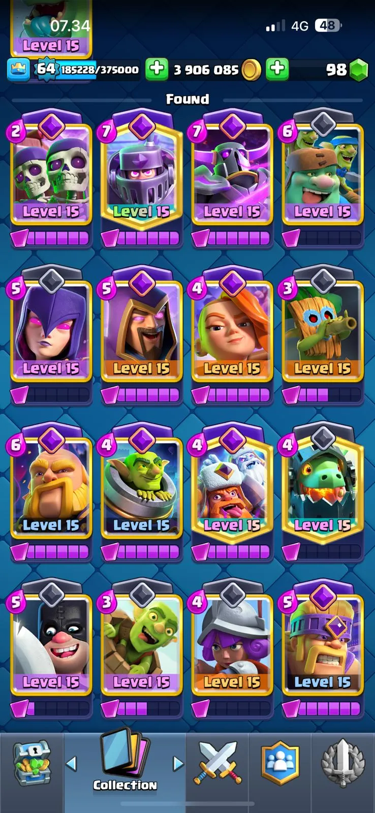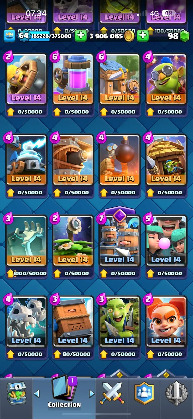 RARE [ COMBO TH 17 FULL MAX ]🔥CR LV 64 [ KT 15 ]🔥114 MAX CARD🔥38 ELITE & 20 EVO🔥EMOTE 106🔥TOWER SKINS 13🔥ARENA 22 [ TROPHY 8504 ]🔥FULL ACCESS & GUARANTEED🔥