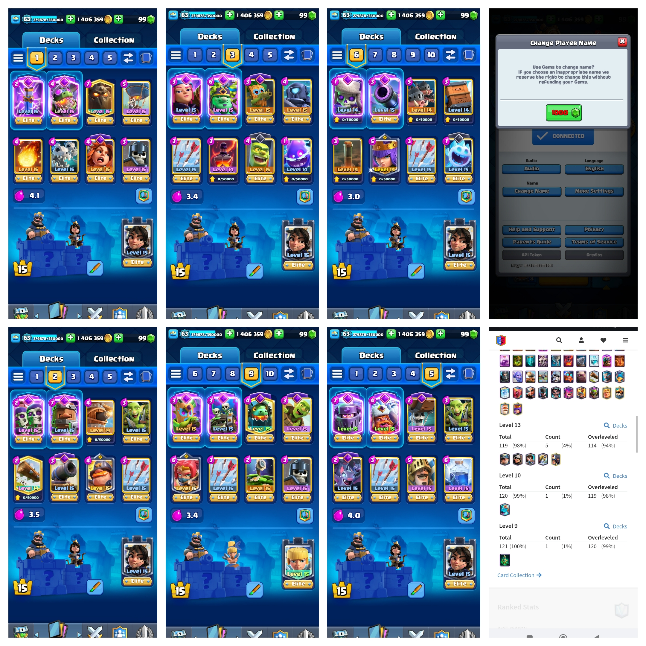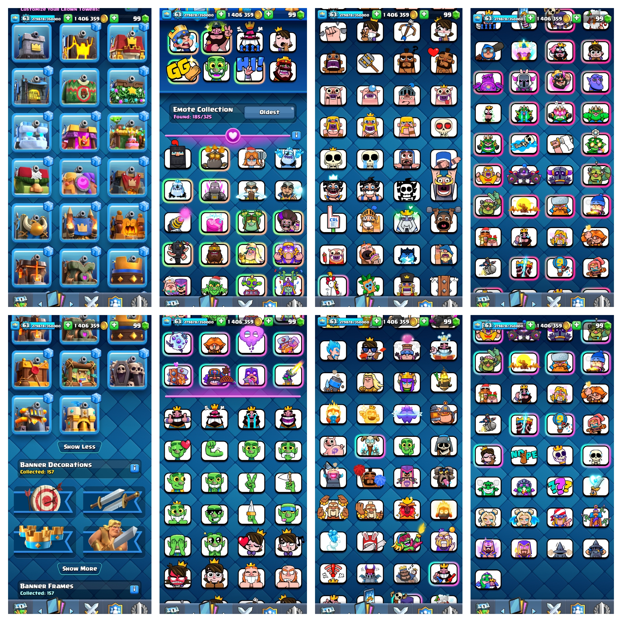 🏆RAREST CRL 2022 AND 2024 BADGES🏆LEVEL 63🏆KT 15🏆114 MAX CARDS 🏆42 ELITES🏆28 EVO CARD🏆185 EMOTE 🏆TOWER SKINS 23🏆