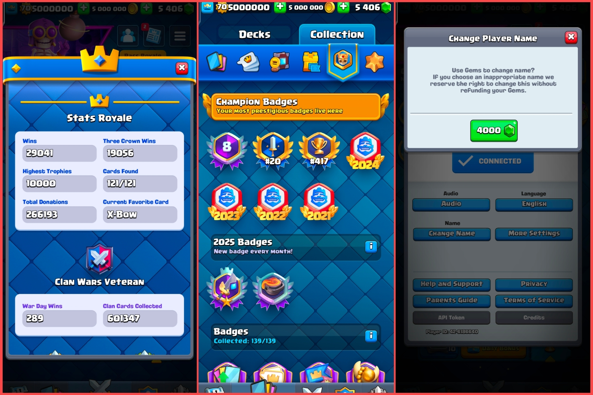 RAREST ID in Royale *Supercell Creator + eSports Profile + World Rank Stats* | 36/36 Evo, 121/121 Level 15 | Has ALL 469 Emotes + Tower Skin & Banners