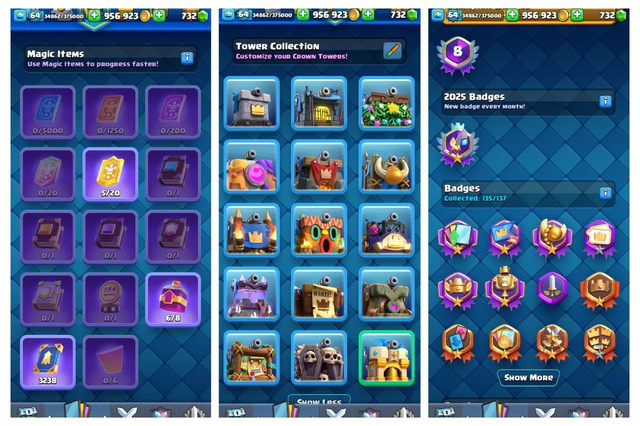 XP 64 🍁 26 Evo Max 🍁 115 Max Card 🍁 43 Elite Max 🍁 Lny Piggy + Loon+ Crying + Hog + Pekka [130 Toxic Emotes] 🍁 [13k Trophy] 🍁8 Years Badge 🍁[53]🍁