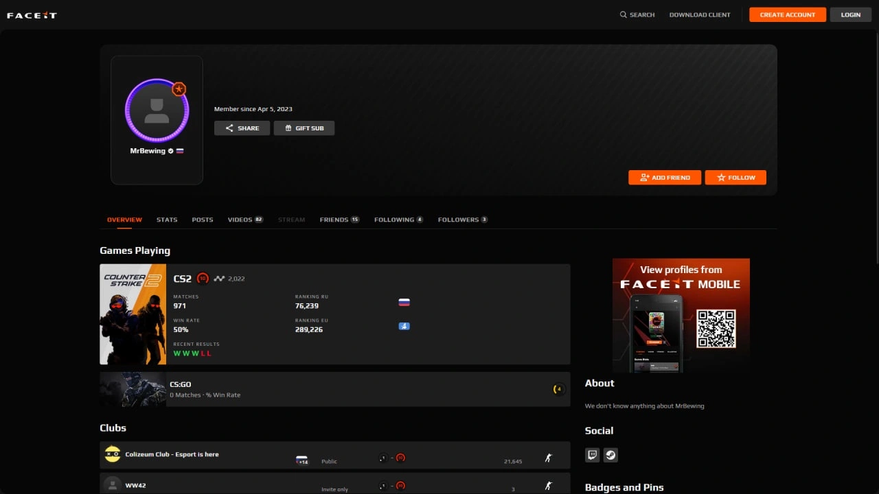 CB262 | CS2 Prime+Faceit 2000 ELO(Verification)+970 games+14500 Points