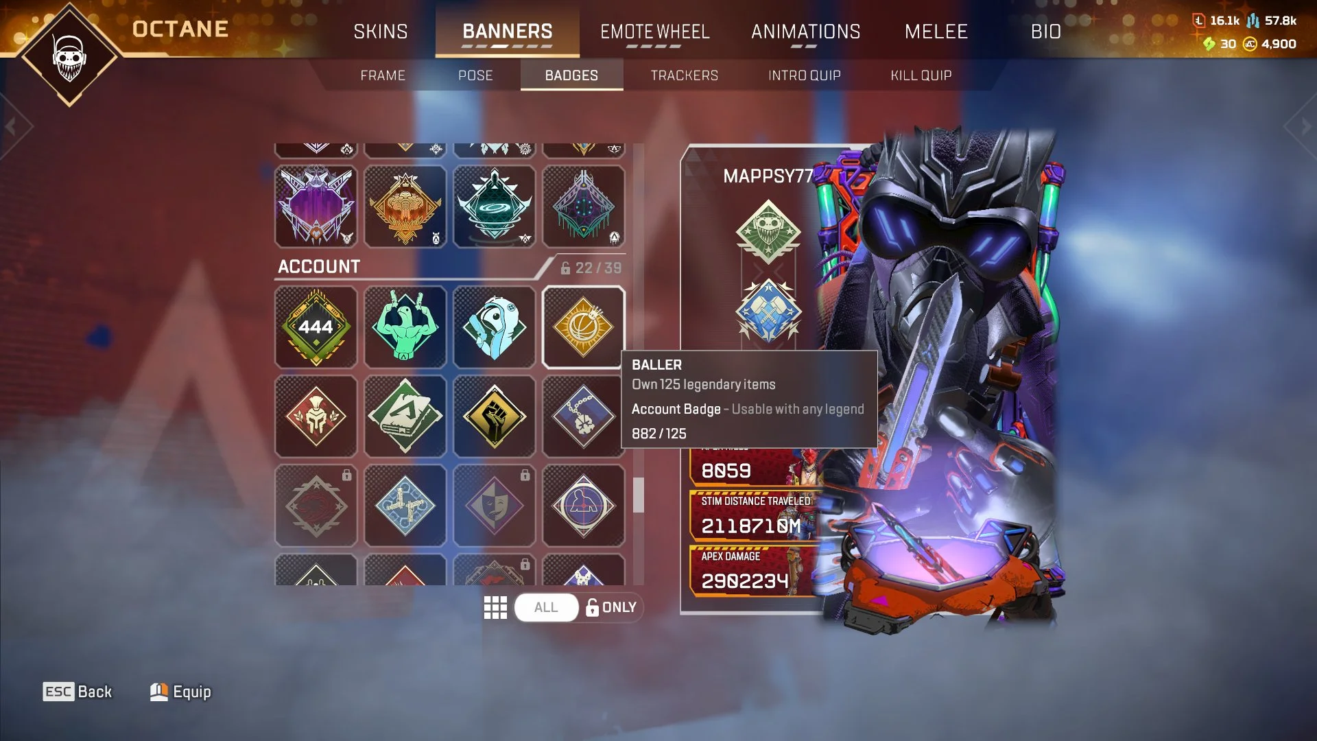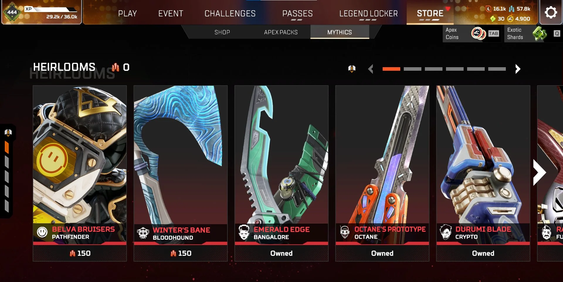 944 lvl + 14 heirlooms + 882 legendary items + 3 prestige skins + 7 exotic W + Katar + Raptor's Claw