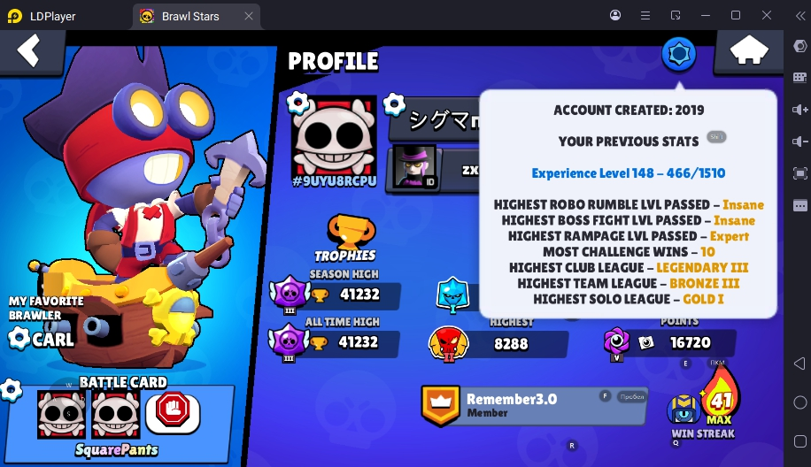 208 SKINS 💯 41.232 TROPHIES 🏆 94 BRAWLERS 🐼 17 HYPERCHARGED 🩸 32 MAX BRAWLERS 💛 ANTIVIRUS 8-BIT 🧡 MEGALODON 🧡 RODEO HANK 🧡COBRA LOLA 🧡 DRAGOON BELLE 💯