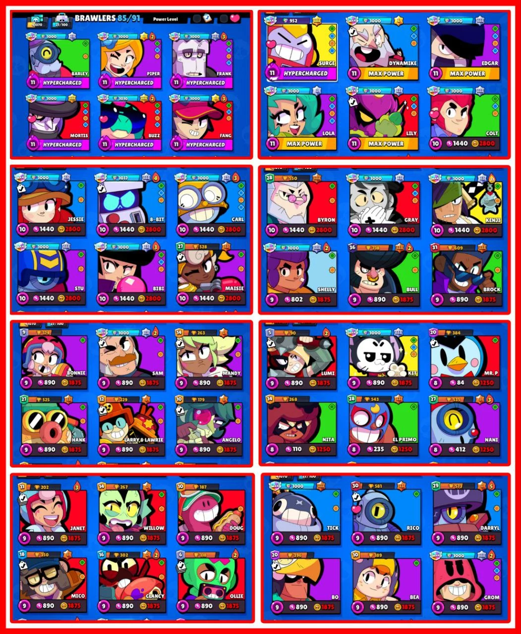 41000+ TROPHIES 🏆 138 SKINS 👑 85 BRAWLERS ✨ 11 MAX BRAWLER ✨ 7 HYPERCHARGED BRAWLER ✨ 90 GEMS NAME CHANGE 💎 INSTANT DELIVERY 🚚
