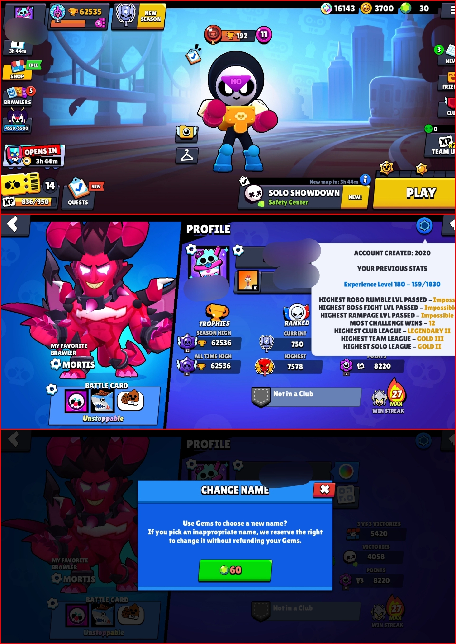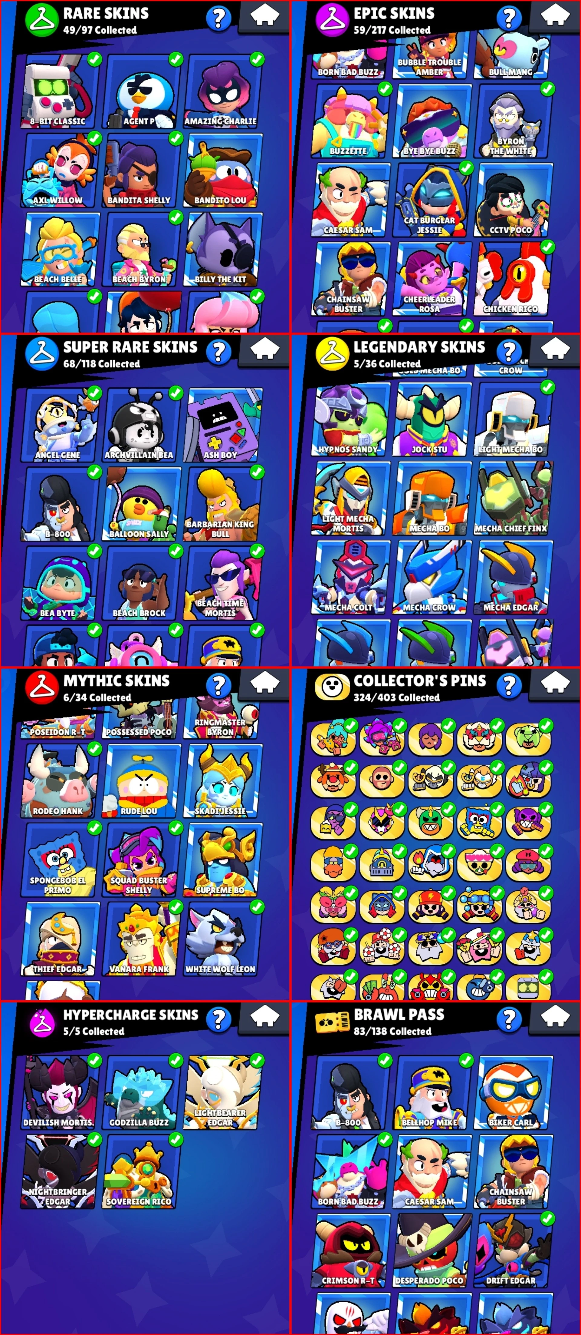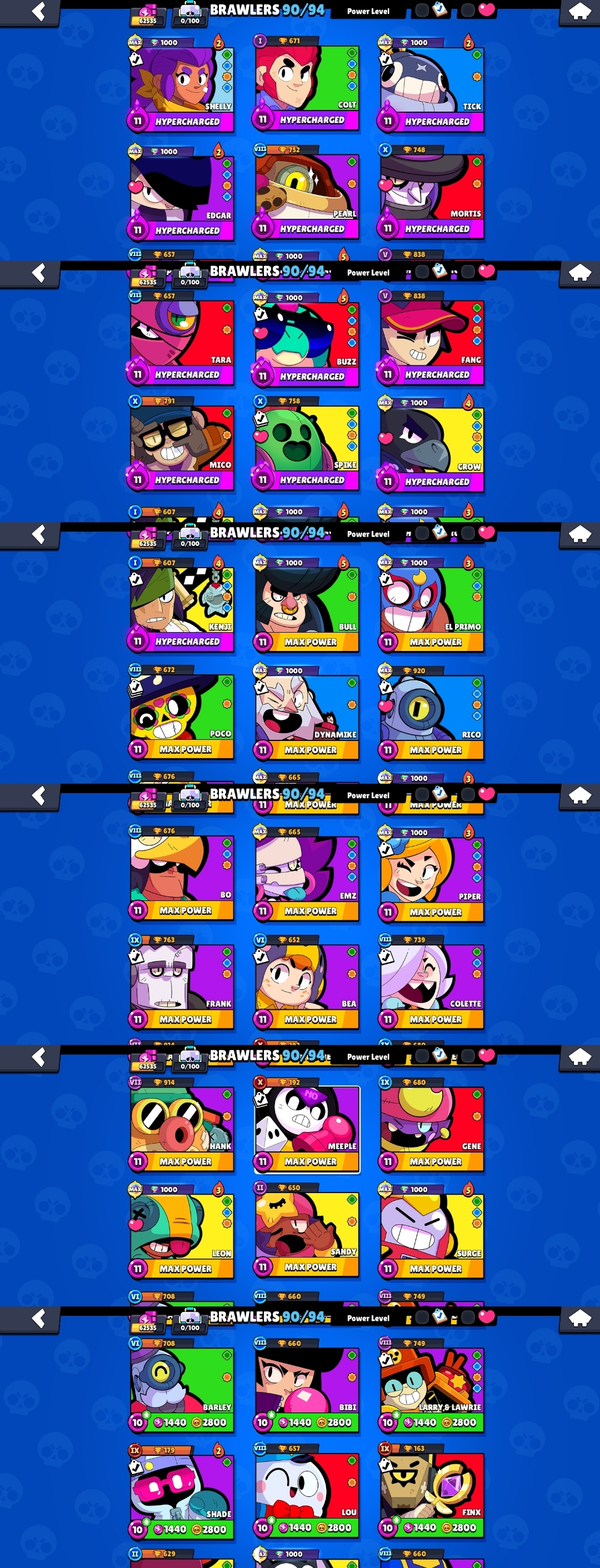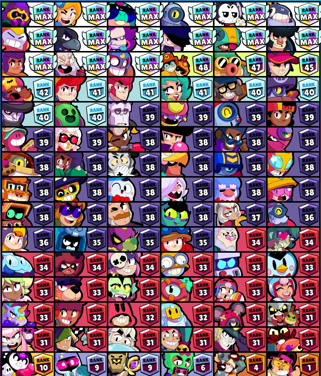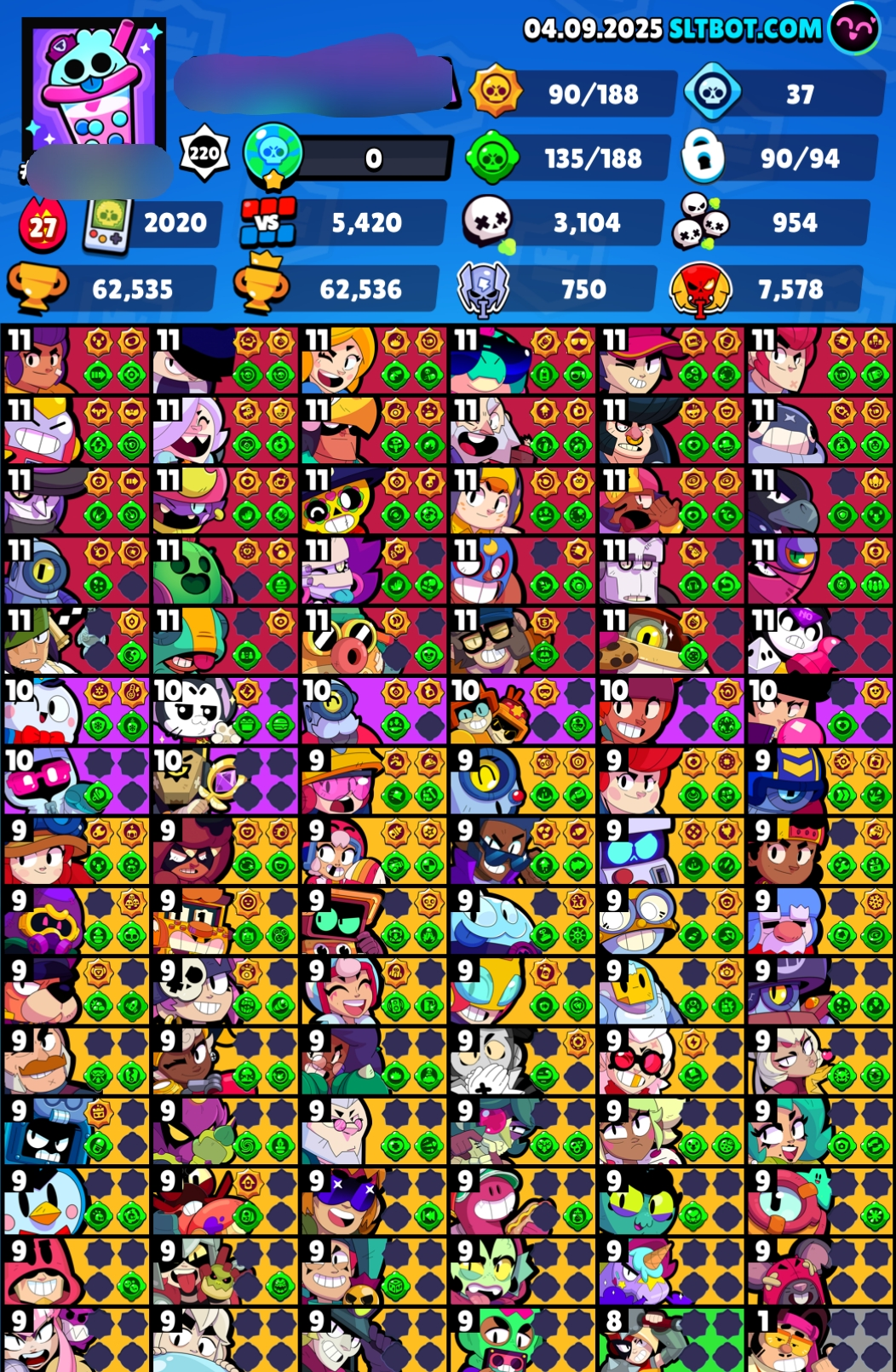 62k Trophies 🏆 90 Brawlers 🤖 [30 Max Power 💪 13 Hypers ⚡ & All Above Lvl-9] 49 Rare 🟩 68 Super Rare 🟦 59 Epic 🟪 6 Mythic 🟥 5 Legendary 🟨 and 5 Hypers ⚡ CH292