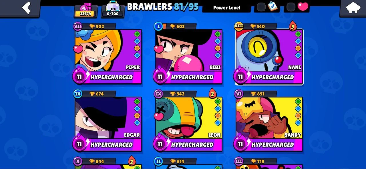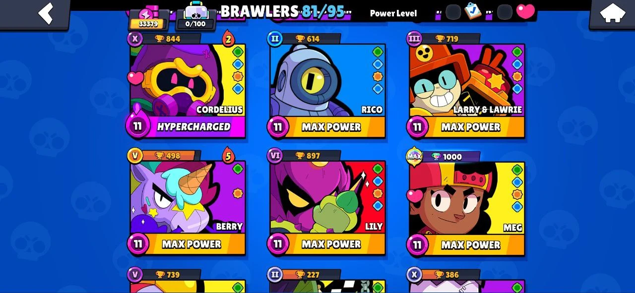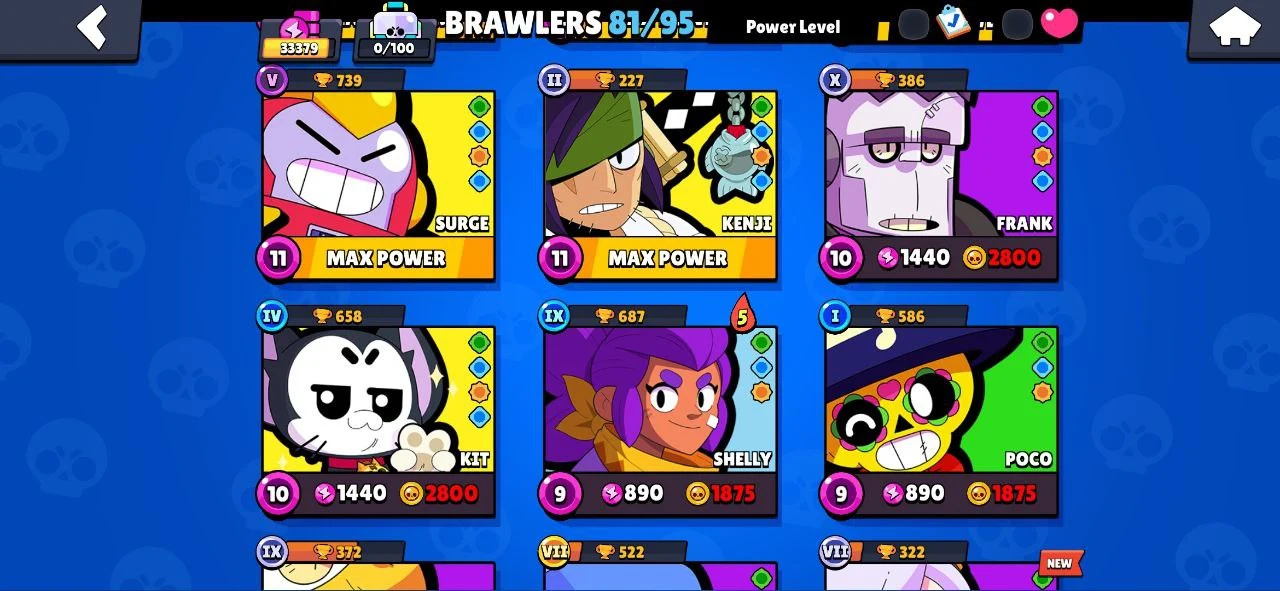 ⭐ 81 BRAWLERS 🎯 14 MAX BRAWLERS 🐼 7 HYPERCHARGED 🎯 33379 TROPHIES 🧥 163 SKINS 🔵 SQUAD BUSTER SHELLY 🔵 SURGE LIGHTYEAR 🔵 HELLBULL 🔐 FULL ACCESS