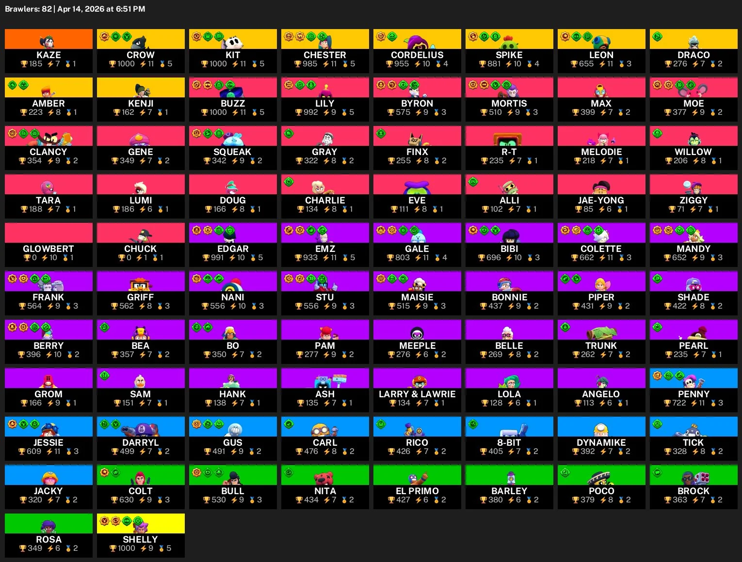 82 Brawlers🎟️34,826 Cups🔥123 Level💥9 Easy