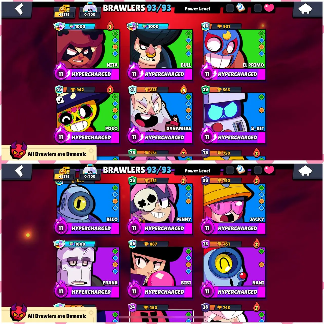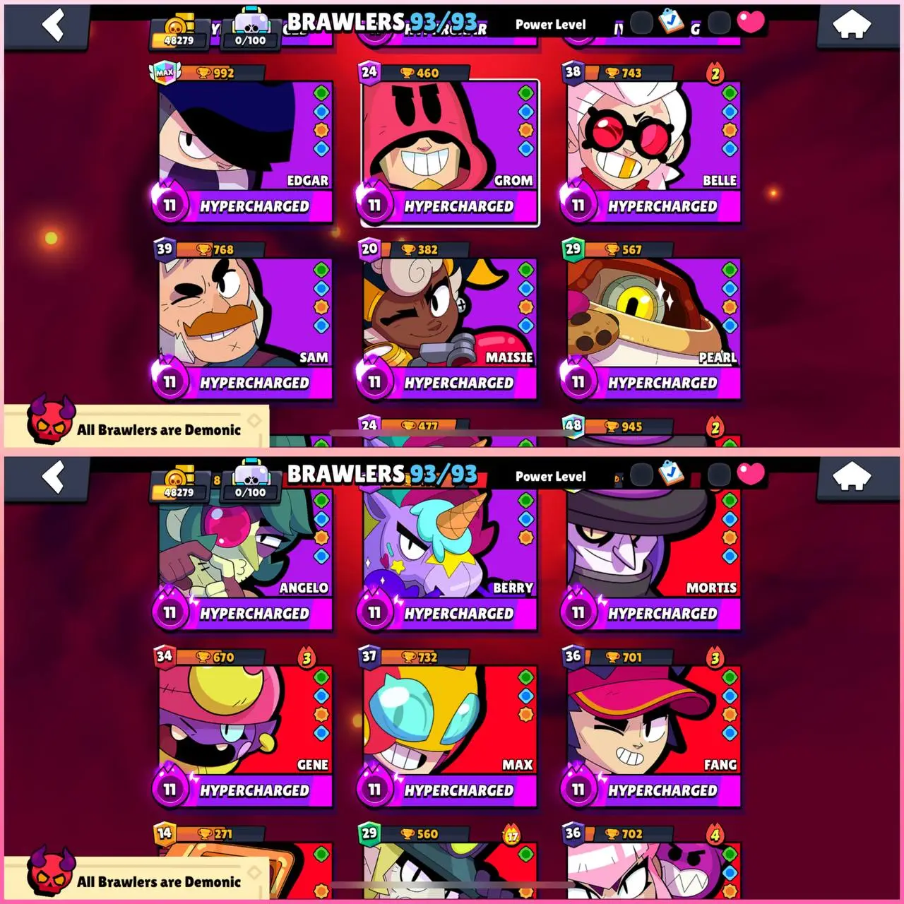 🔥 BRAWL STAR 🔥210 PRIMIUM SKINS 🔥 48279 TROPHY 🔥 93 BRAWLS 🔥 35 HYPER CHARGE 🔥 9 MAX 🔥 44 MAX BRAWLS 🔥 7 LEGENDARY SKINS 🔥 CHEAPEST IN MARKET 🔥