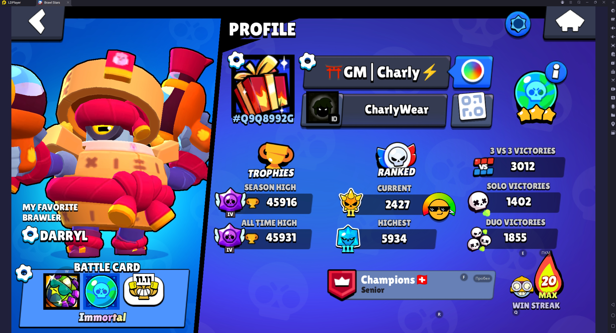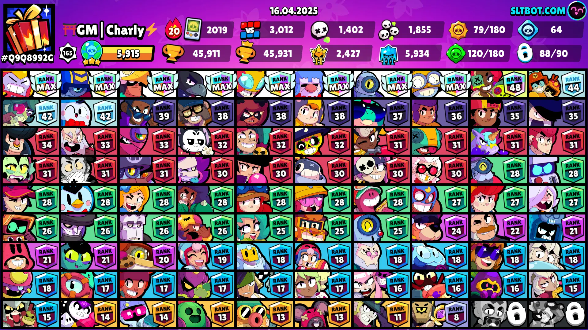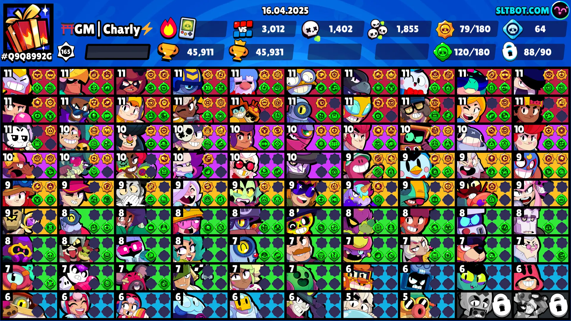 149 SKINS 🩵 45.911 TROPHIES 🏆 88 BRAWLERS 🧸 9 HYPERCHARGED 🩸 21 MAX BRAWLERS 🩷 CAPTAIN CARL 🩵 COBRA LOLA 🩵 DUMPLING DARRYL 🩵 SANTA STU🩵 SPOREMIND CORDELIUS🩵 RICOCHET 🎀