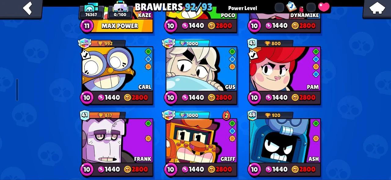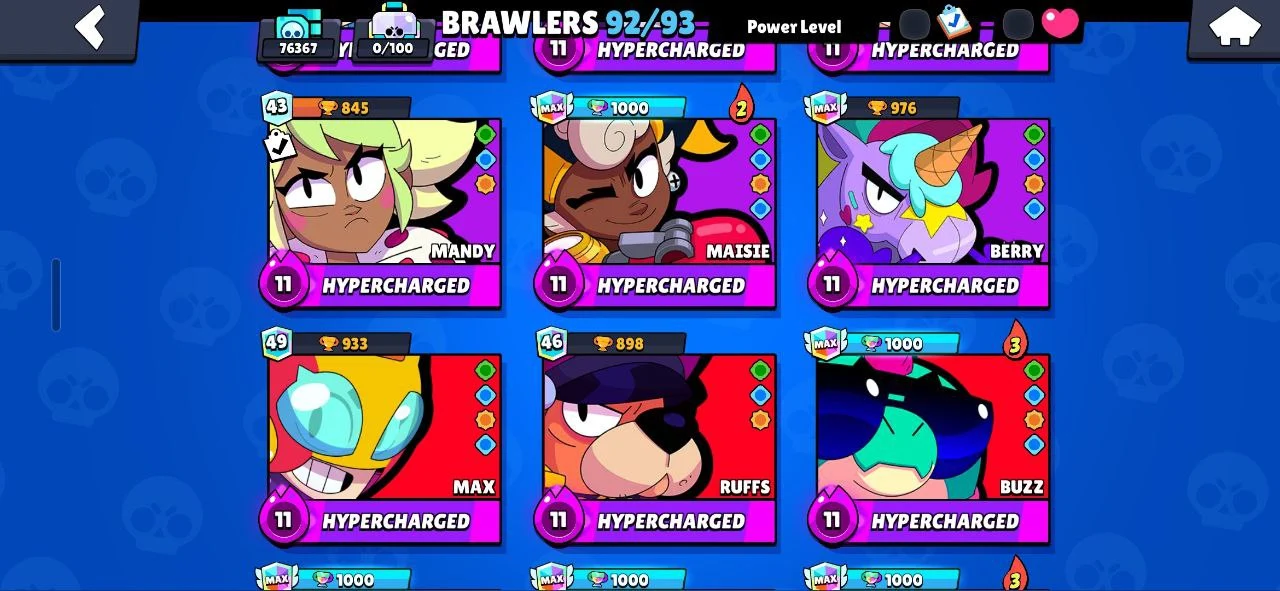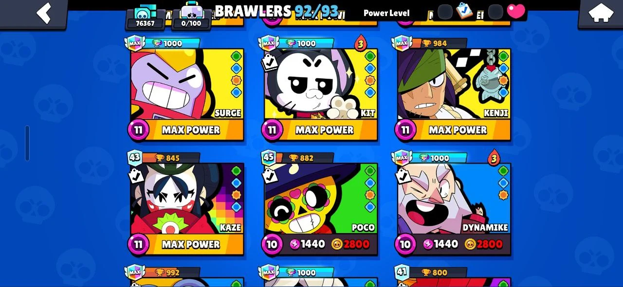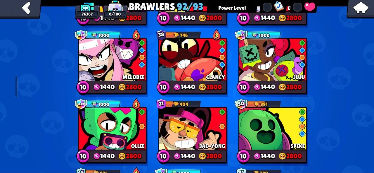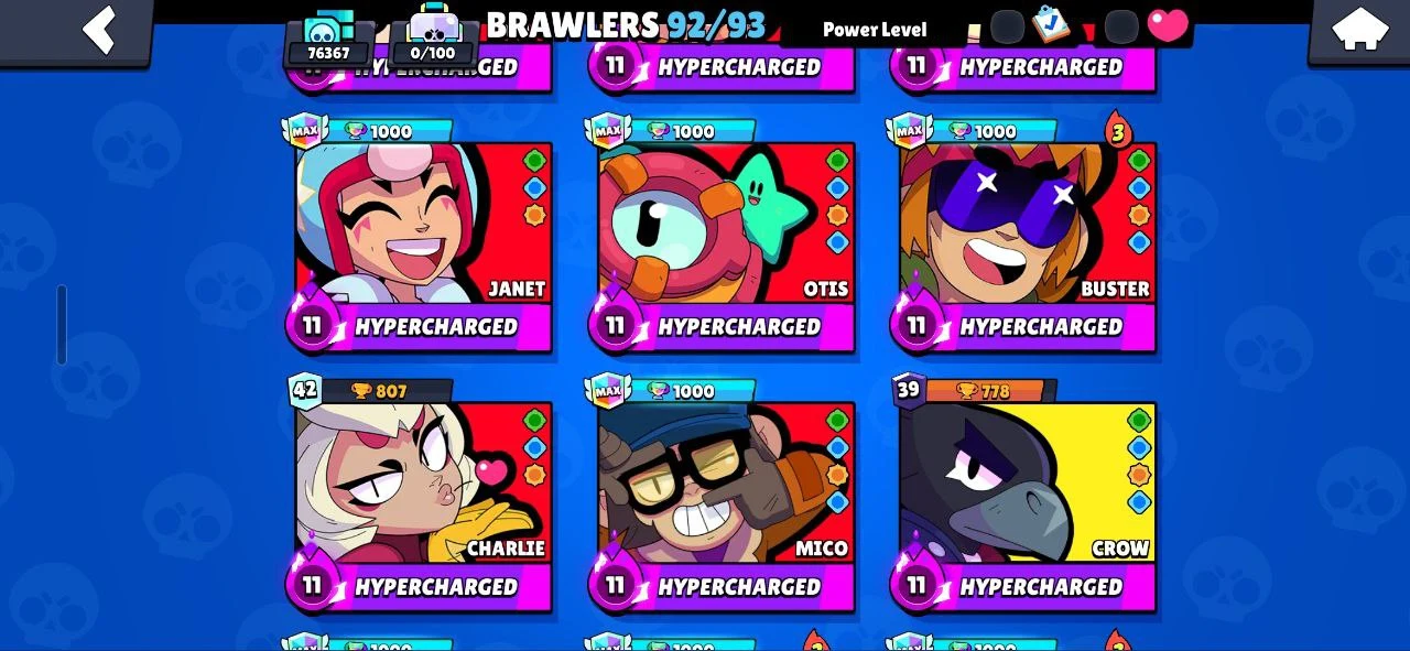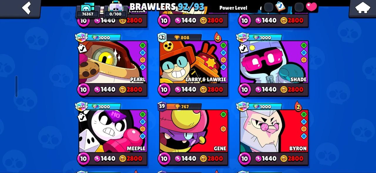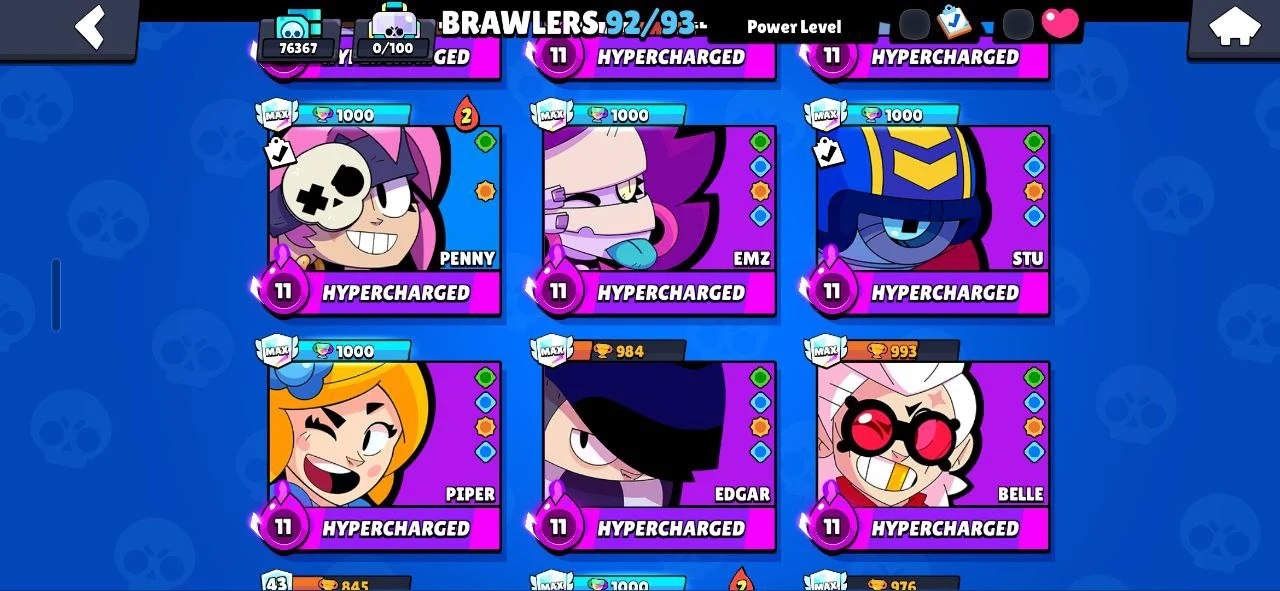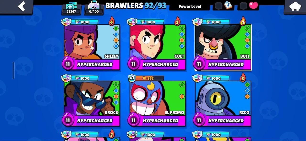 ✨️ (CHEAPEST) 🐧 107 EPIC SKINS (270 TOTAL) ☄️ SATURNIAN FAME 3 🔥 16 TITLES ❄️ ALL 92 BRAWLERS 🌟 RONIN RUFFS 💎 BELLE GOLDHAND 🎯 MINOTAUR BULL 💪 KATANA SKINS 🥷 40 MAXED (26 HYPERCHARGED) 😈 76300 TROPHIES 🏆 INSTANT DELIVERY ✅️